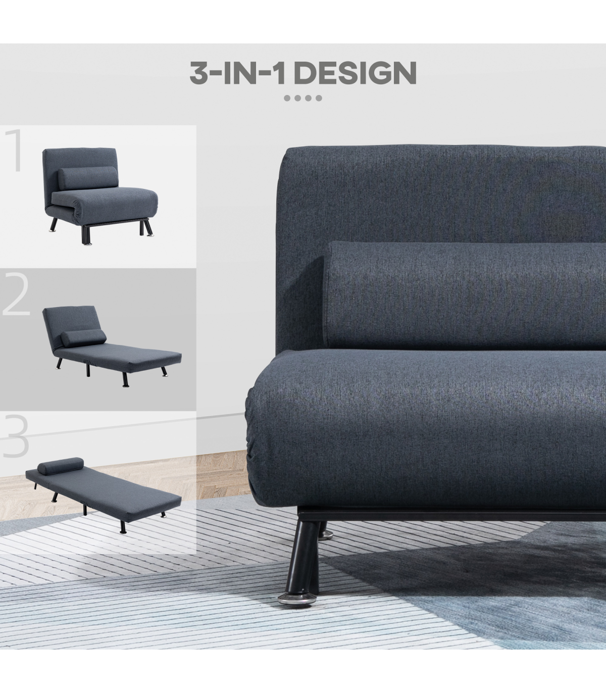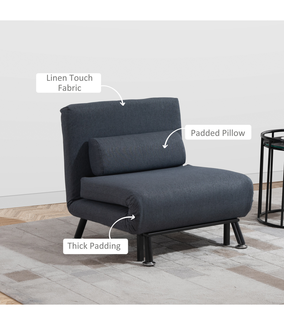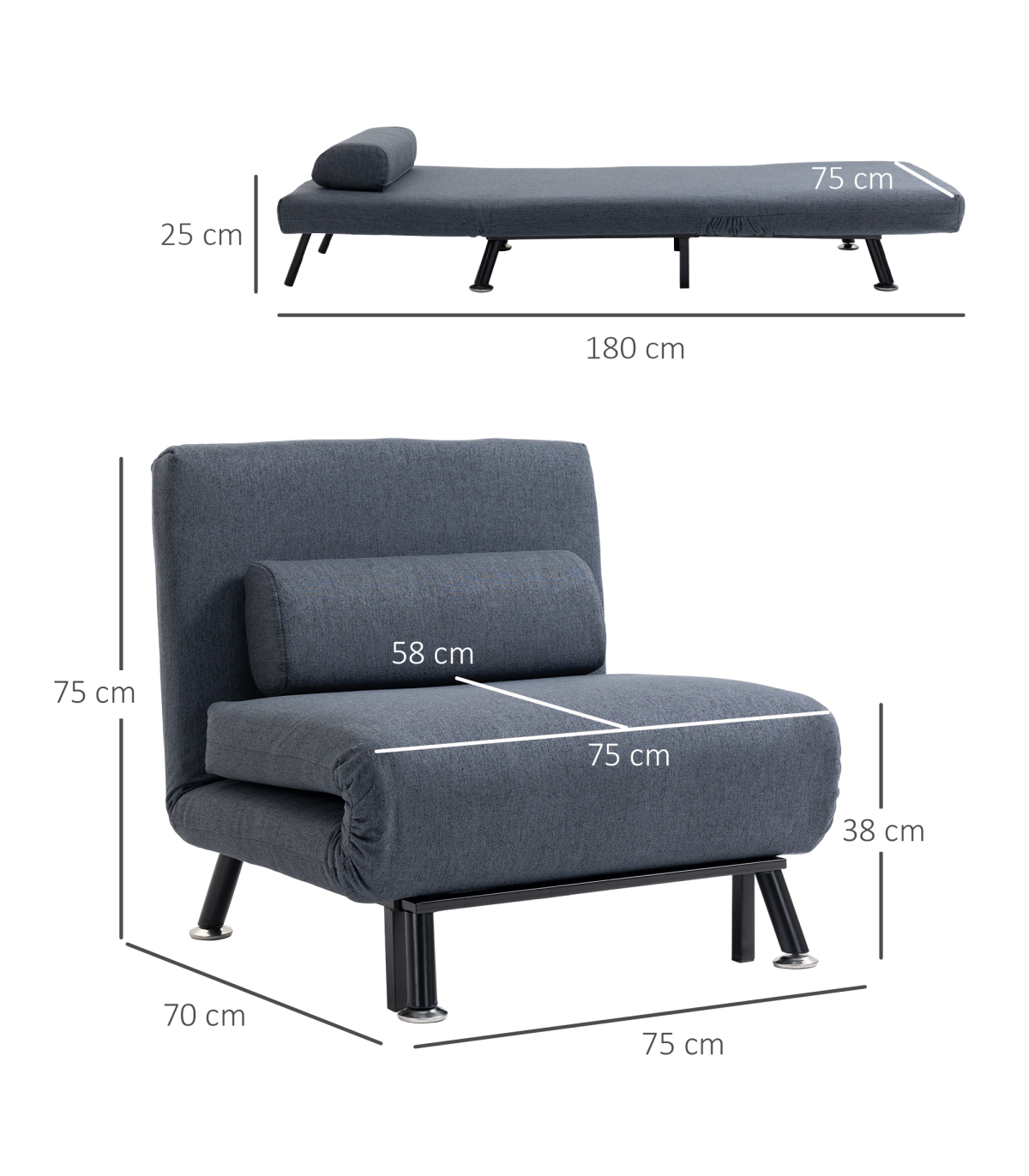 Looking for something which is just as stylish as it is practical? Let us introduce you to this folding sofa bed from HOMCOM. Using powder-coated steel for a strong and tough frame which handles up to 150kg, it is built into a design which converts from a single chair into a chair bed in a matter of seconds � making it effortless and quick to transform, whilst saving you time and preventing any strains on your body. A great sleeping solution for limited space with this folding single bed.
