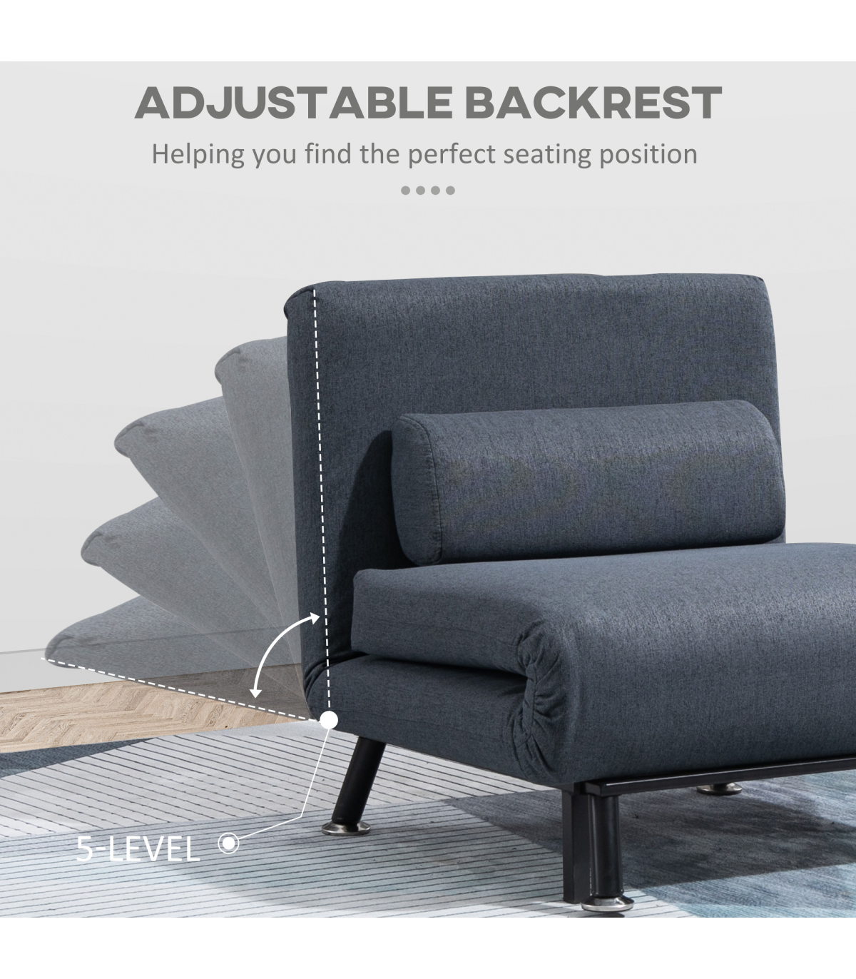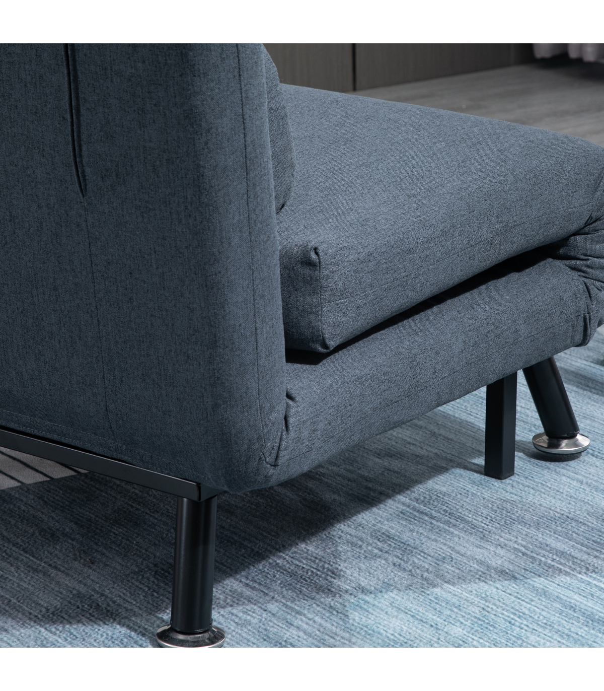 Faux Suede 5-Position Futon Single Sofa Bed Black Description: - Wide, armless chair converts into guest bed swiftly and easily - Powder coated metal frame ensures a strong and stable structure whilst you sit and sleek - Thick foam padding for supreme comfort, with a matching pillow included - Wrapped in soft-to-the-touch suede for a sophisticated look - Back can be adjusted to five different angles, from 90 to 180 - Maximum weight 150kg, assembly required - Only throw pillow cover is removable and washable