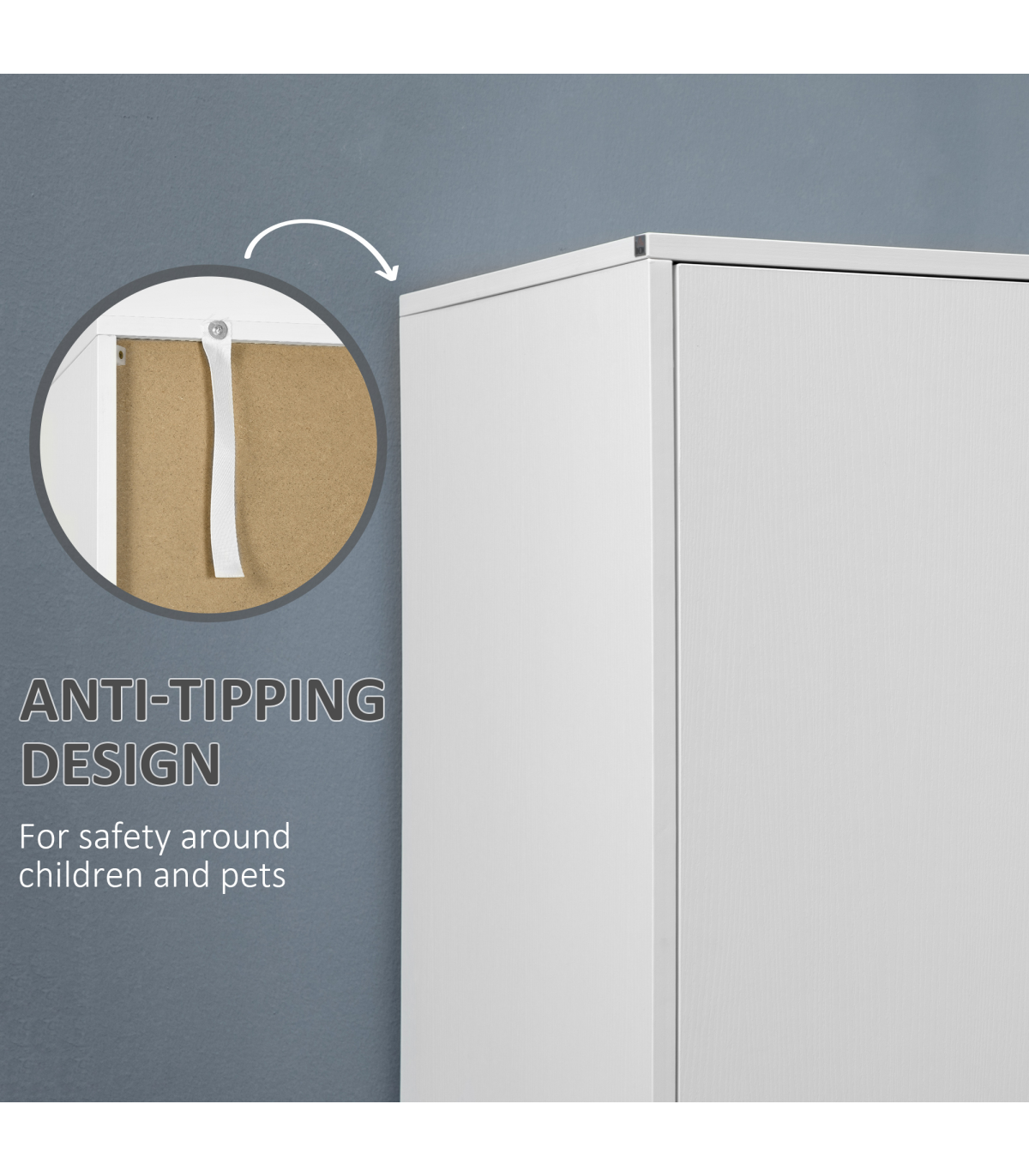 A white wardrobe with drawers, this HOMCOM piece is an all-in-one place for your clothing. The double-door design is spacious, with the inner rail allowing clothes to safely hang. Two bottom drawers for folded garments. A modern white design, broken up with the wood-effect drawer for added beauty. Comes complete with anti-tipping straps for safety.