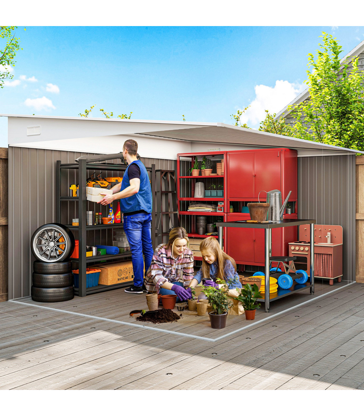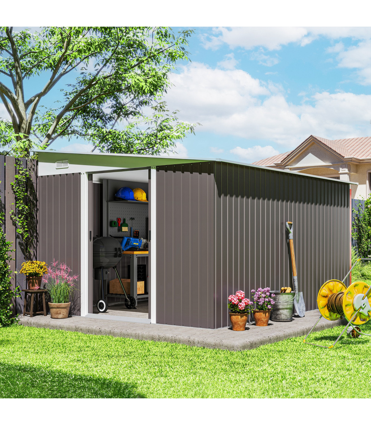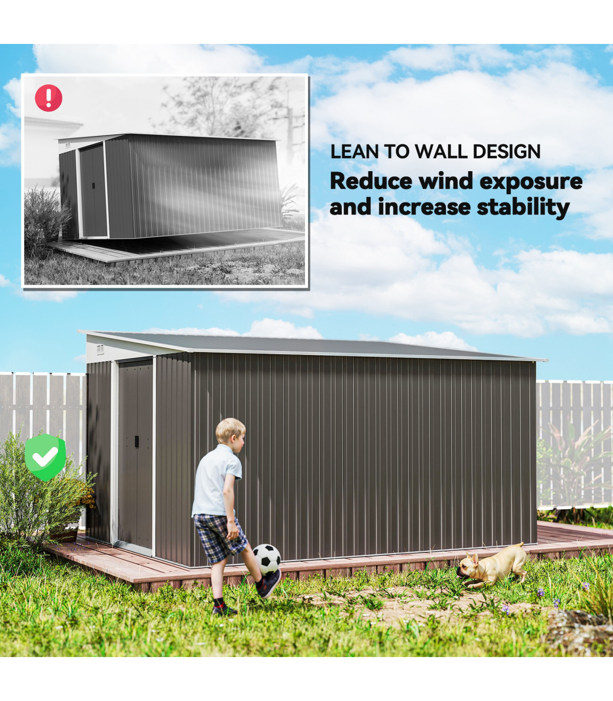 11.3 x 9.2ft Steel Garden Shed Metal Tool House Double Doors & 2 Air Vents, Grey