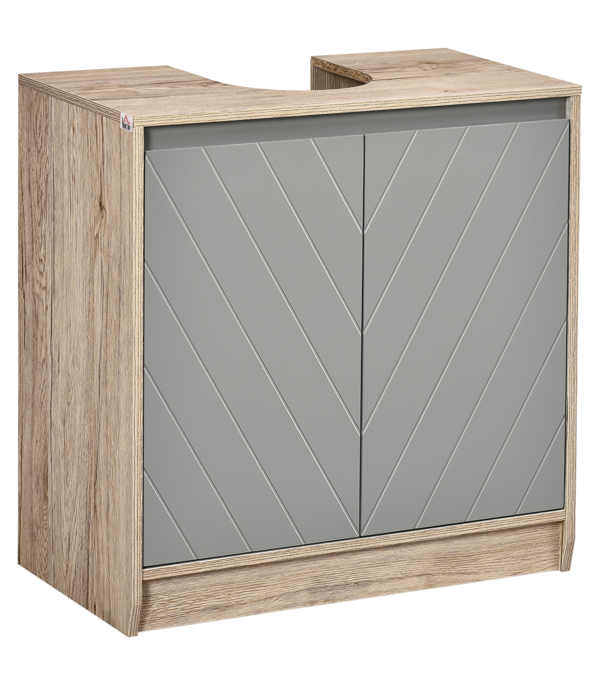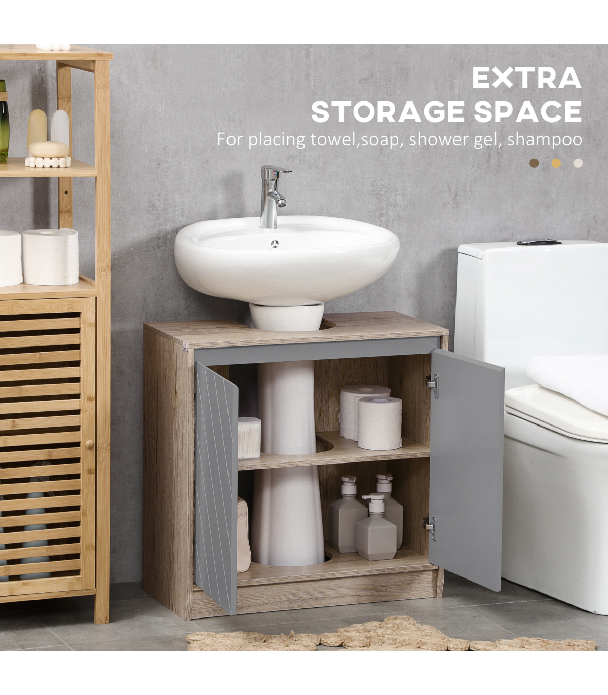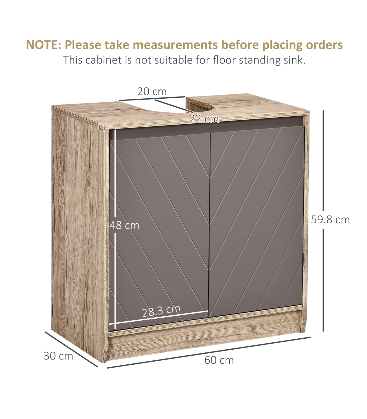 INNOVATIVE STORAGE: Fits underneath your bathroom sink, meaning it won't take up extra floor space, whilst bringing in extra storage room. 8.5 x 22cm 'U'shaped cut-out for the sink pipe.LARGE STORAGE AREA: Offers plenty of room for holding toiletries, cleaning essentials and other bathroom accessories. Shelf for organisable, can be moved up/down to suit your storage requirements.STURDY: Made from a blend of MDF and particle board, it is solid, durable and tough against everyday use in your home. Brown colourway is neutral and versatile.ELEVATED: Base prevents water seeping in and causing damage. DIMENSIONS: 59.8H x 60W x 30Dcm. Inside storage: 57.5W x 27.5Dcm.MAXIMUM LOAD 50KG. ASSEMBLY REQUIRED.