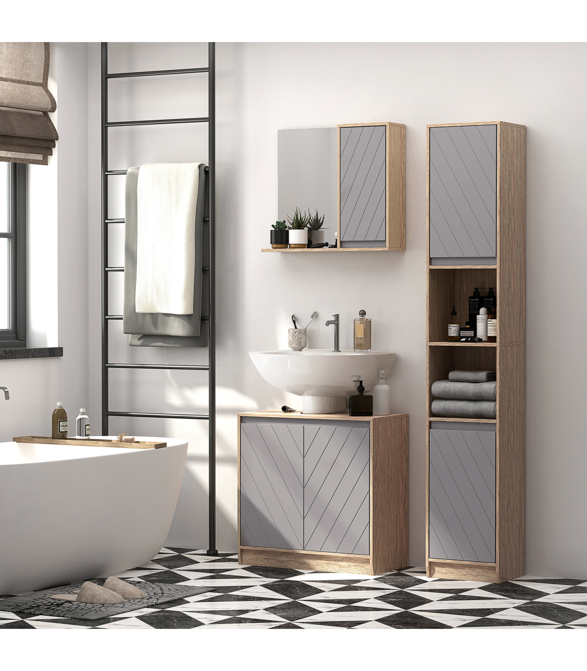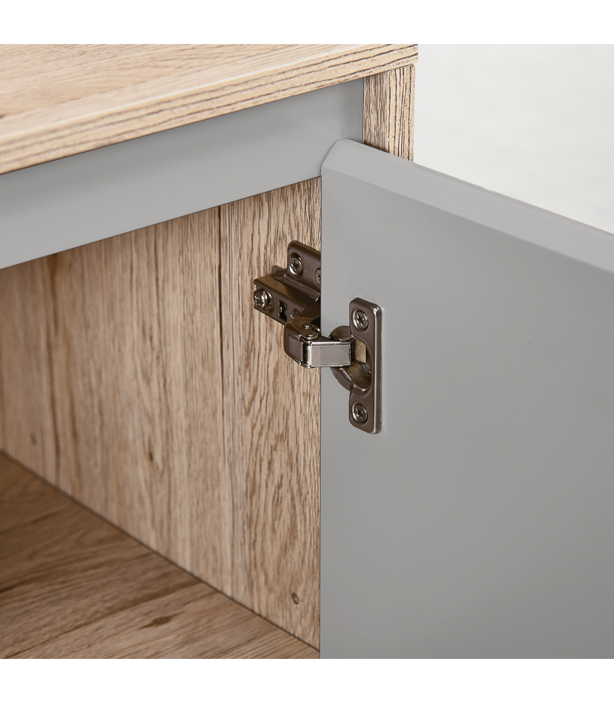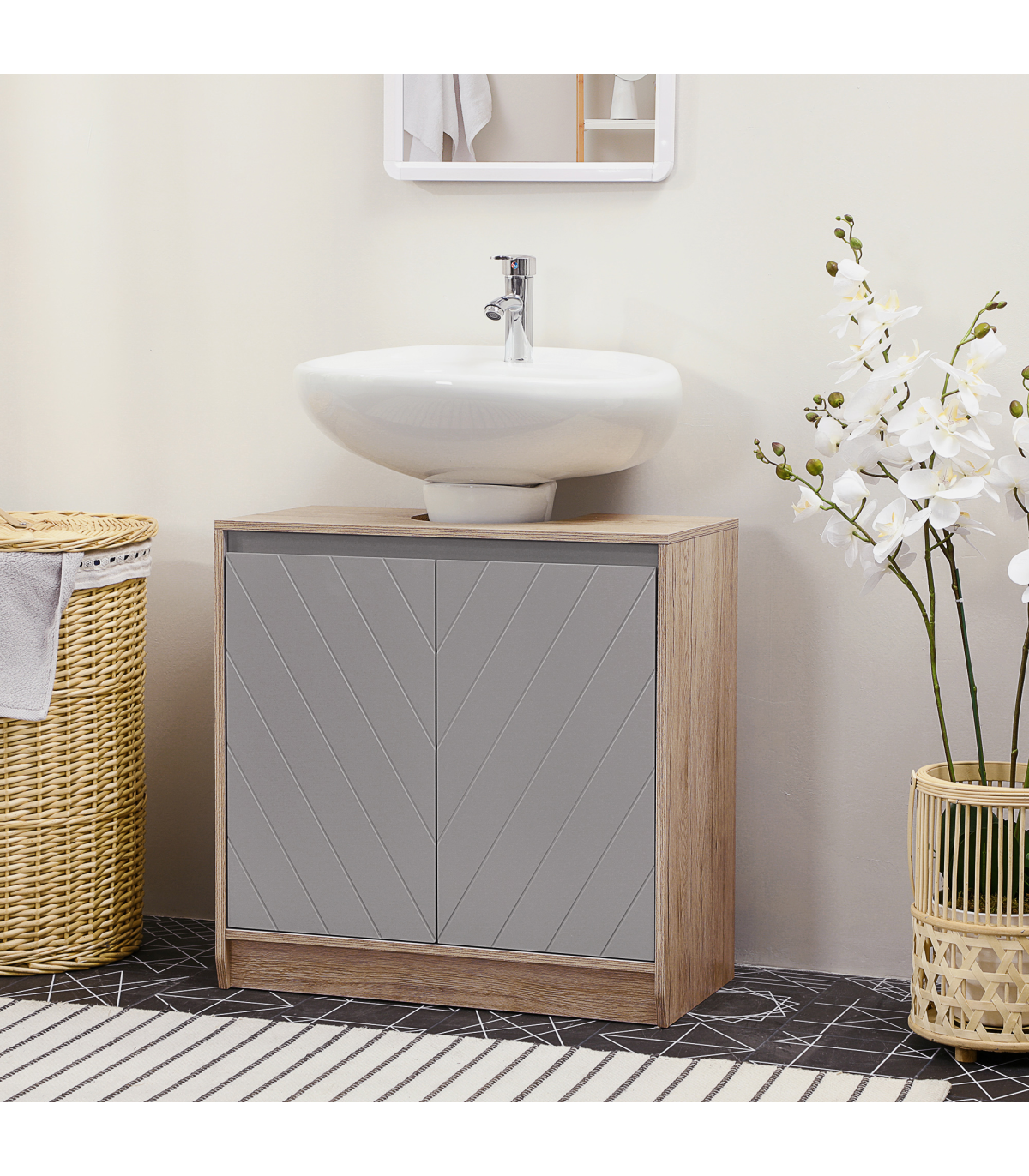 INNOVATIVE STORAGE: Fits underneath your bathroom sink, meaning it won't take up extra floor space, whilst bringing in extra storage room. 8.5 x 22cm 'U'shaped cut-out for the sink pipe.LARGE STORAGE AREA: Offers plenty of room for holding toiletries, cleaning essentials and other bathroom accessories. Shelf for organisable, can be moved up/down to suit your storage requirements.STURDY: Made from a blend of MDF and particle board, it is solid, durable and tough against everyday use in your home. Brown colourway is neutral and versatile.ELEVATED: Base prevents water seeping in and causing damage. DIMENSIONS: 59.8H x 60W x 30Dcm. Inside storage: 57.5W x 27.5Dcm.MAXIMUM LOAD 50KG. ASSEMBLY REQUIRED.