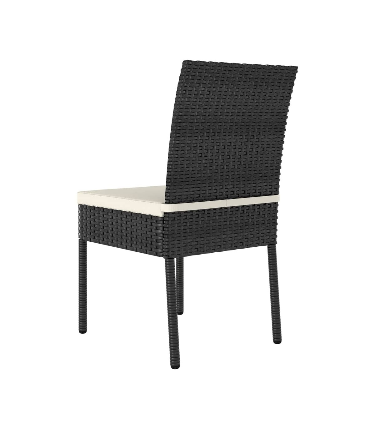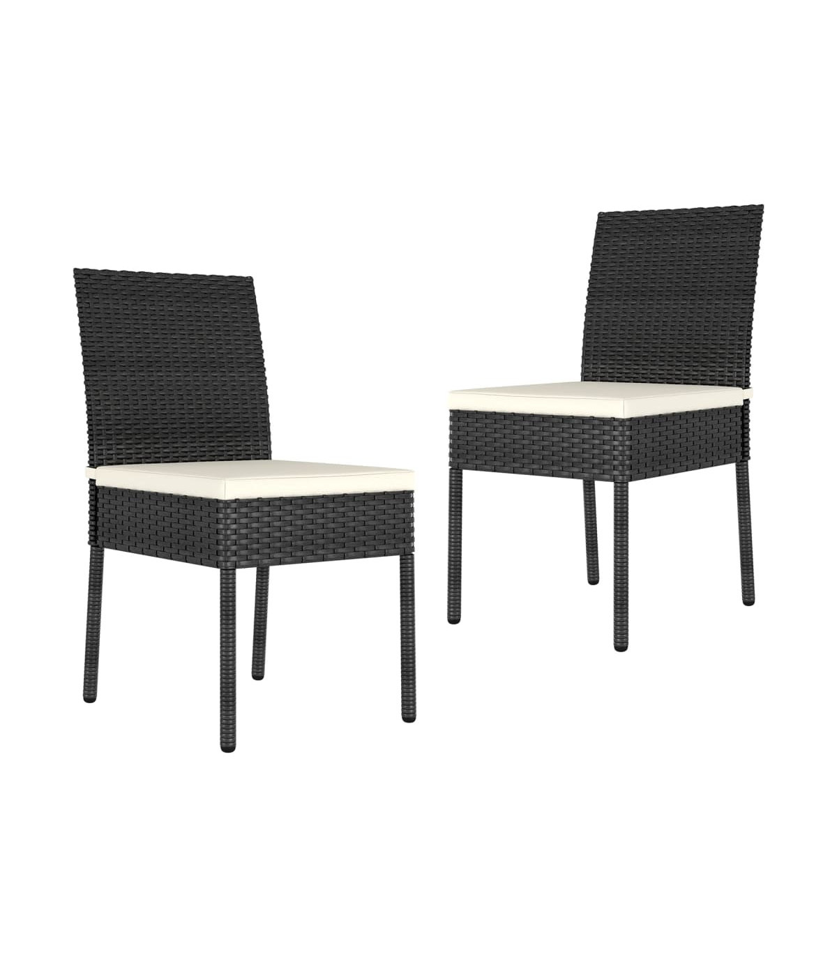 These garden dining chairs add a modern look and make an excellent addition to your outdoor living space. The outdoor chairs are made of poly rattan, which makes them weather-resistant and easy to clean. The black powder-coated steel frames are stable and durable. Thanks to the lightweight construction, the dining chairs can be moved around easily and suitable for outdoor use. Additionally, the included seat cushions also provide additional seating comfort. Note: In order to extend the life of your outdoor furniture, we recommend you to clean it regularly and do not leave it outdoors without protection unnecessarily.Clean: Use a mild soap solution.Storing: If possible, store in a cool, dry place indoors. If the product is stored outdoors, protect it with a waterproof cover. Wipe and dry the excess water or snow from flat surfaces after a rain or snowfall. Allow sufficient air circulation to avoid moisture-related damage.