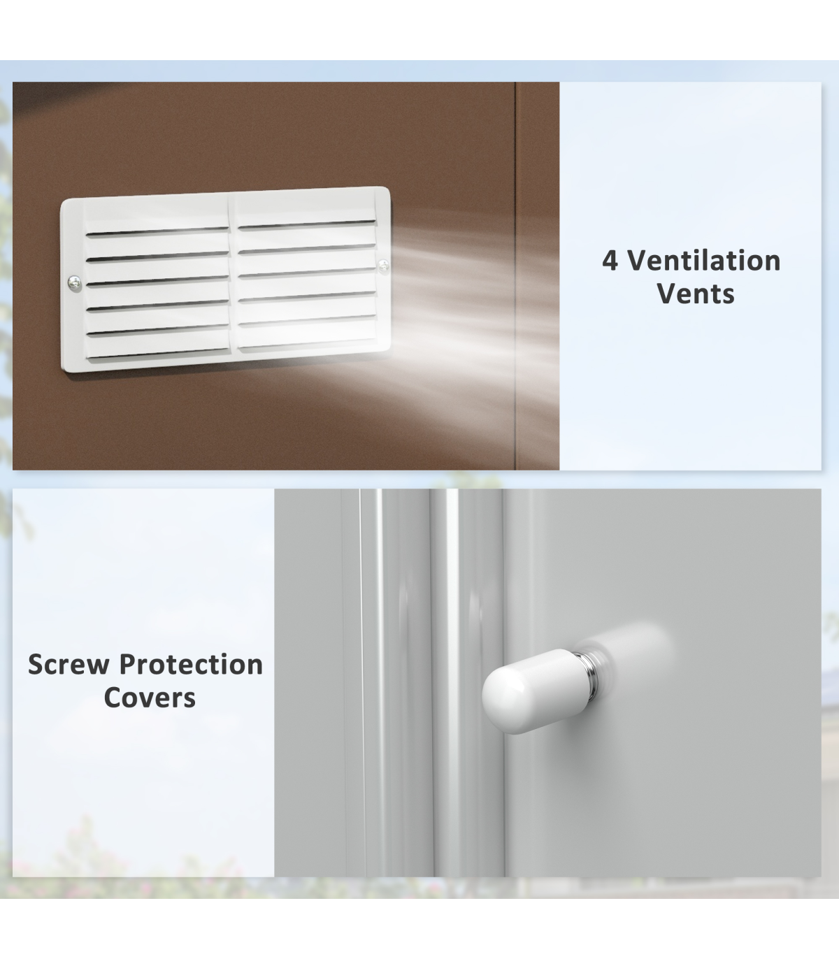 Keep your garden equipment and outdoor essentials locked away securely with metal garden sheds with base from Outsunny. It's made from colour steel for enduring reliability. With a sloped roof sitting on the top to help prevent water stagnating and rust forming, this motorbike shed is finished with a protective weather coating and floor foundation so you have everything you need to install this large garden shed when it arrives. The perfect home for all your outdoor tools and gear.