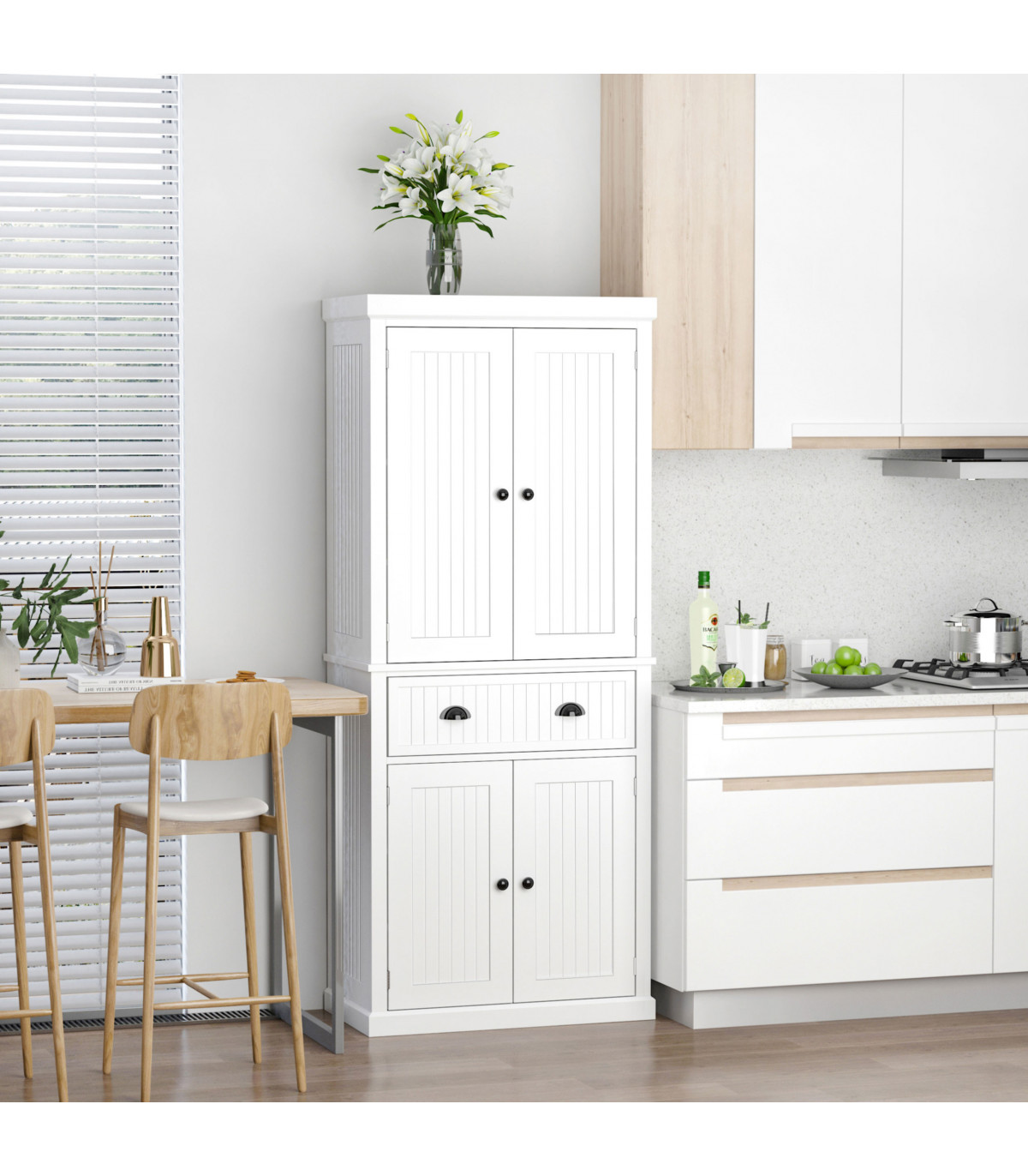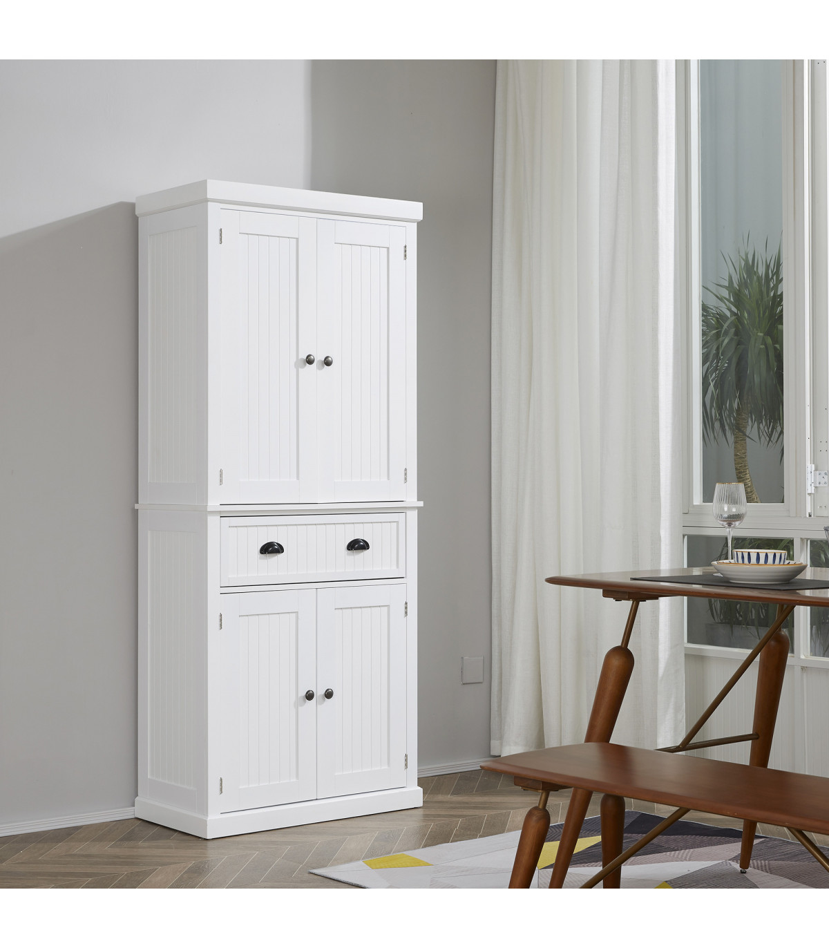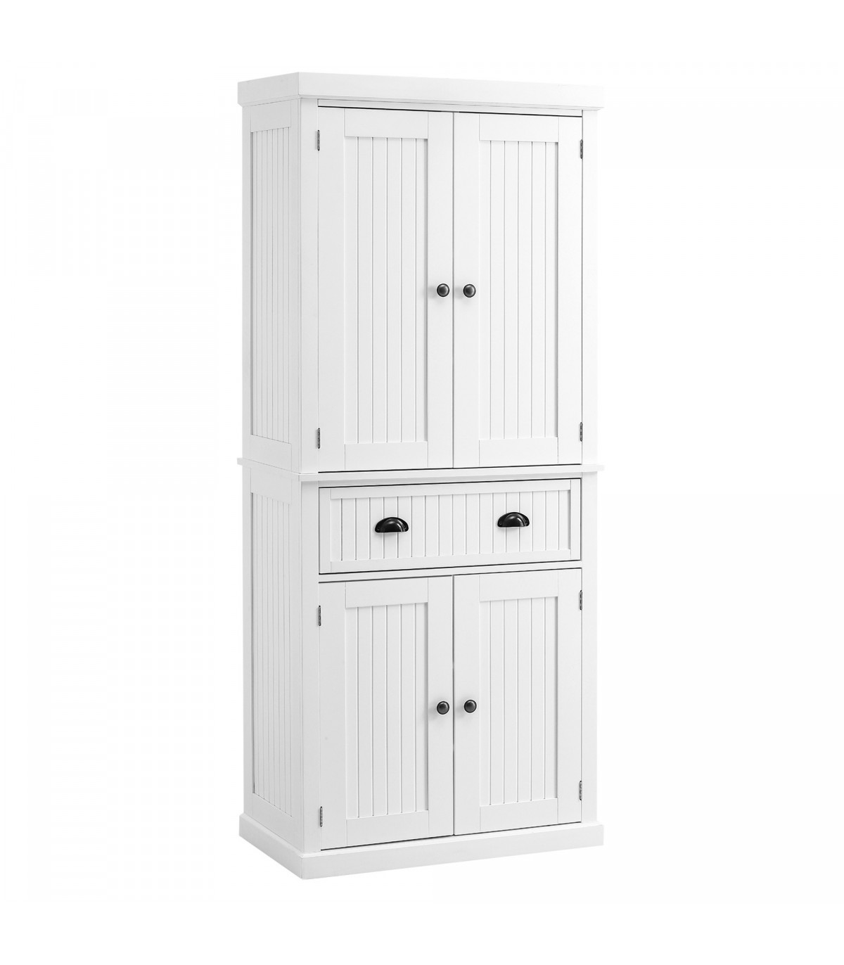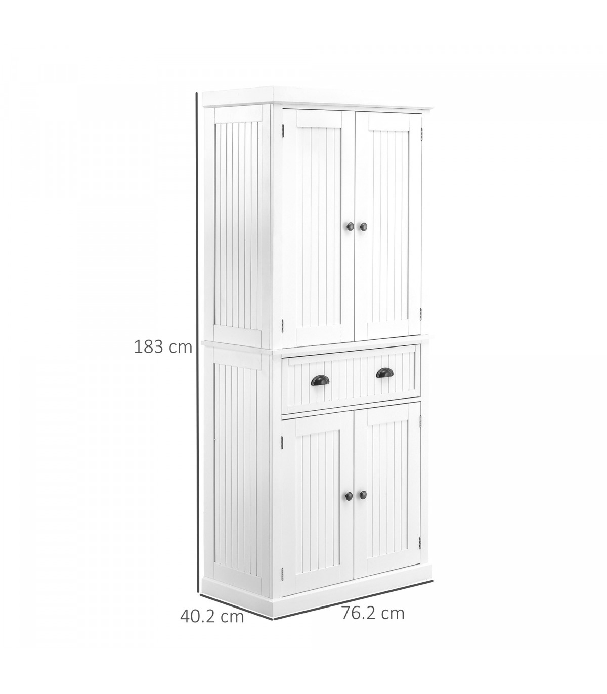 Spacious Storage: Features a top and bottom cabinet and a middle slide-out drawer, this storage cabinet with doors and shelves provides plenty of room to store and organise your kitchen and homeware.