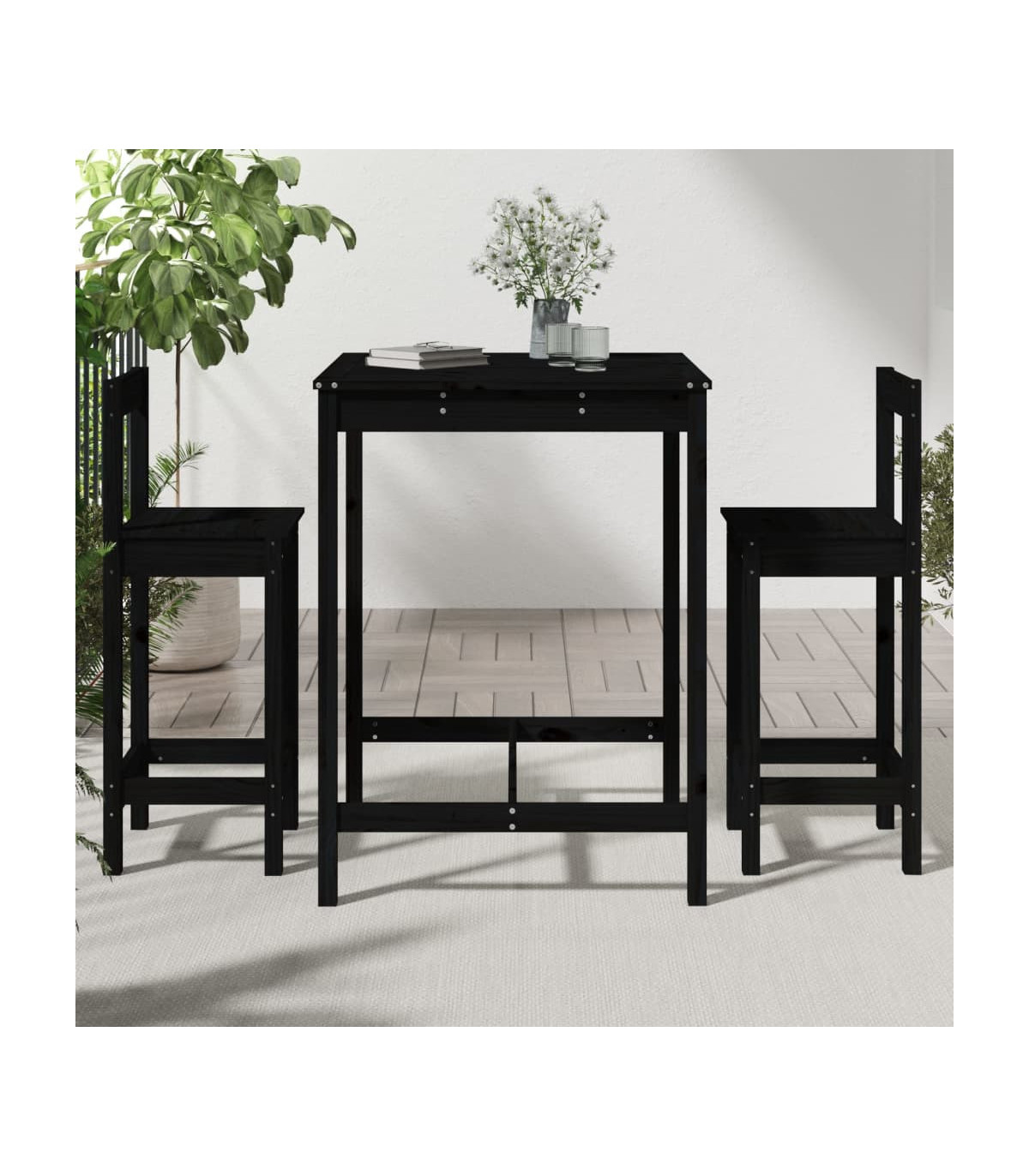 Take a sip of your favourite drink or enjoy a nice meal with your family and friends around this wooden garden bar set! Solid pine wood: This bar set is made of solid pine wood. Solid pine wood is a beautiful natural material. Pine wood has a straight grain, and the knots give the material its signature, rustic look.Sturdy top: The bar table of the pub set has a sturdy top, which is perfect for placing your drinks, food and other decorative items.Comfortable seating: The wooden bar stool is designed with a backrest and a built-in footrest to offer you a comfortable seating experience.Wide applications: With its minimalist design, the patio bar set can be integrated into any corner of the garden, patio, balcony, backyard, etc. Note:To make sure your outdoor furniture stays beautiful, we recommend protecting it with a waterproof cover.