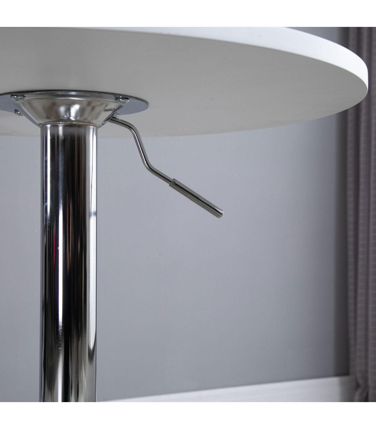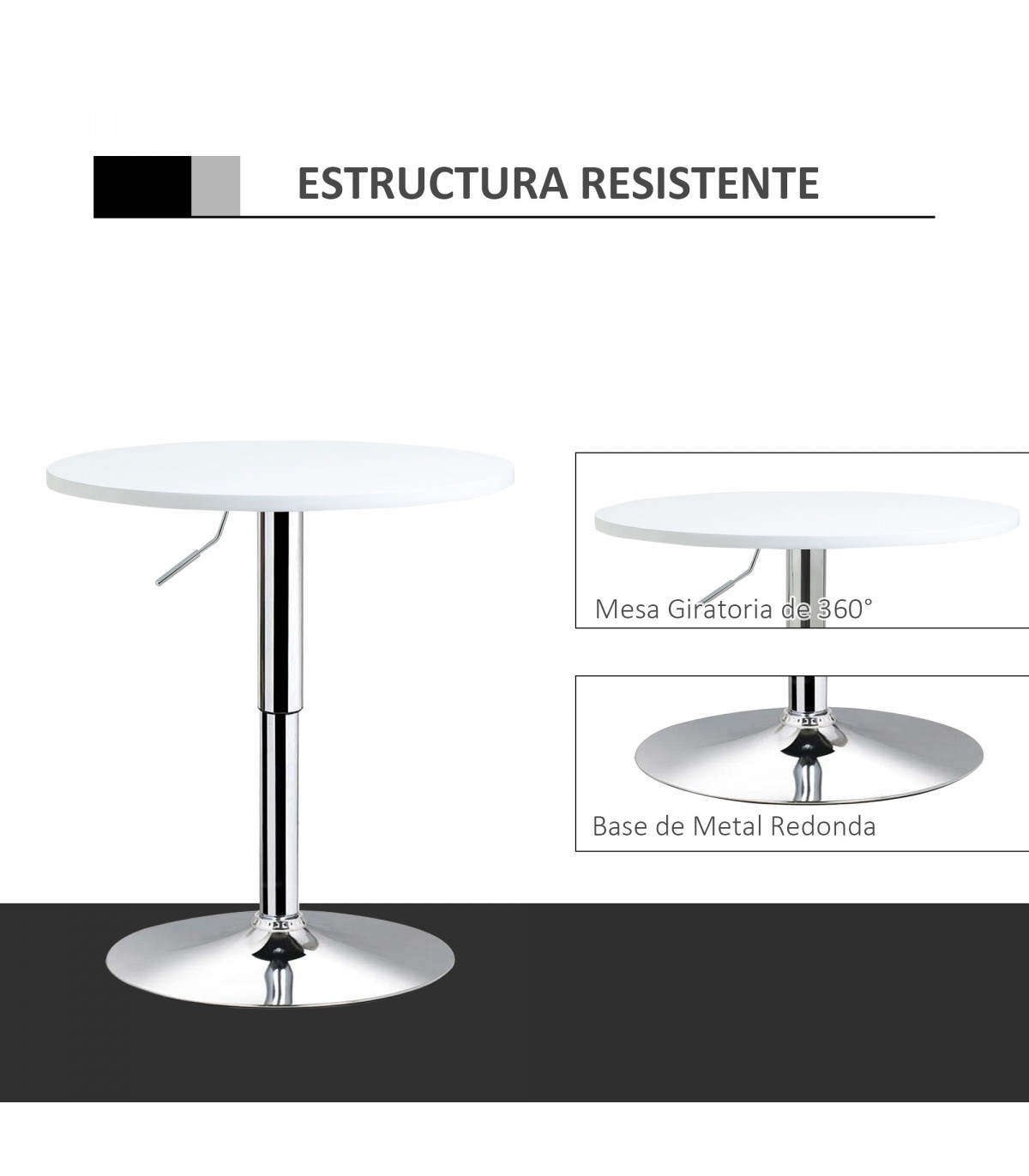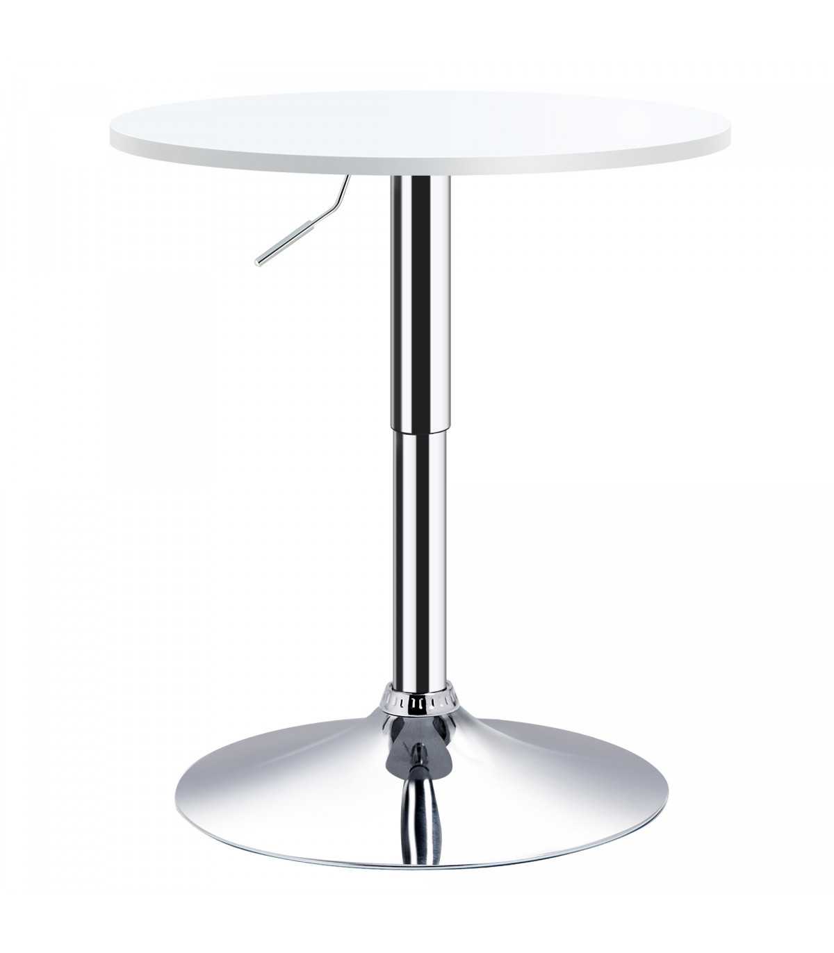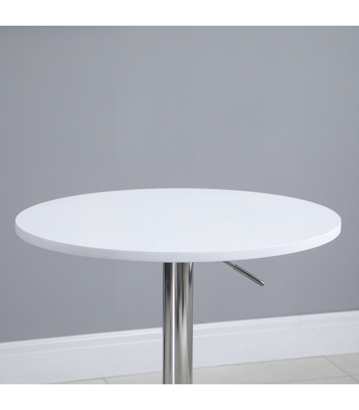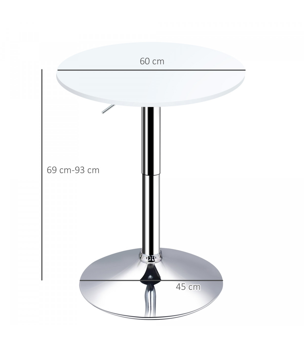 - "60cm Adjustable Height Round Bar Table w/ Swivel Top Metal Frame White" - Description: - ADJUSTABLE HEIGHT: Sets between 69-93cm, allowing you to use it at a level suitable for you. - Can be paired with various dining chairs and tall bar stools. - SWIVEL TABLE TOP: Round shape, providing a flat and reliable surface for dining and drinking. - Made from durable MDF material. - METAL FRAME: Solid construction paired with a large round base ensures table stability. - BASE PAD: Protects floors from light marks and damage. - DIMENSIONS: 69-93H x 60cm diameter. - MAXIMUM LOAD: 60KG. - ASSEMBLY REQUIRED.