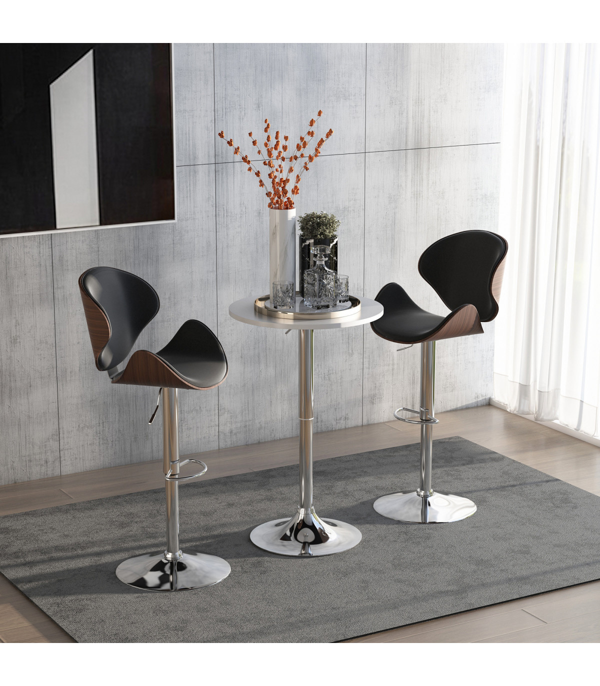 60cm Adjustable Height Round Bar Table w/ Swivel Top Metal Frame White