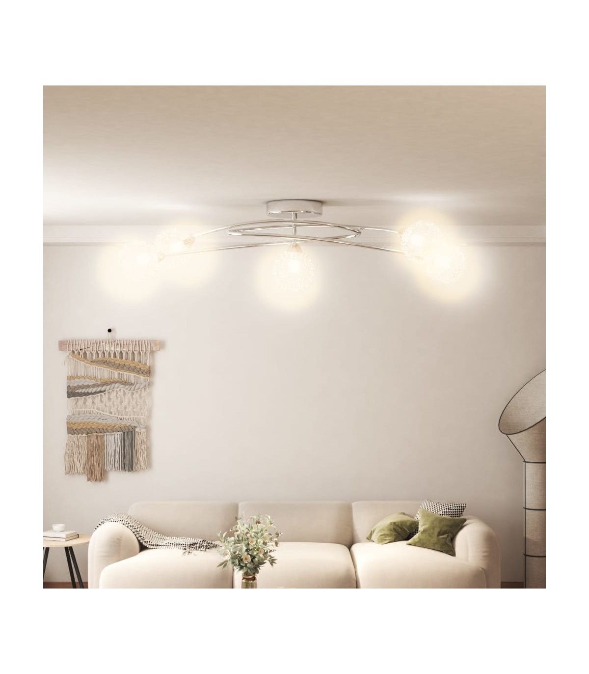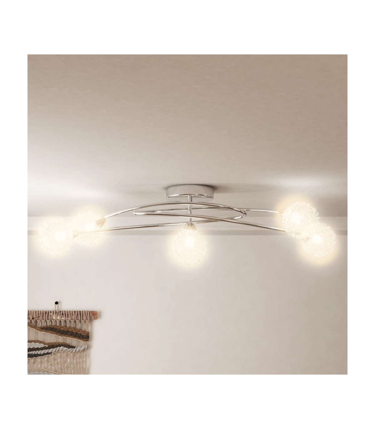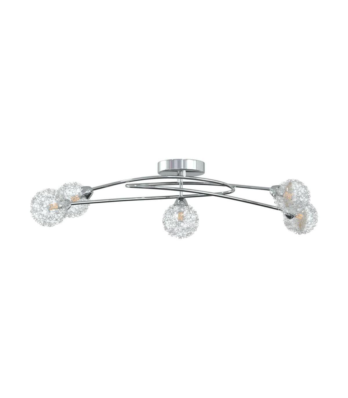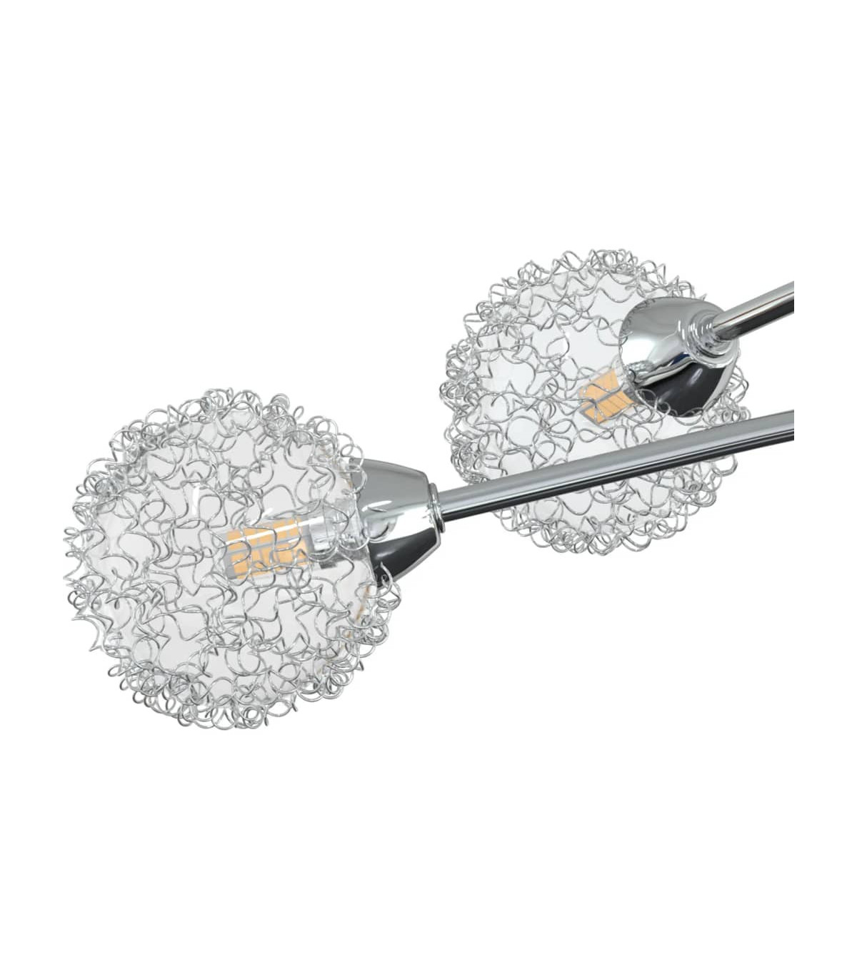 This unique ceiling lamp, with 5 glass shades wrapped by aluminum mesh wire, features a modern design and adds a stunning look to your room. Chrome-polished material: The iron base and 5 tangled iron tubes are all finished with chrome, making the ceiling light serve for a long time and helps you save time and money in replacing the lamp.G9 bulb base: The elegant pendant light features 5 G9 bulb bases, and the maximum wattage of each bulb does not exceed 40 watts.LED light: The energy-saving LED technology helps to lower energy consumption and electricity costs.Beautiful light shades: Wonderful light can come through those delicate glass shades, illuminating every corner of the room. The aluminum mesh wire outside the shades makes the light shine more brightly. Note:Each product comes with an assembly manual in the box for easy assembly.