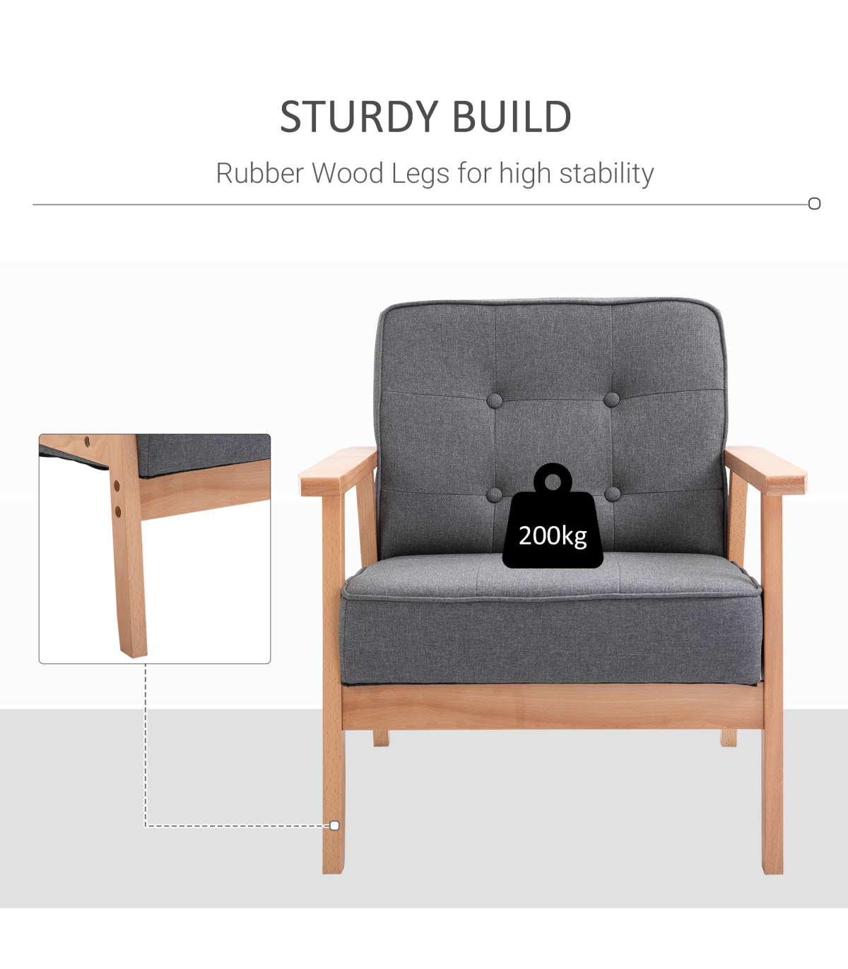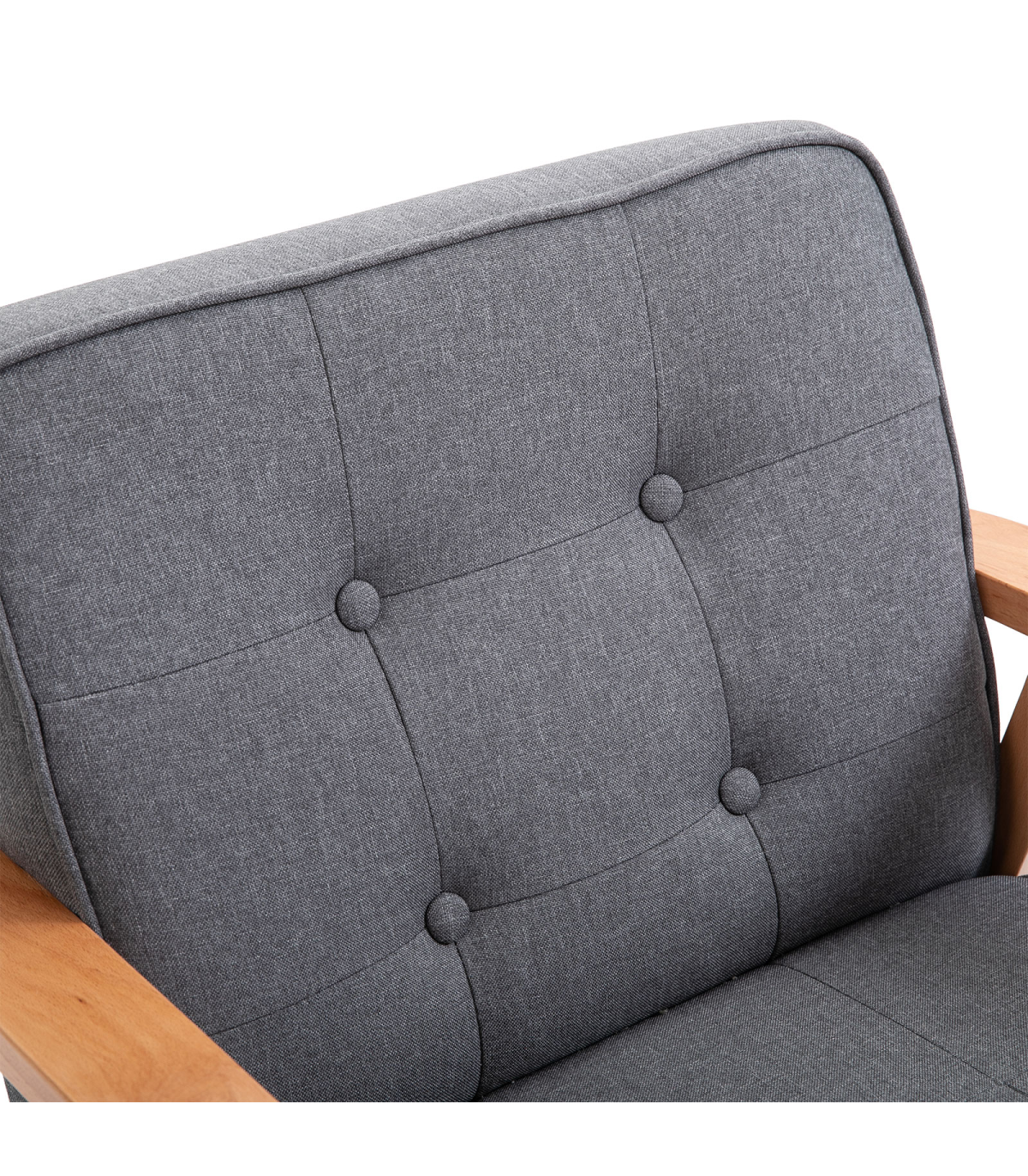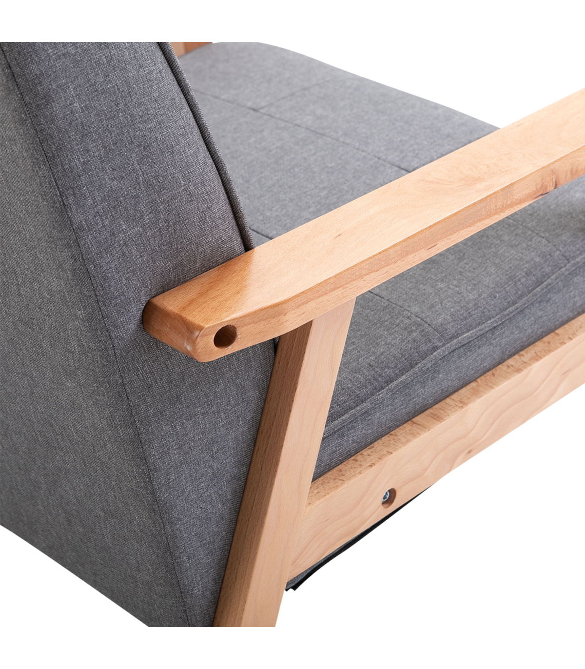 Retro Single Sofa Armchair Beech Wood Frame Padded Cushion Linen Fabric Grey