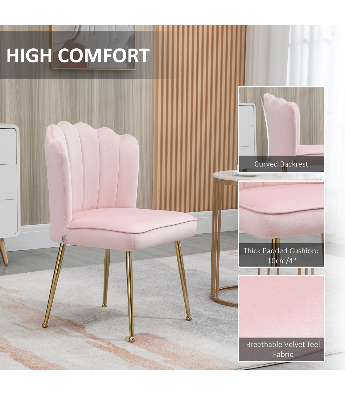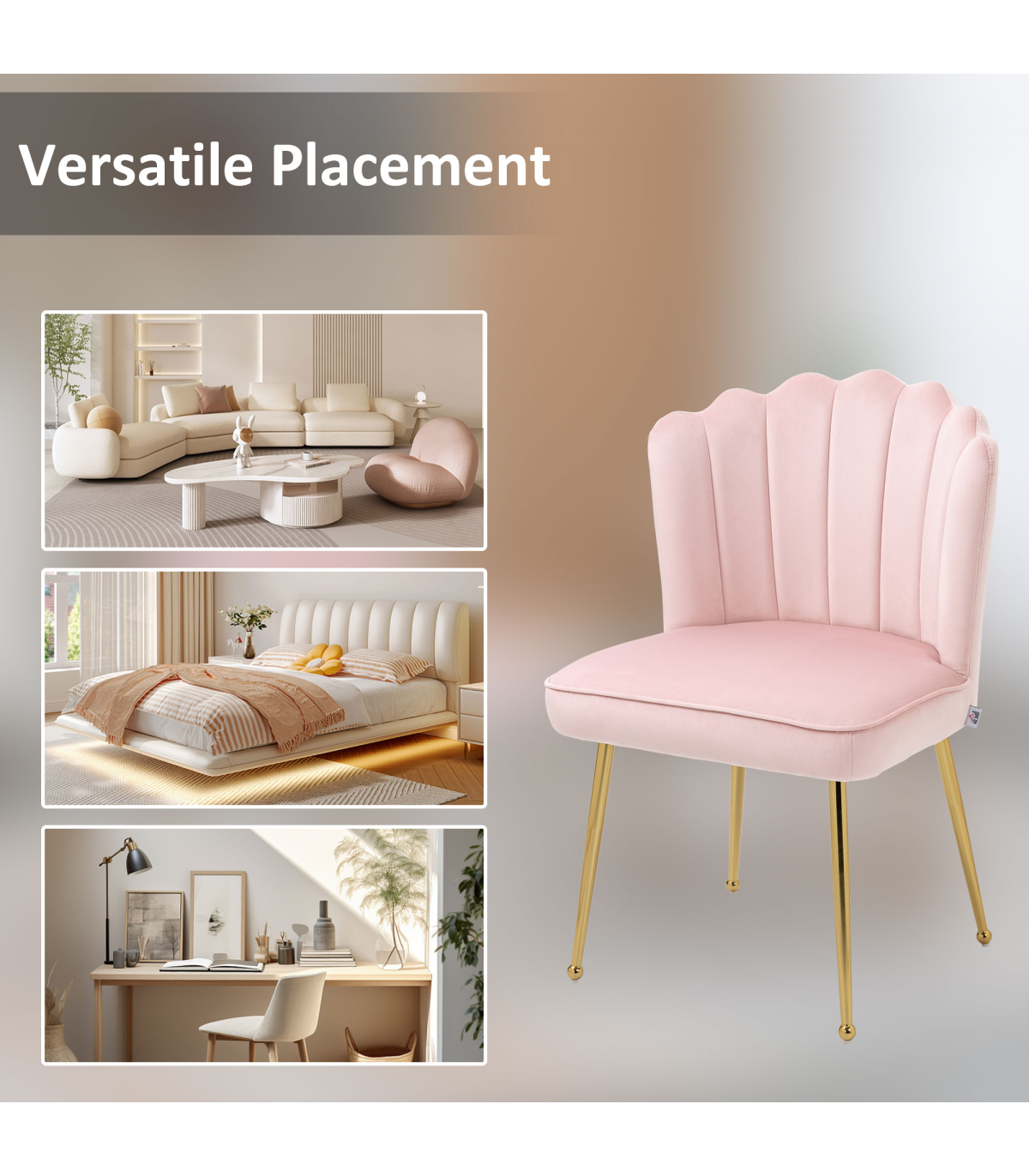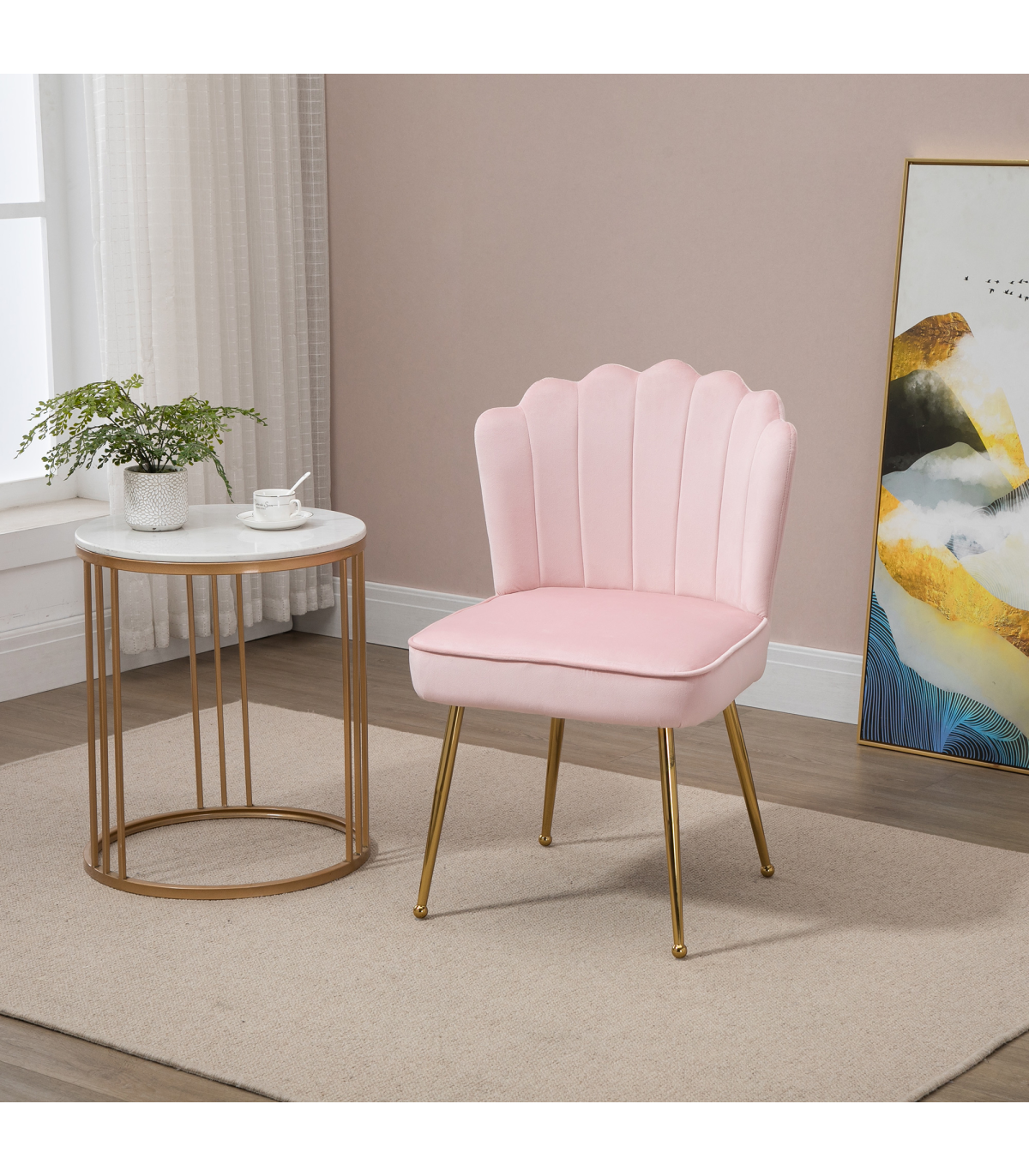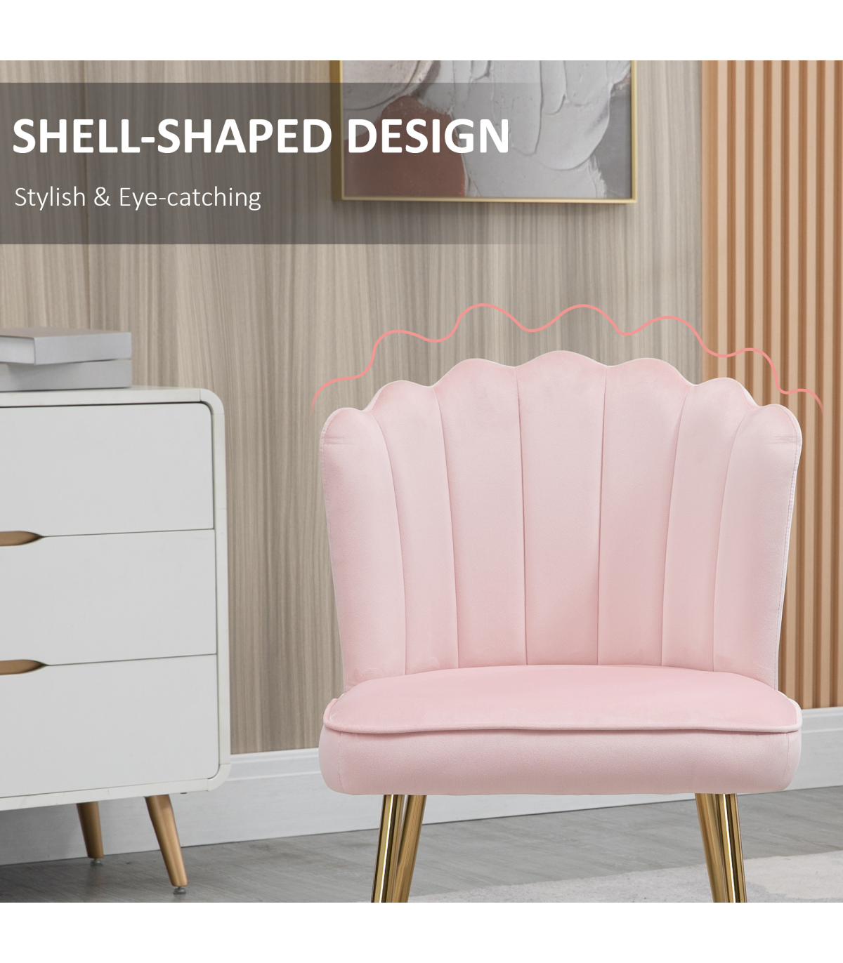 Velvet-Feel Shell Luxe Accent Chair Home Bedroom Lounge with Metal Legs Pink