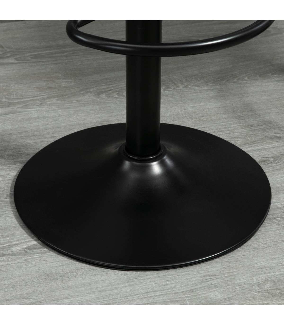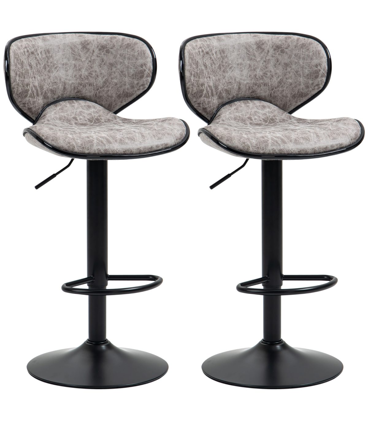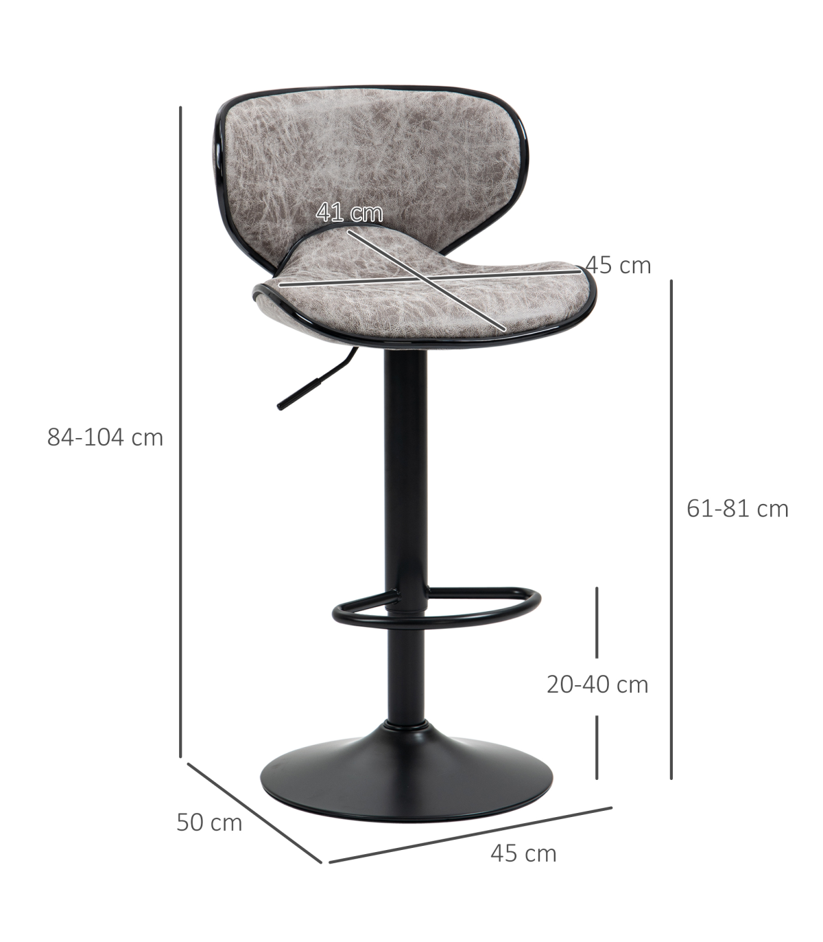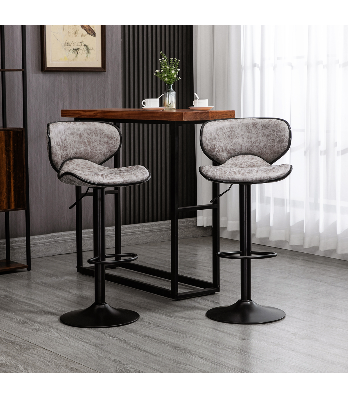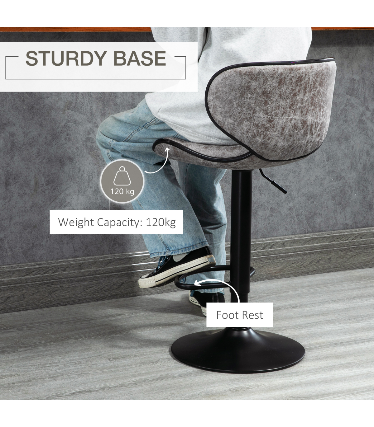 Ultra-curved seats: Moulded bottom and arched back with thick padding, holds your body shape comfortably and supports as you sit on the breakfast bar stools.Soft-upholstery: Retro worn-out effect of each kitchen stool is cool and on-trend, with thick black piping for extra style points.Metal frame, adjustable height: Strong core for each adjustable stool, with a round base for balance. Bottom bar to rest lower body. Adjust the height between 84-104cm.Set of two: Create a matching look in your look kitchen and dining spots.Dimensions: 84-104H x 45W x 50Dcm. Maximum load 120kg. Assembly required.