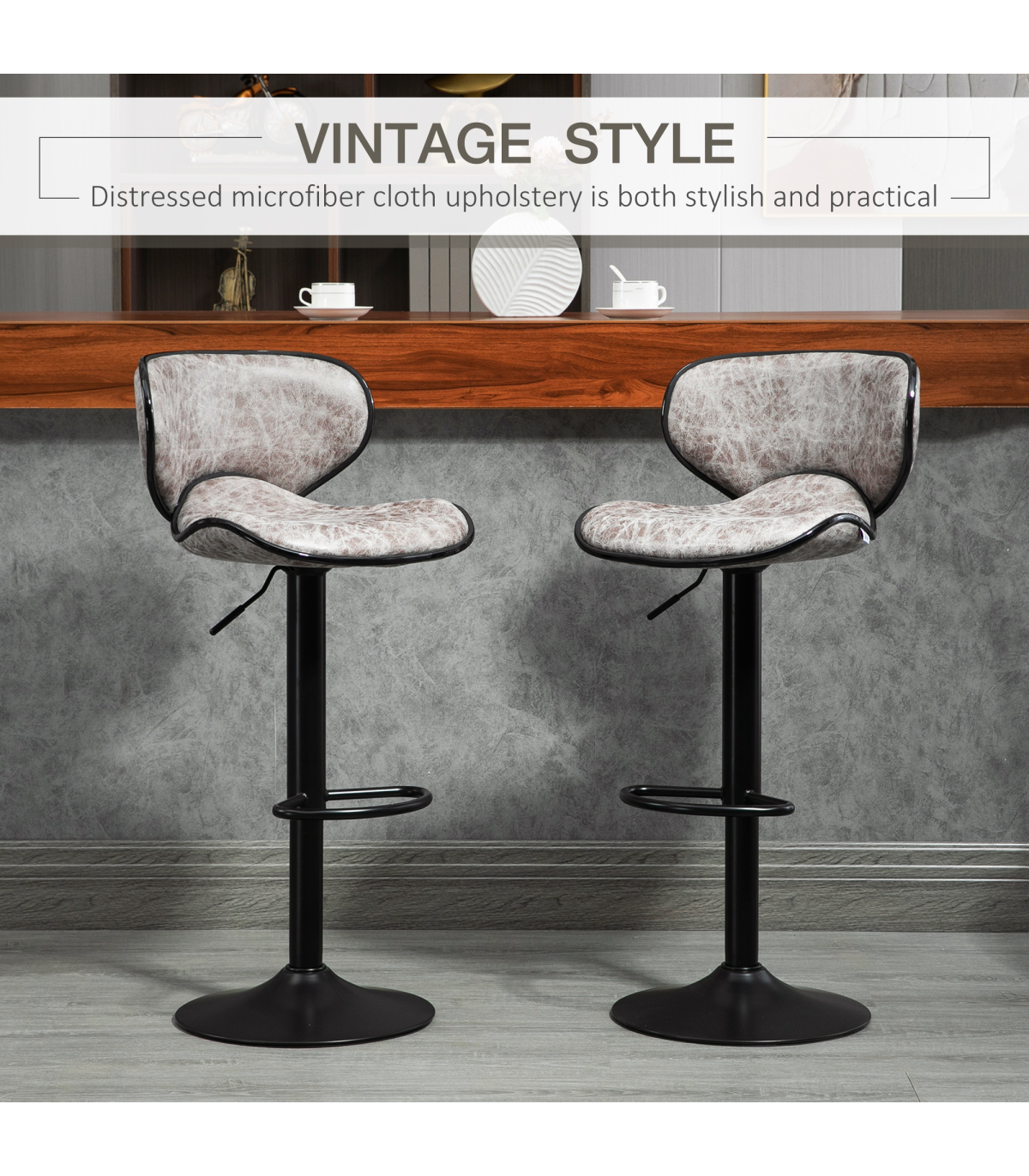 Vintage Bar Stool Set of 2 Microfiber Cloth Adjustable Height Armless Chairs