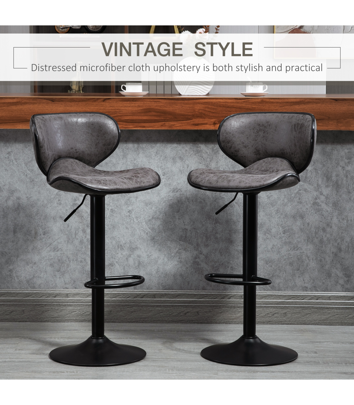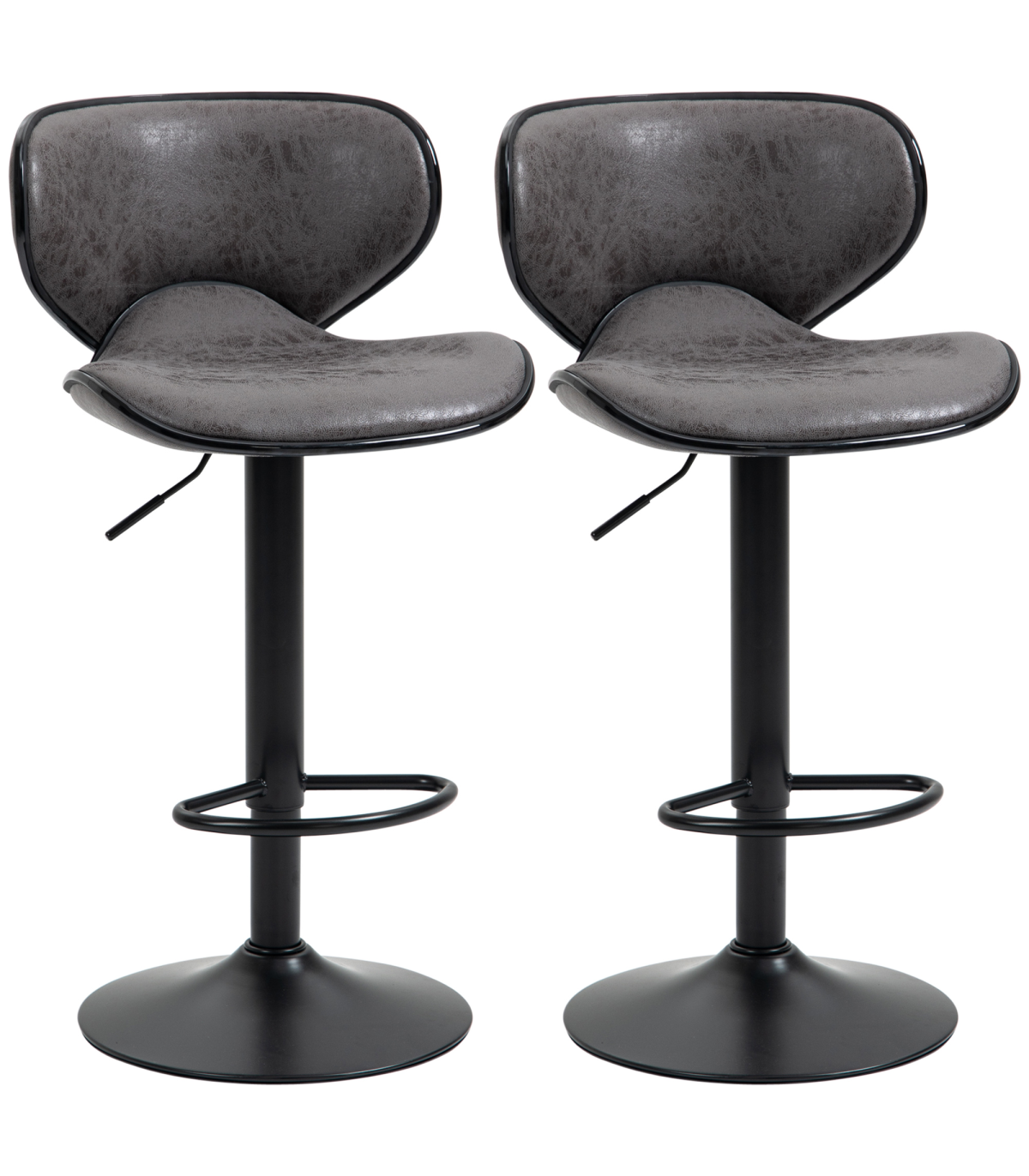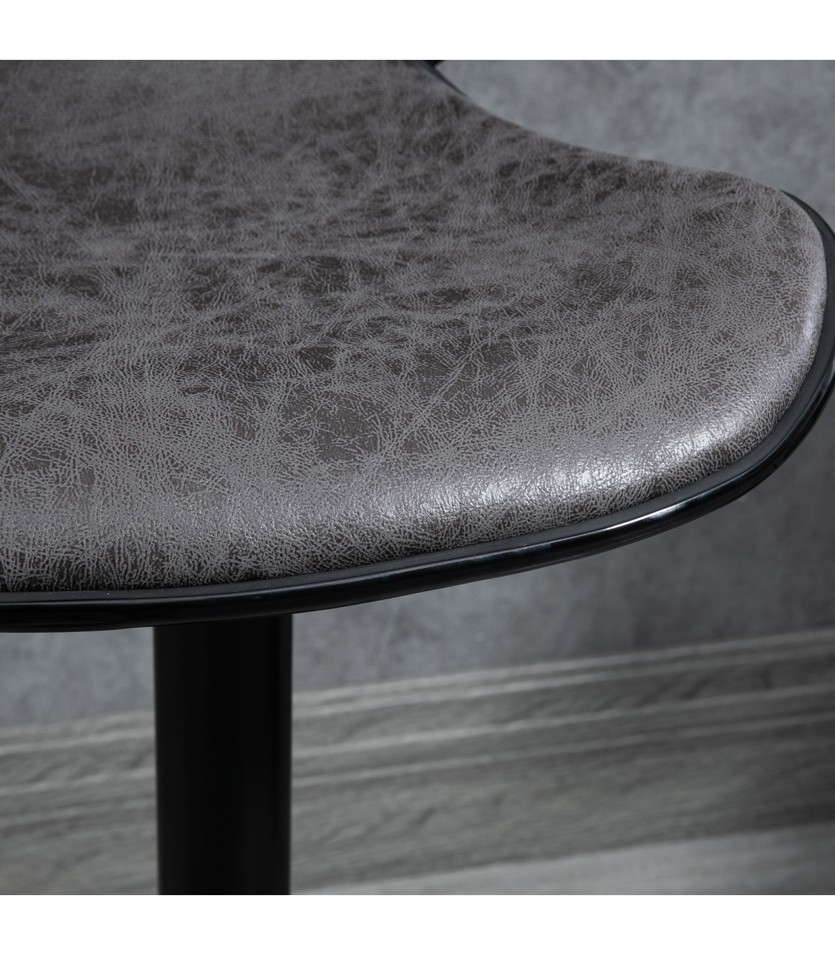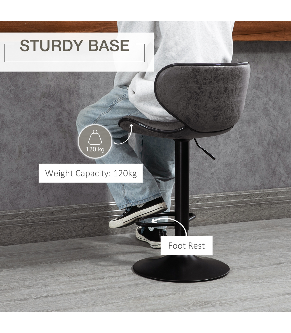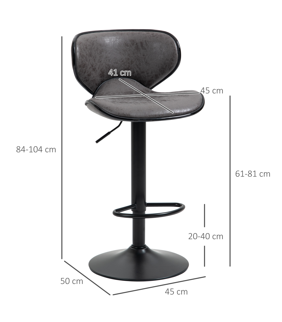 Ultra-curved seats: Moulded bottom and arched back with thick padding, holds your body shape comfortably and supports as you sit on the breakfast bar stools.Soft-upholstery: Retro worn-out effect of each kitchen stool is cool and on-trend, with thick black piping for extra style points.Metal frame, adjustable height: Strong core for each adjustable stool, with a round base for balance. Bottom bar to rest lower body. Adjust the height between 82-102cm.Set of two: Create a matching look in your look kitchen and dining spots.Dimensions: 82-102H x 45W x 50Dcm. Maximum load 120kg. Assembly required.
