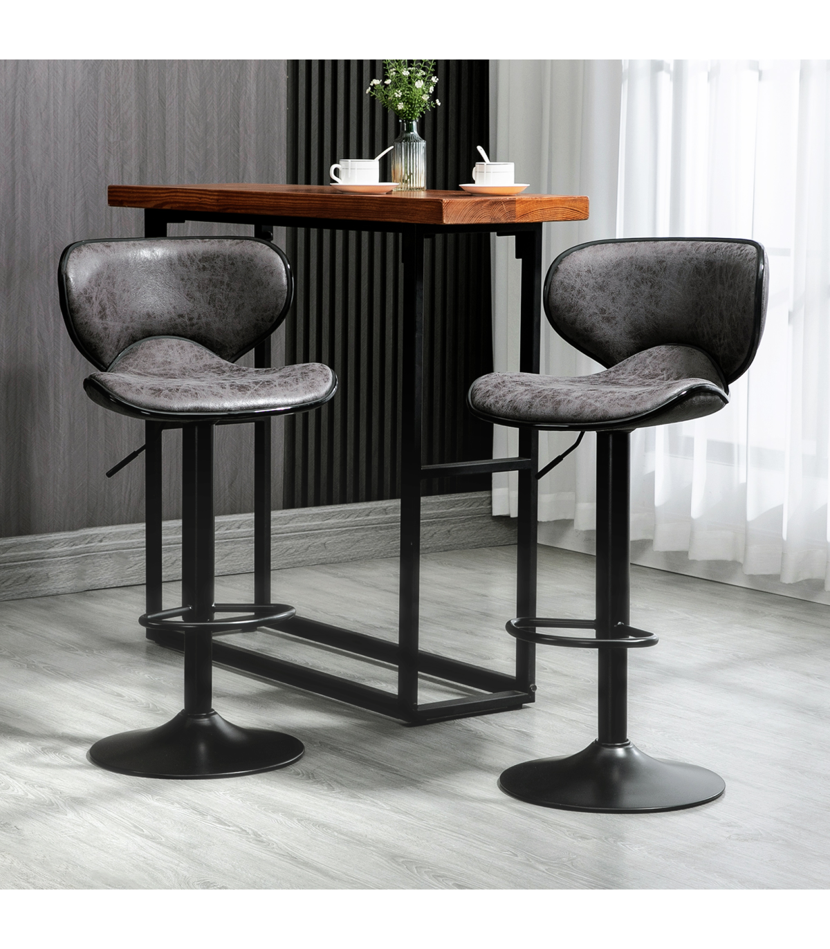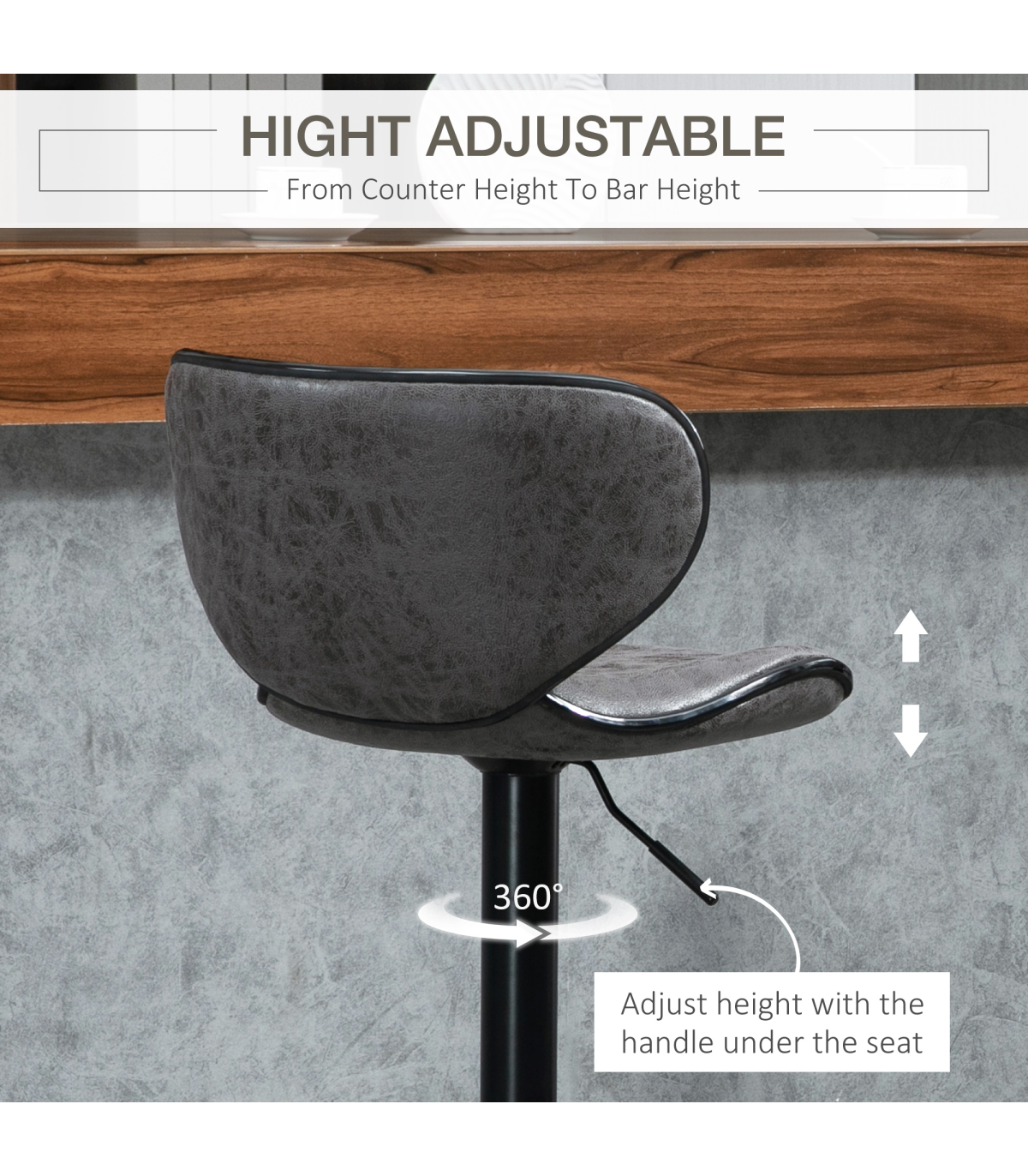 Vintage Bar Stool Set of 2 PU Leather Adjustable Height Armless Chairs