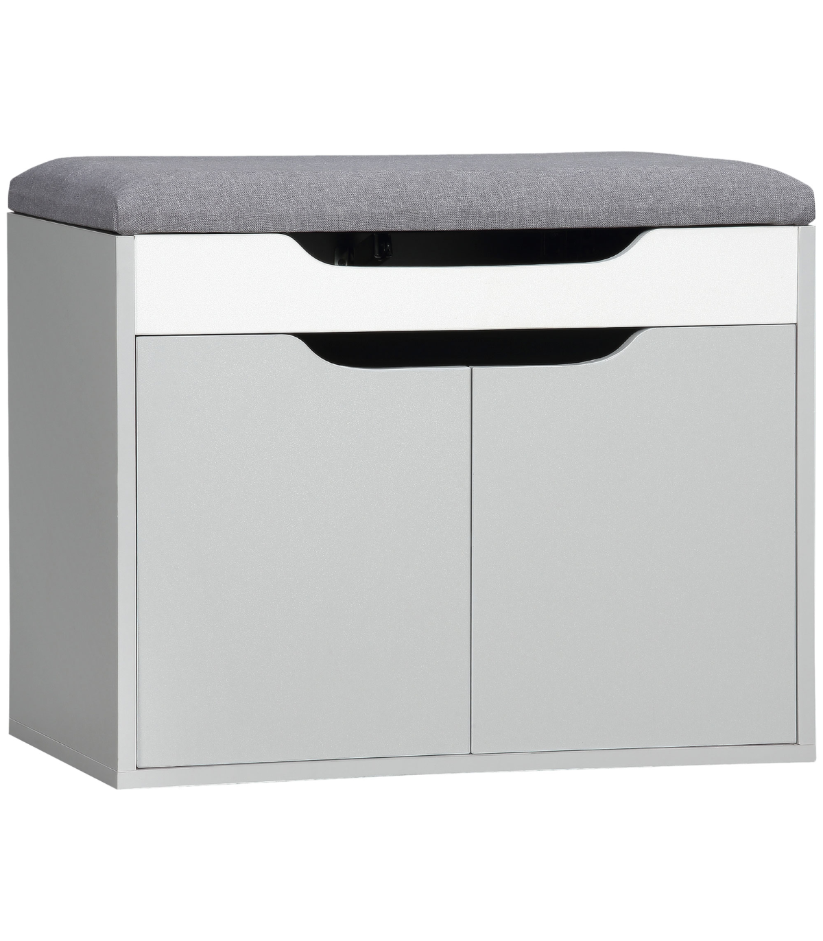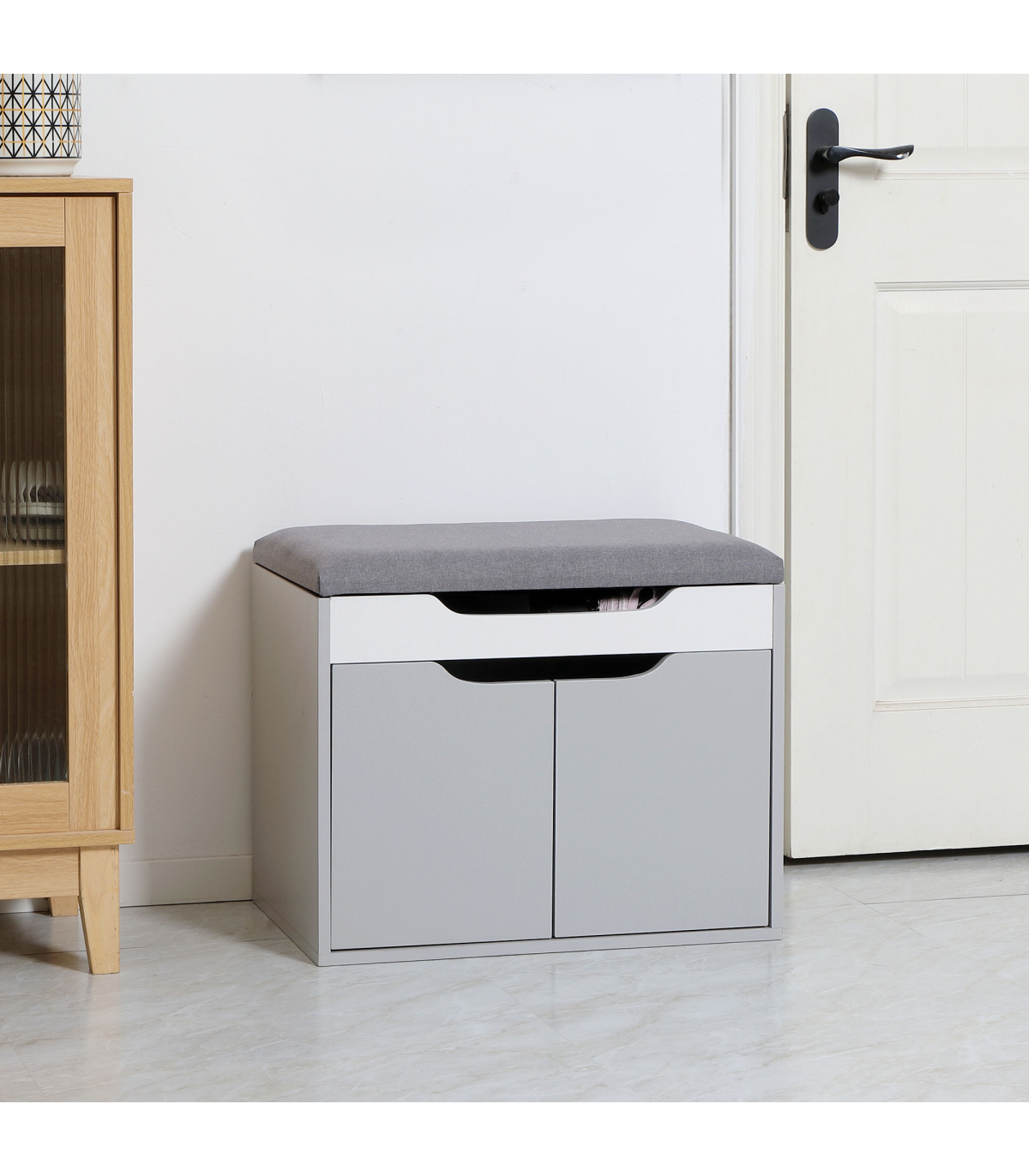 Shoe Storage Bench w/ Cabinet Adjustable Shelf and Cushion for Entryway Grey