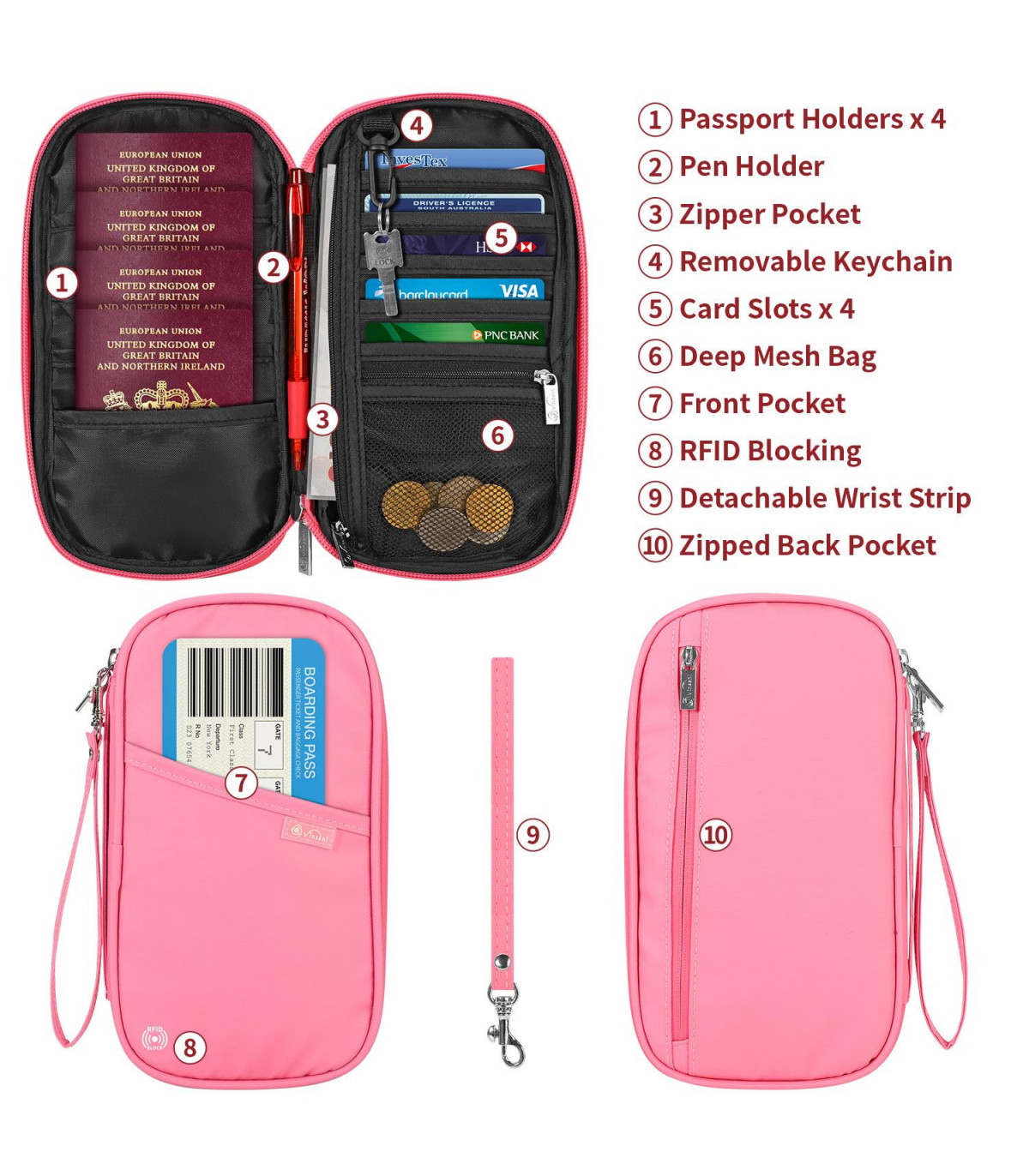 YOUR TRAVEL DOCUMENTS IN ONE PLACE - Get organised with our passport holder and never miss a beat. Our passport holder is the perfect travel companion, with lots of pockets to keep all your items safe and secure. From 4 passport holders, 5 card slots, pen slot and a secure zippered pocket for important things, you'll have easy access to all your most essential belongings.