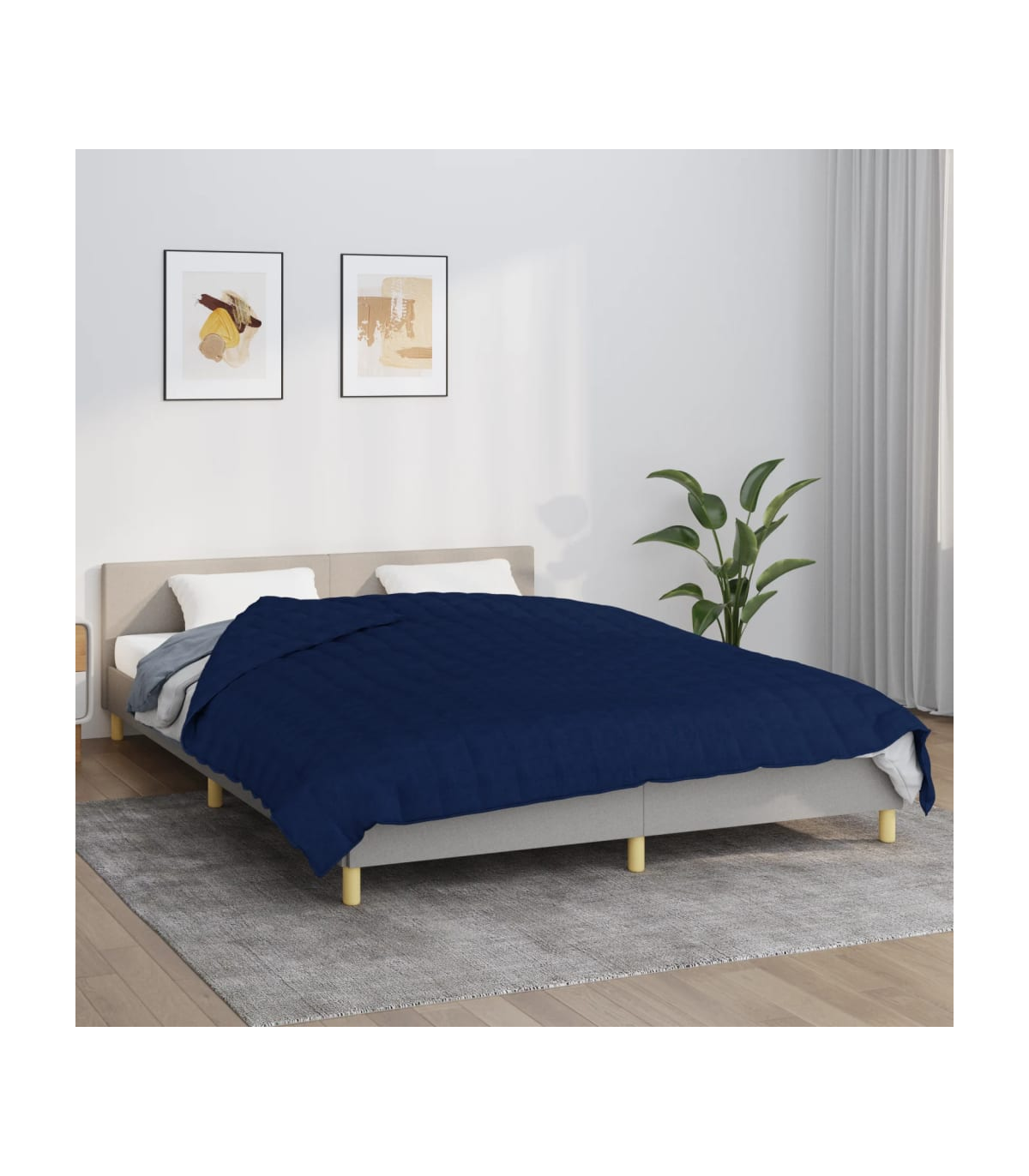 Problems sleeping at night? This weighted blanket gives a soft and comfortable pressure that helps your body and mind to find the rest it needs. Comfortable fabric: The cotton fabric features a clean look, is soft to the touch, breathable and durable.Soft filling: The blanket is filled with a combination of polyester fibers and odorless glass beads.Even weight distribution: The heavy blanket is designed to simulate 10% of your body weight. Its compact quilted pockets distribute the weight evenly across your entire body.Practical internal loops: The calming blanket with internal loops can be secured to any duvet cover of the same size.