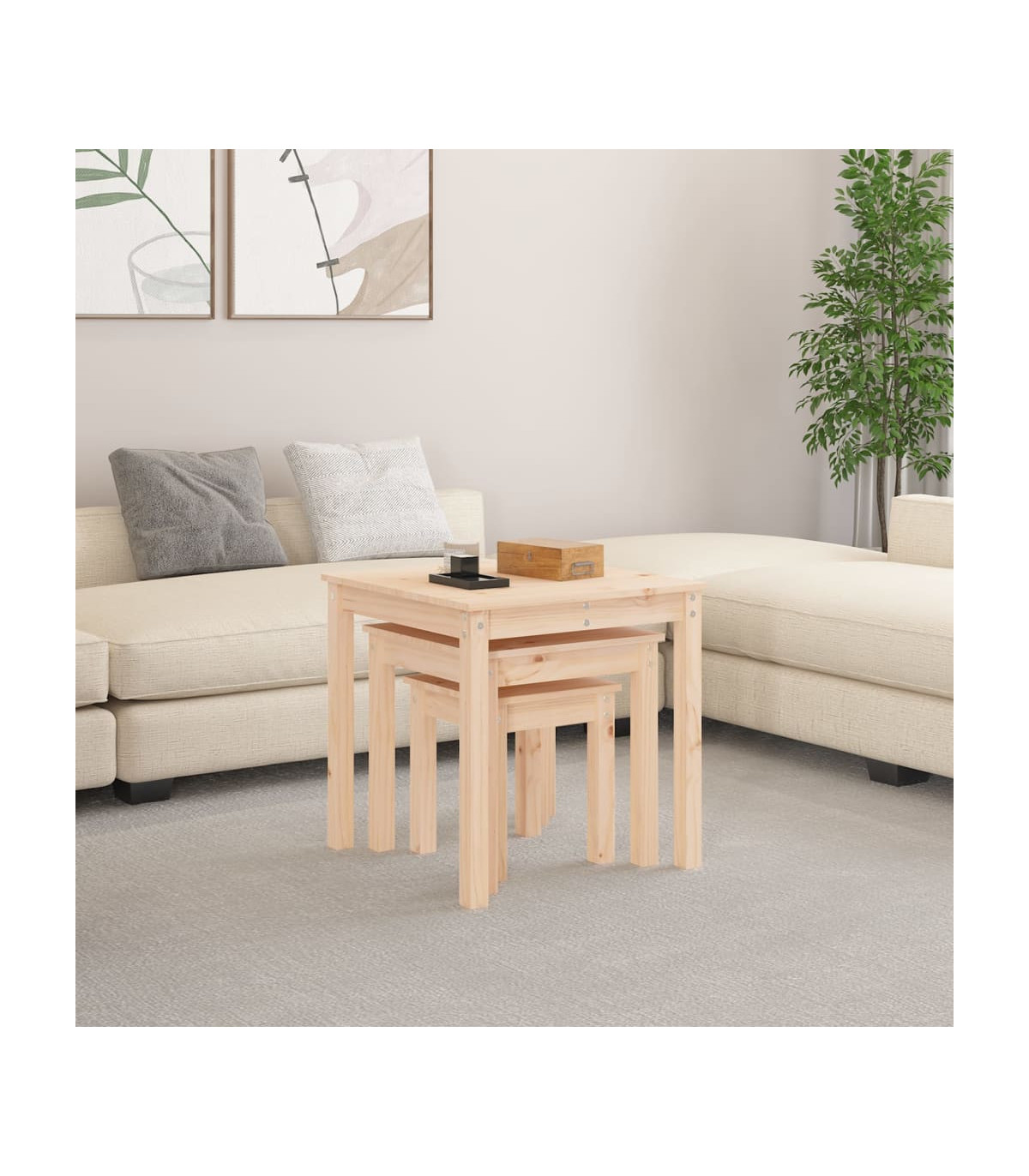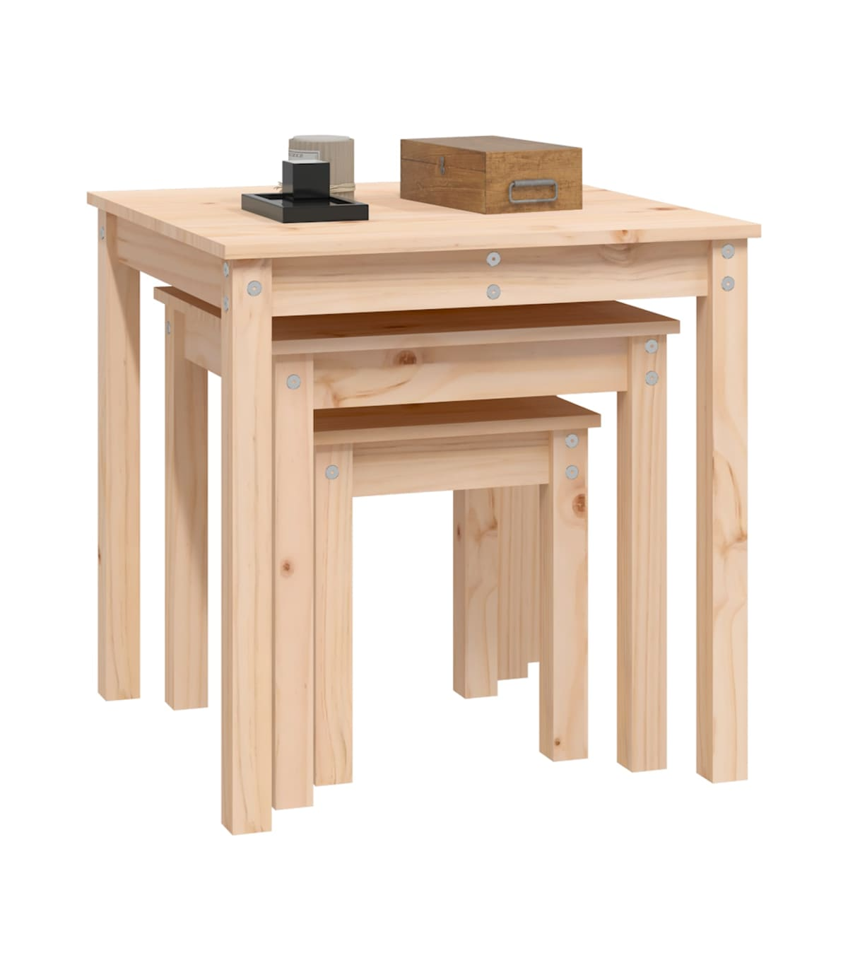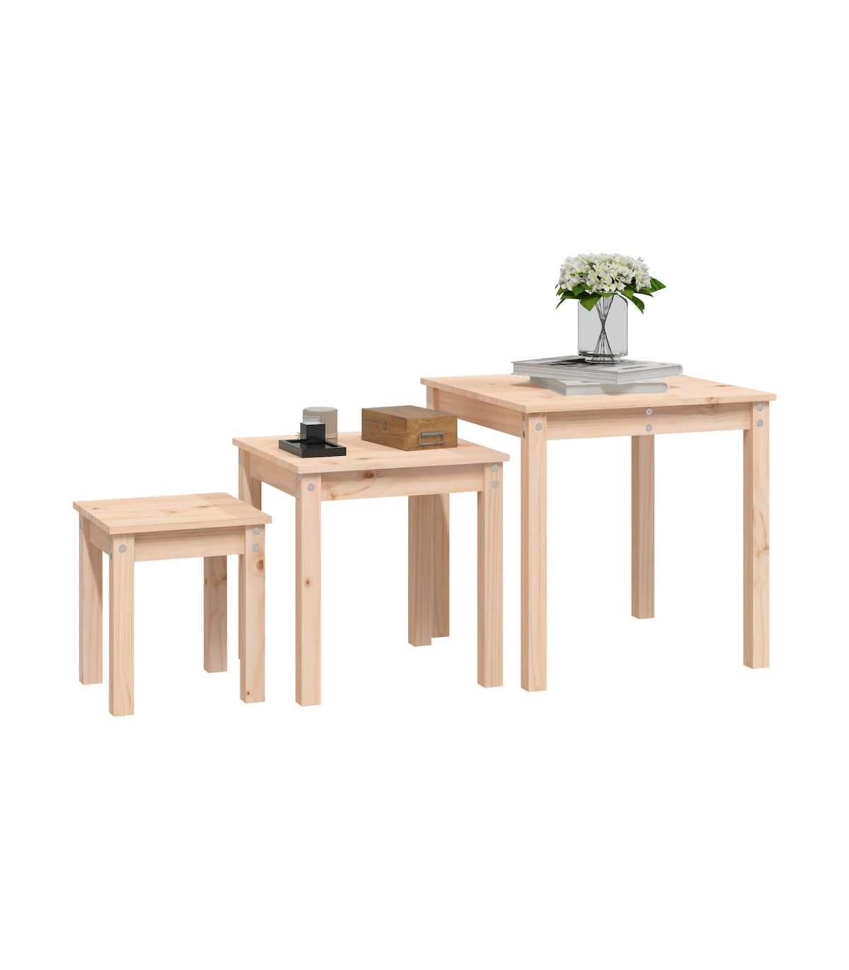 These wooden nesting tables are the perfect alternative for small flats or wherever space is a bit limited. The contemporary design makes them a chic addition to your living room or bedroom. Solid pine wood: Solid pine wood is a beautiful natural material. Pine wood has a straight grain, and the knots give the material its signature, rustic look.Nesting design: Thanks to the difference in size, these nesting side tables can not only meet your multiple needs, but also provide extra space and easy storage when the smaller tables are hidden under the bigger one.Multifunctional tables: The nest of tables can be used in the living room to rest your drinks or any other necessities you need close at hand. You can also bring one of them into your bedroom as a unique nightstand! Warning:In order to prevent overturning, this product must be used with the wall attachment device provided. Note:Each product comes with an assembly manual in the box for easy assembly.