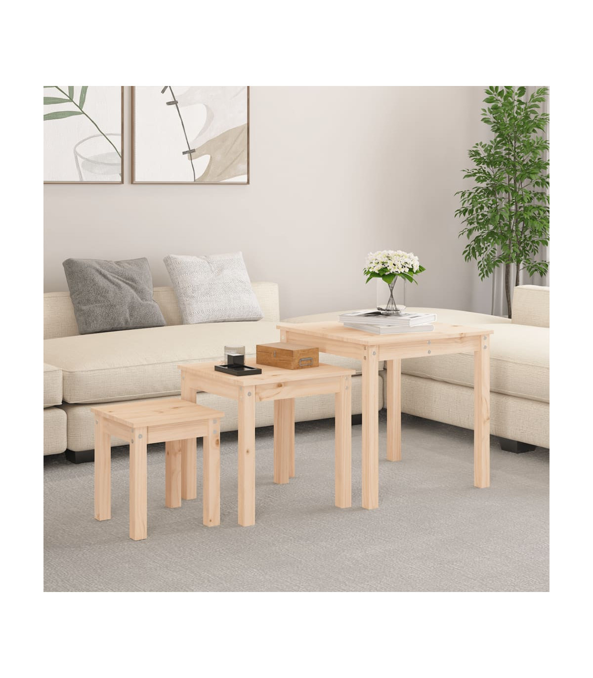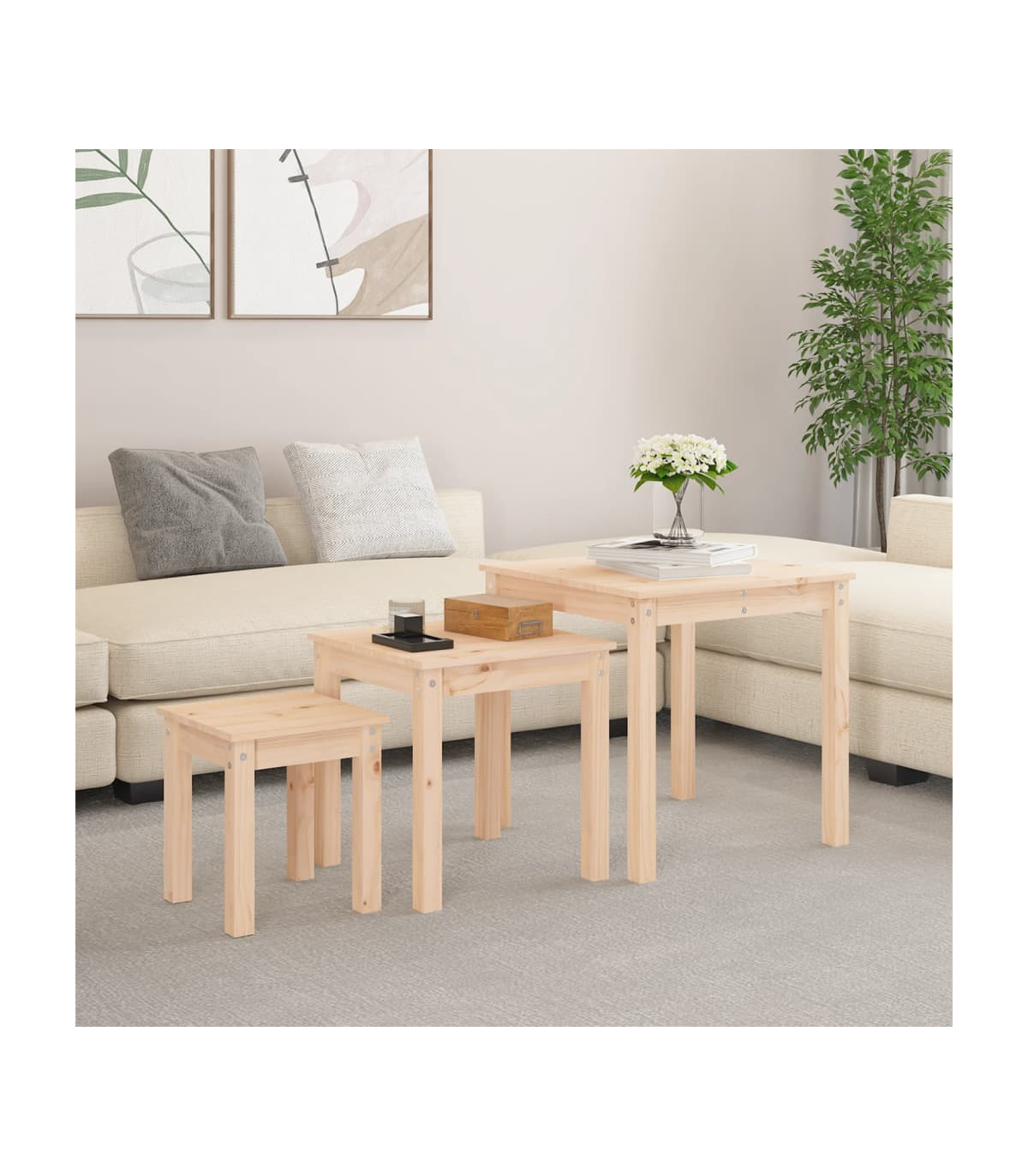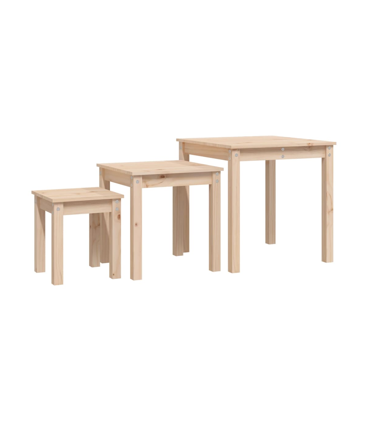 These wooden nesting tables are the perfect alternative for small flats or wherever space is a bit limited. The contemporary design makes them a chic addition to your living room or bedroom. Solid pine wood: Solid pine wood is a beautiful natural material. Pine wood has a straight grain, and the knots give the material its signature, rustic look.Nesting design: Thanks to the difference in size, these nesting side tables can not only meet your multiple needs, but also provide extra space and easy storage when the smaller tables are hidden under the bigger one.Multifunctional tables: The nest of tables can be used in the living room to rest your drinks or any other necessities you need close at hand. You can also bring one of them into your bedroom as a unique nightstand! Warning:In order to prevent overturning, this product must be used with the wall attachment device provided. Note:Each product comes with an assembly manual in the box for easy assembly.
