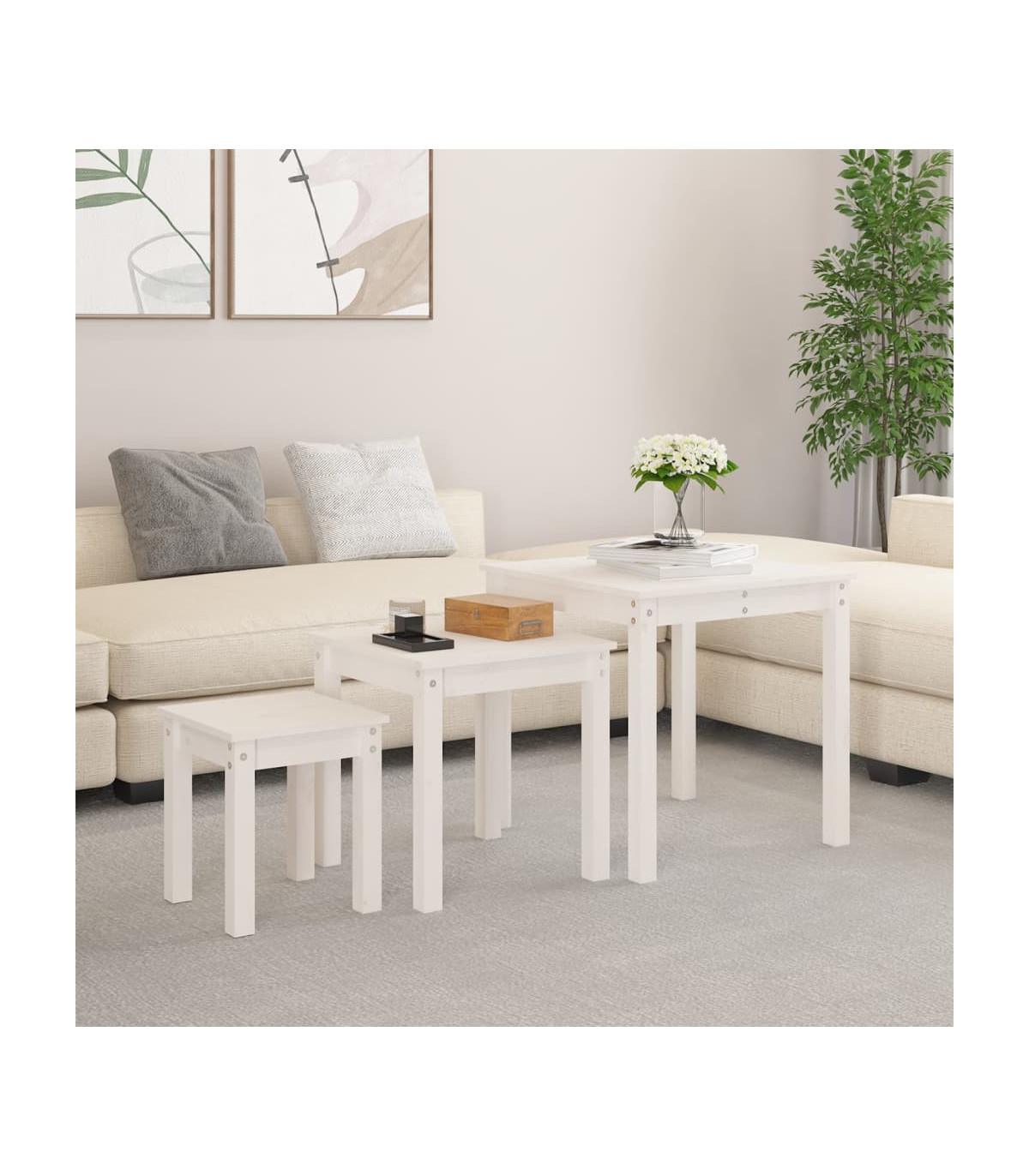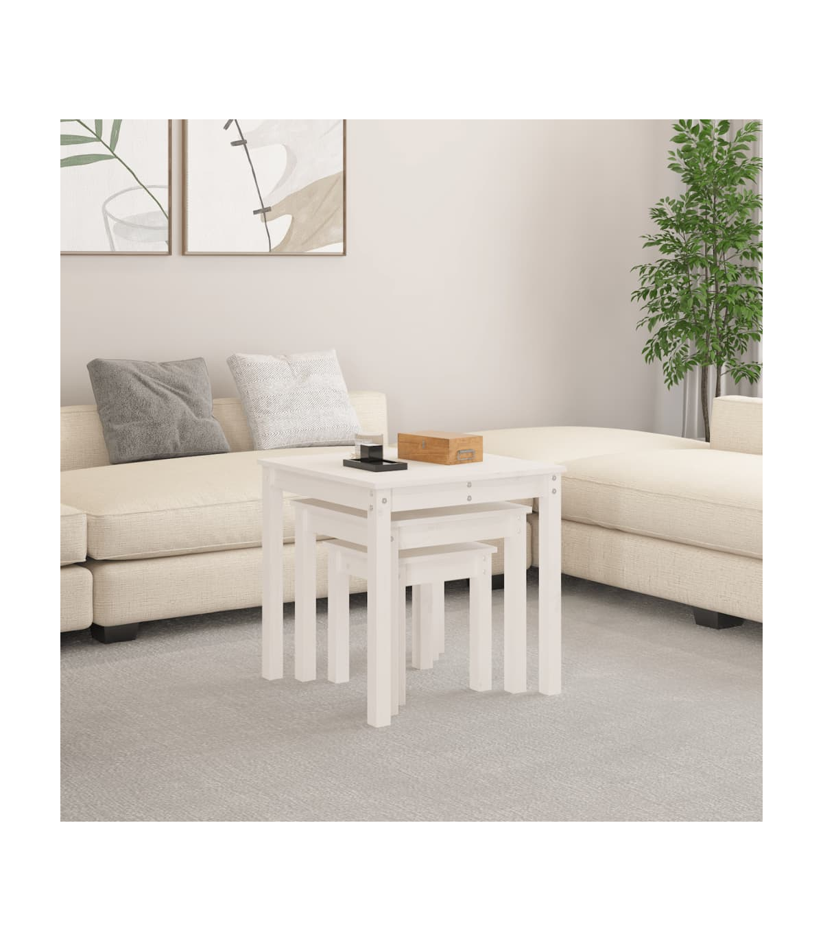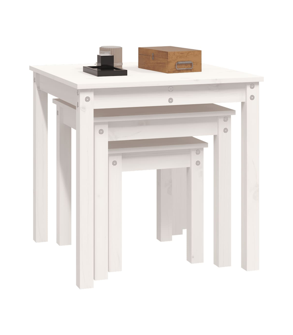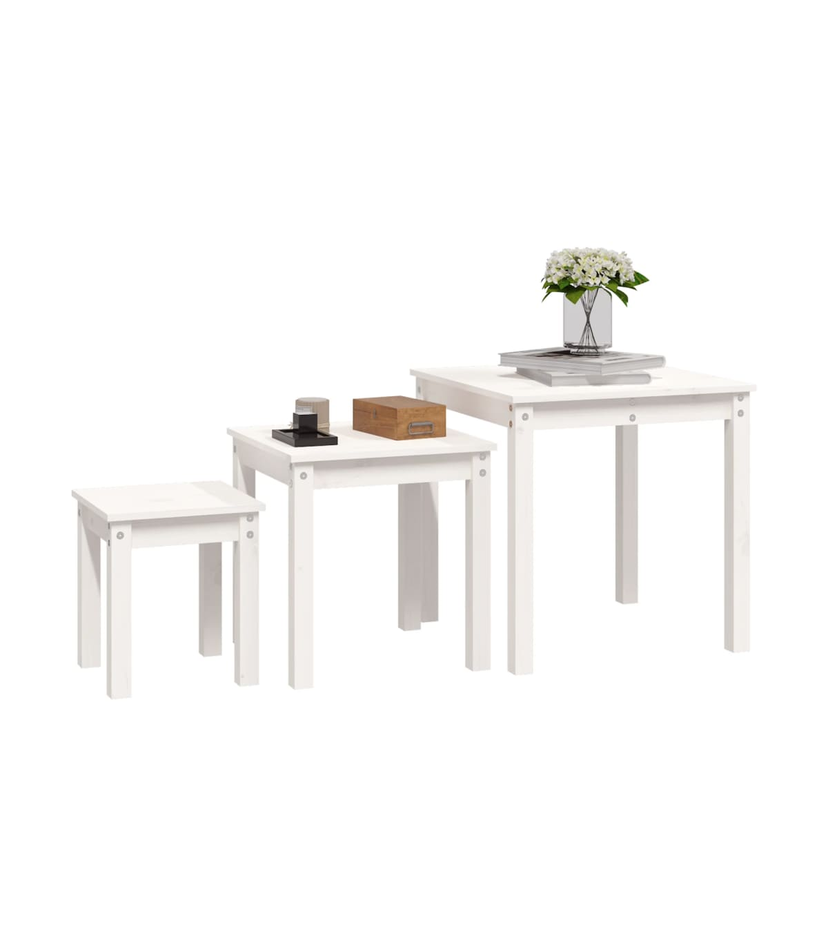 These wooden nesting tables are the perfect alternative for small flats or wherever space is a bit limited. The contemporary design makes them a chic addition to your living room or bedroom. Solid pine wood: Solid pine wood is a beautiful natural material. Pine wood has a straight grain, and the knots give the material its signature, rustic look.Nesting design: Thanks to the difference in size, these nesting side tables can not only meet your multiple needs, but also provide extra space and easy storage when the smaller tables are hidden under the bigger one.Multifunctional tables: The nest of tables can be used in the living room to rest your drinks or any other necessities you need close at hand. You can also bring one of them into your bedroom as a unique nightstand! Warning:In order to prevent overturning, this product must be used with the wall attachment device provided. Note:Each product comes with an assembly manual in the box for easy assembly.