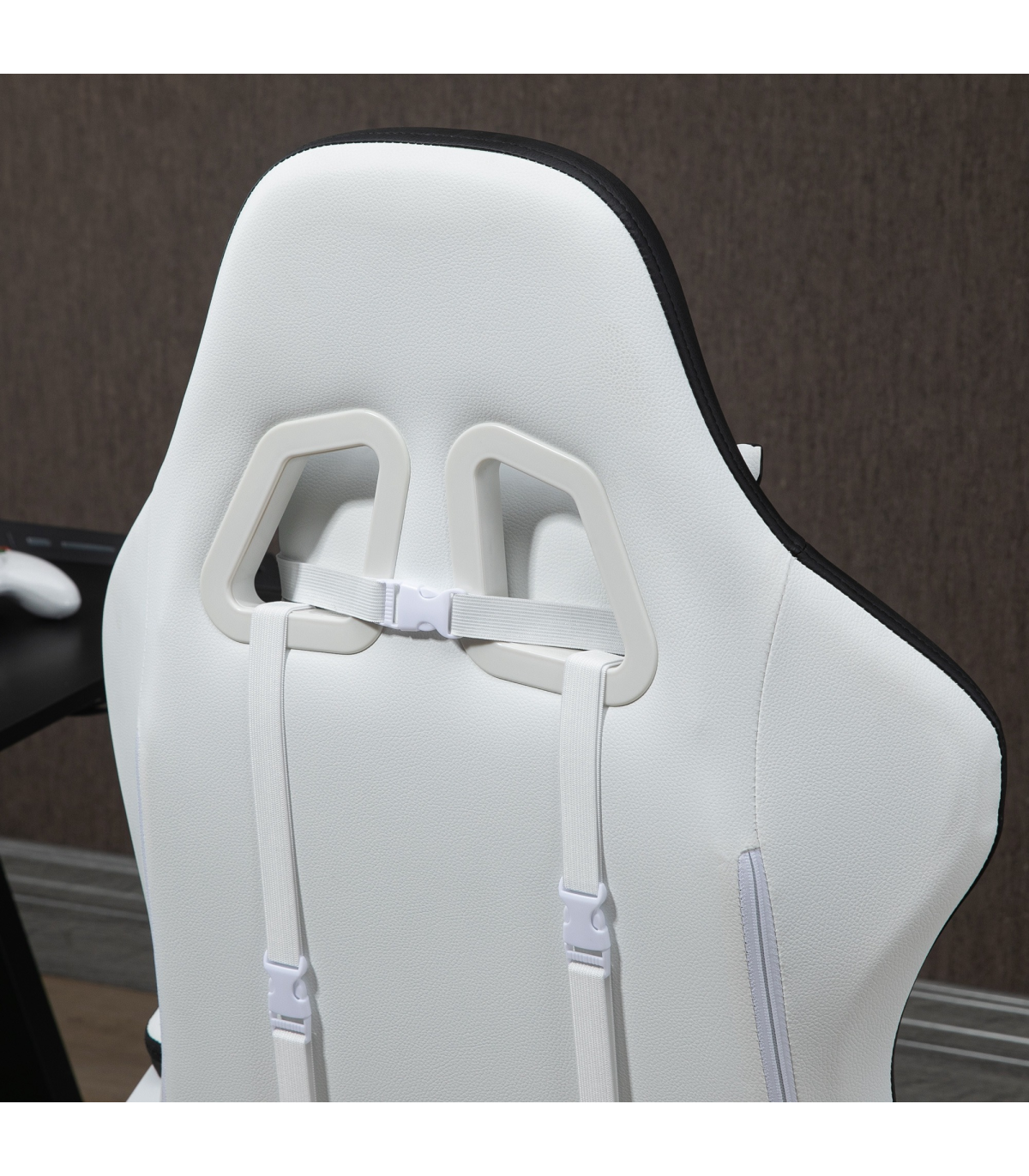 Stylish faux leather: White, with a coloured edge, this is a beautiful and impressive game chair. Brings character into your games room, home office and beyond.135e reclining back and footrest: Lean back to a position you want and elevate the lower body separately. Keep yourself relaxed whilst playing in this gamer chair.Padded, with head and lumbar pillows included: Sit and game in comfort in this computer chair. Top and lower pillows for support.45.5-53.5cm adjustable height: Set the position of this PC chair to a level you want. Suitable for using at different heights.Dimensions: 121-129H x 65W x 65Dcm. Seat: 45.5-53.5H x 50W x 49Dcm. Maximum load 120kg. Assembly required.