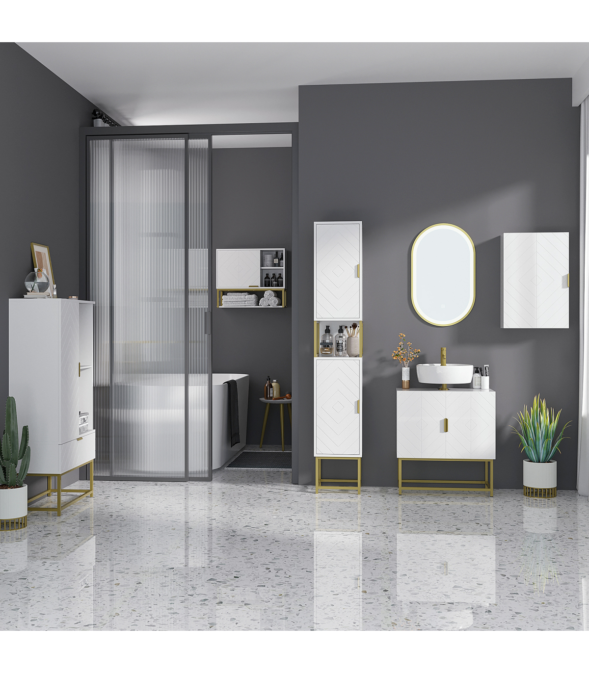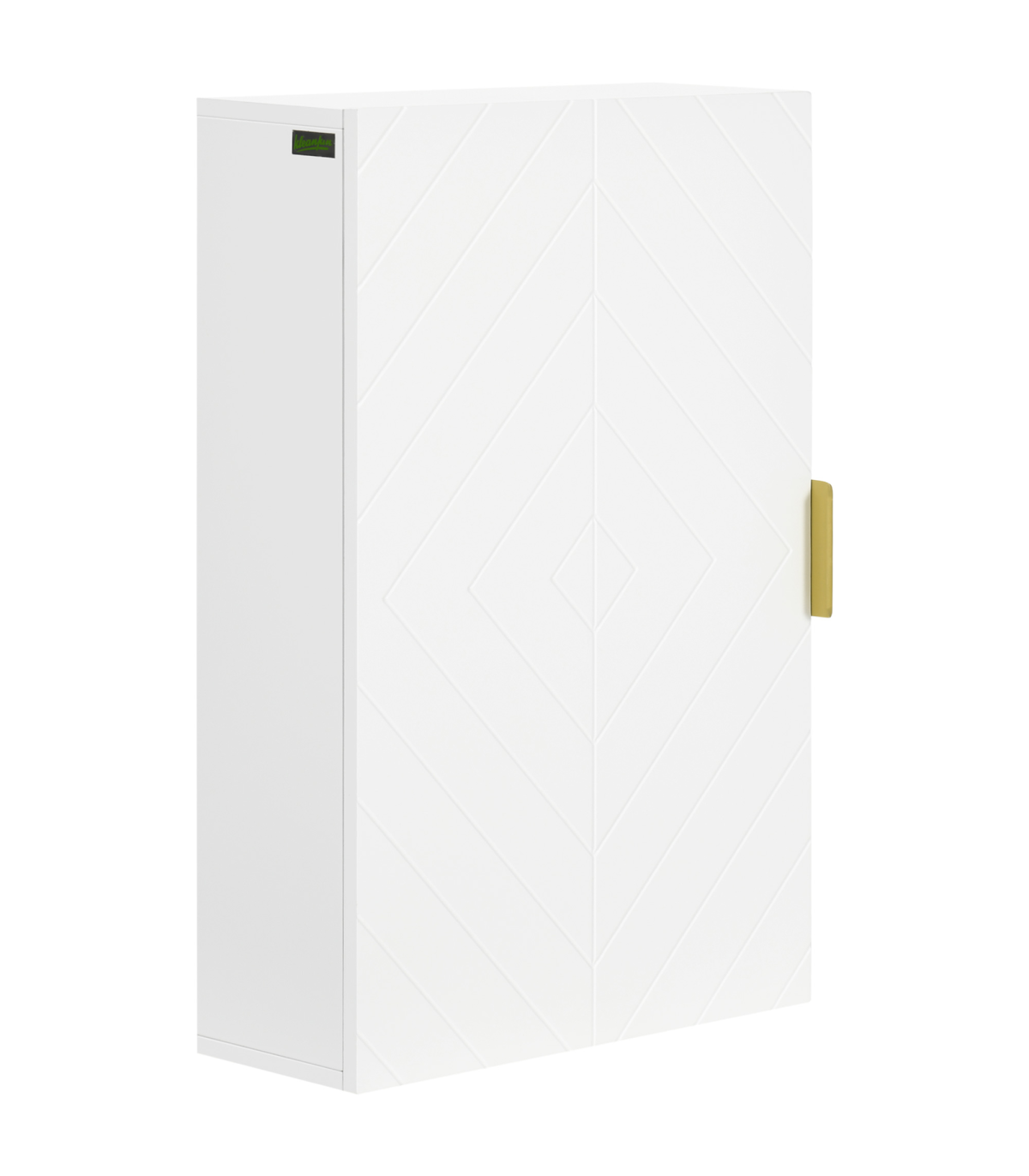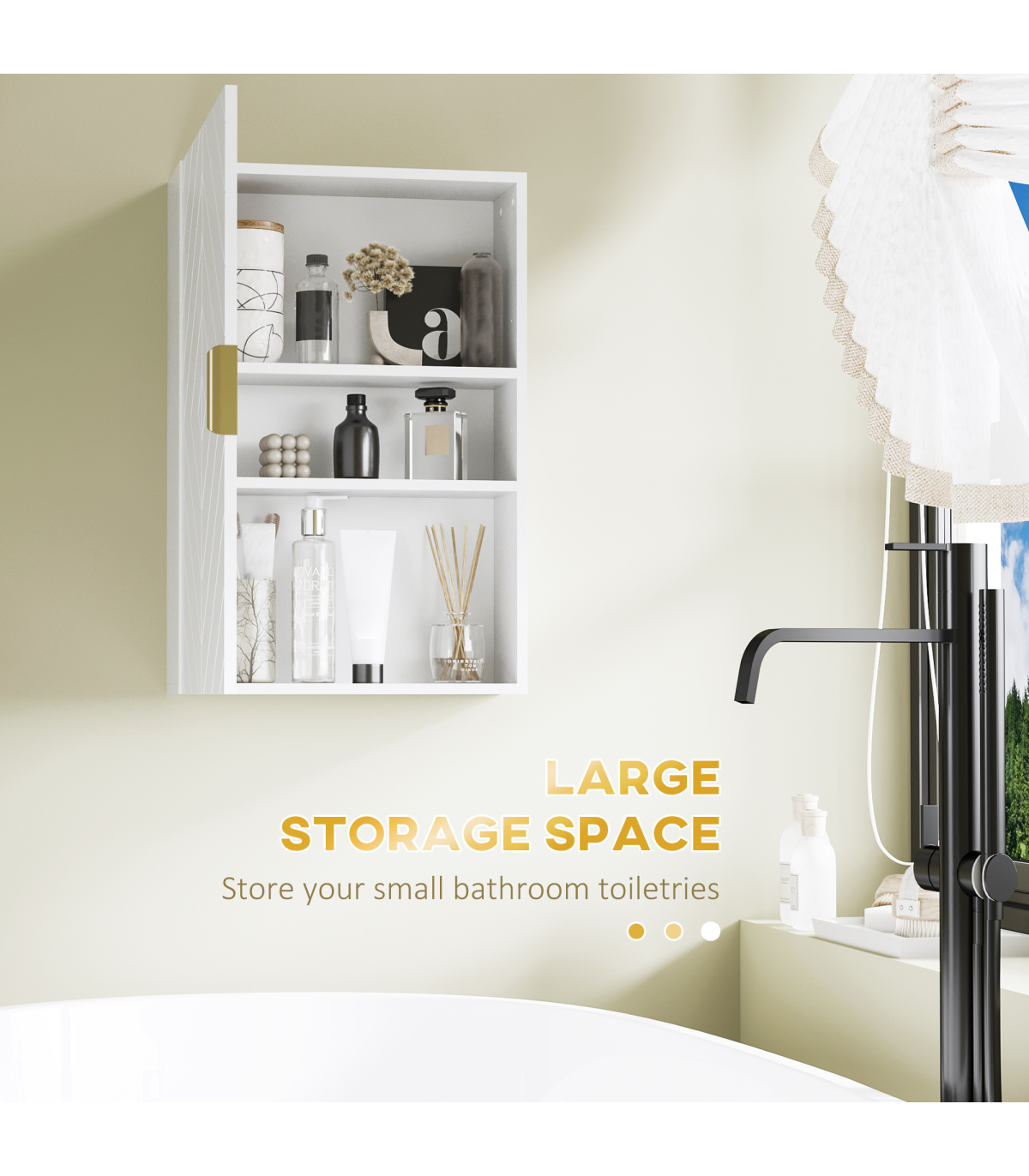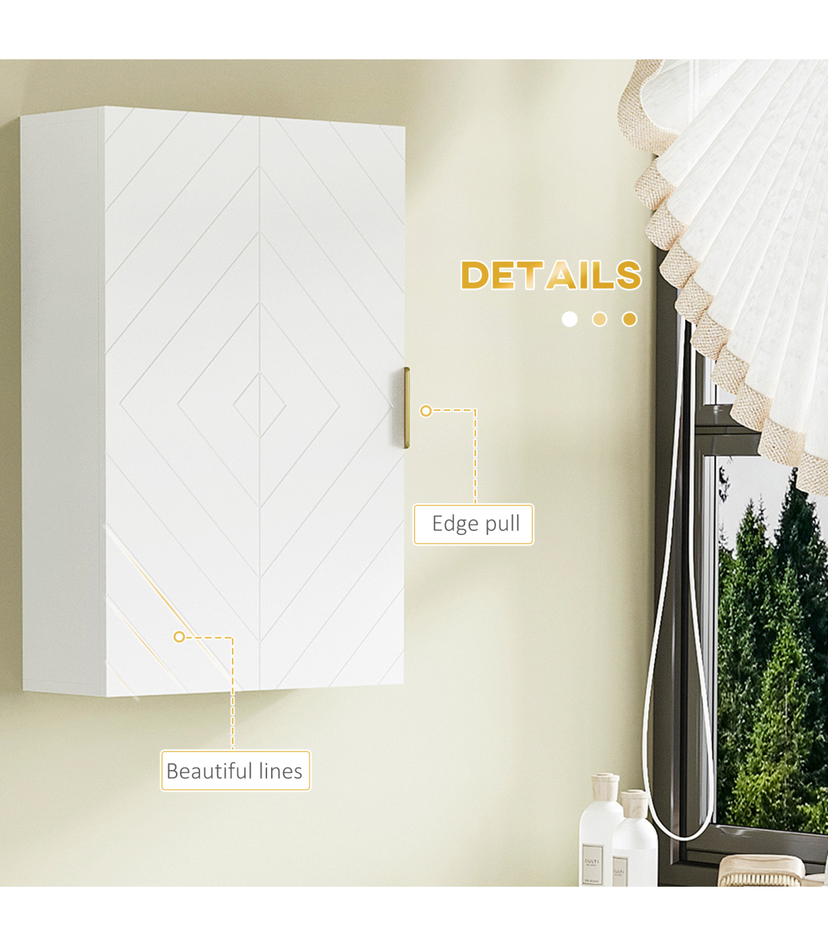 Two inner adjustable shelves: Bathroom wall cabinet offers discreet storage, with sections to organise easily.Modern: A white bathroom storage cabinet for simplicity, with gold-tone accents for a luxe touch.On-wall cabinet design: A great space saver, this bathroom cabinet doesn't take up floor space.Embossed doors: Adds a delicate bit of character to the overall look of this bathroom storage unit.Dimensions: 40W x 15D x 60Hcm. Maximum load 12kg. Assembly required.