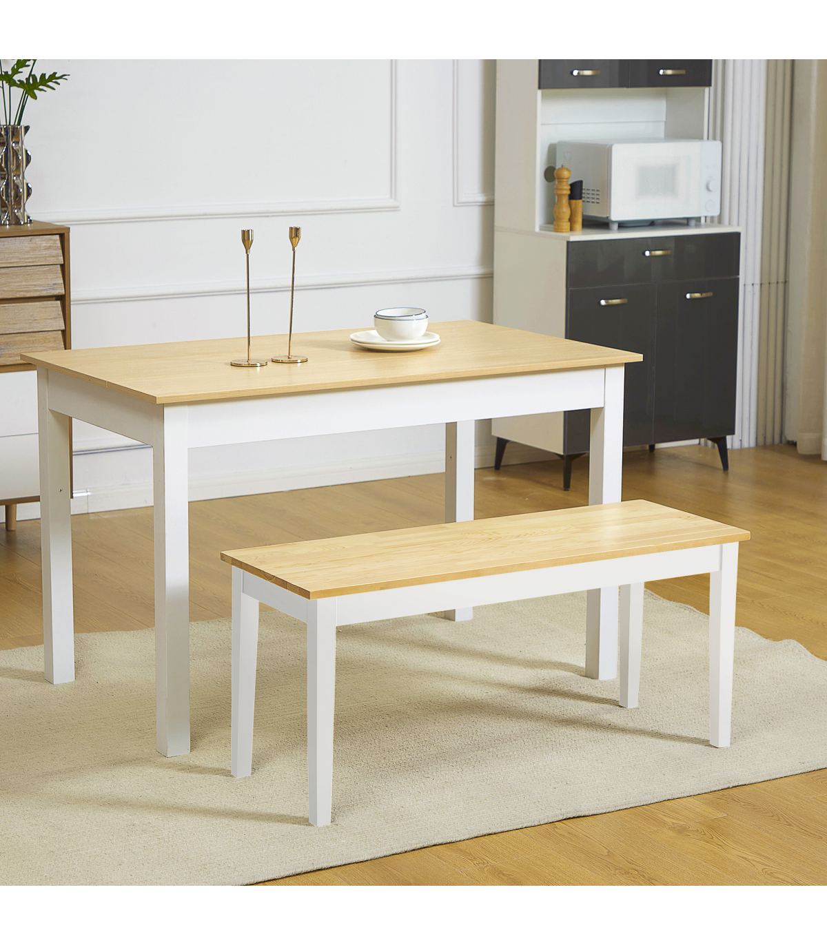 formed into a two-seater size so you can sit with company. A white base, with the wood-effect seat for a simple look which matches with other furniture easily.