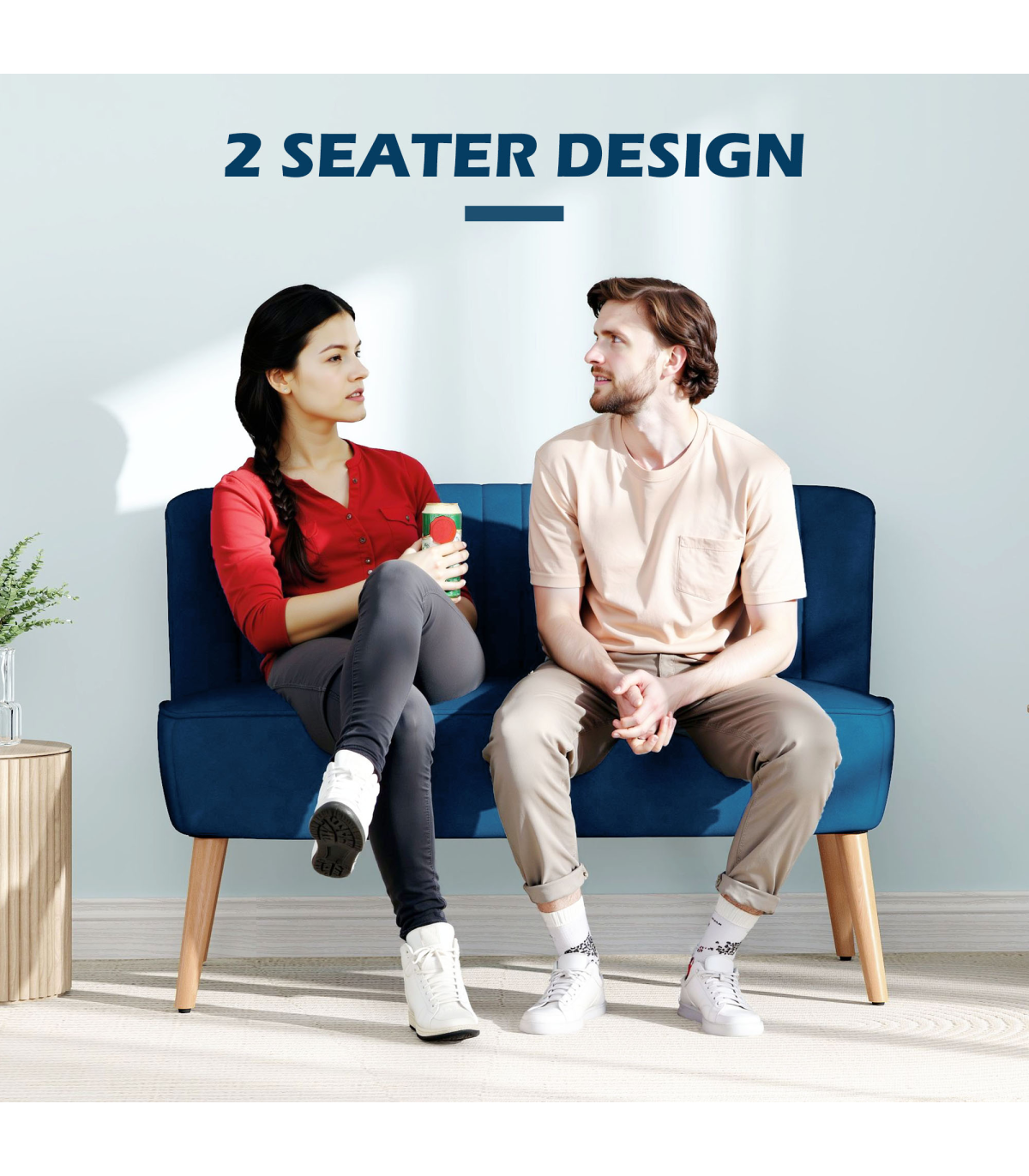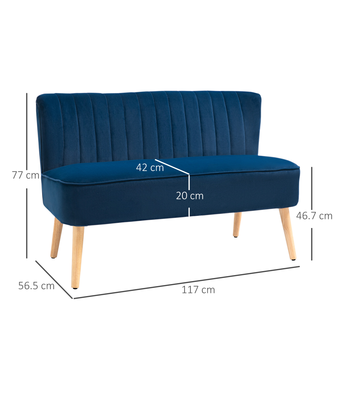 Wooden frame: A sturdy core, with wooden legs for support. Foot pads protect floor from gentle marks.Thick padding: Wrapped in foam cushioning, loveseat is super comfortable to relax into.Extra-wide seat: 117cm wide, the two seater sofa seats up to two people. High back provides support for your body.Smooth style upholstery: Stylish, smooth and easy to clean. The home office sofa still looks fresh after years of use.Dimensions: 77H x 117L x 56.5Wcm. Seat: 46.7H x 117W x 42Dcm. Assembly required.