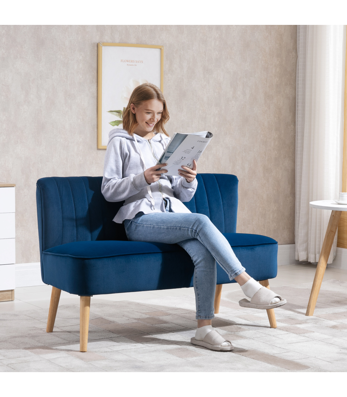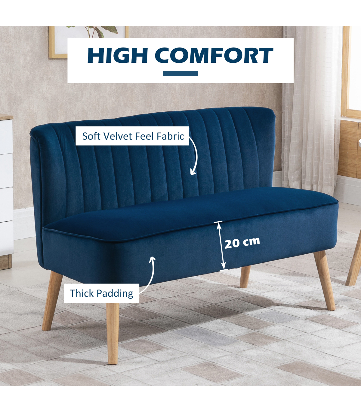 This minimalist two-seater sofa from HOMCOM is the perfect spot for the home and office. The extra-wide seat gives you plenty of room to sit comfortably. Solid wood structure with reinforced wood legs ensures stability and durability. Thick foam for comfort, with soft upholstery for easy cleaning. A stylish addition you'll love bringing into your home and beyond.