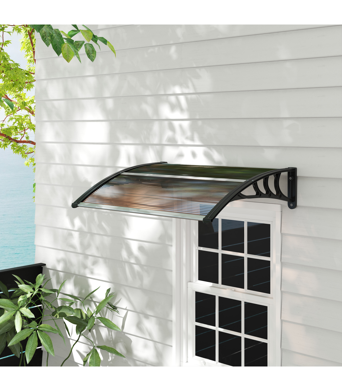 Bring shelter and shade outside your doors and windows with this porch awning from Outsunny. Using a thick and rigid plastic frame, with lightweight and durable aluminum bars connecting the two ends, the porch canopy is fitted with a polycarbonate sheet in the middle. The door canopies cover with UV-resistant coating to prevent sun and UV rays. Simple in design to blend in with all outdoor areas, it can be solo or even paired with multiple canopies to create a broader scope of protection.