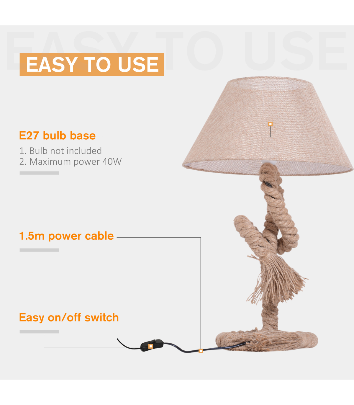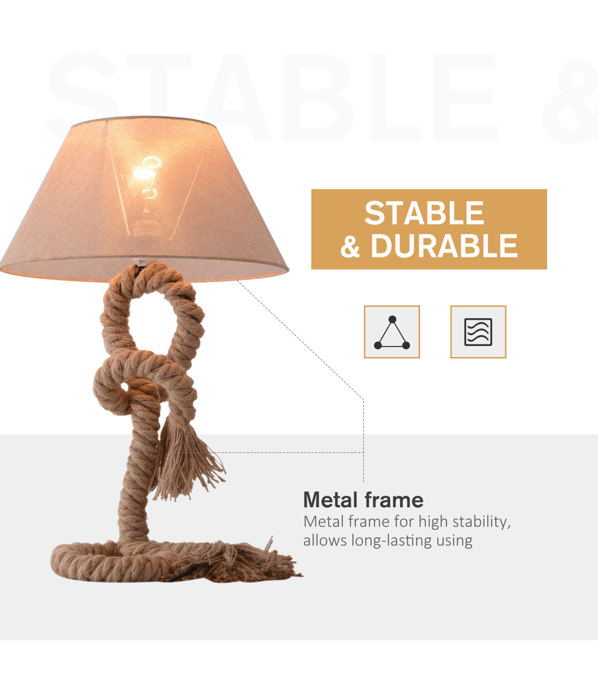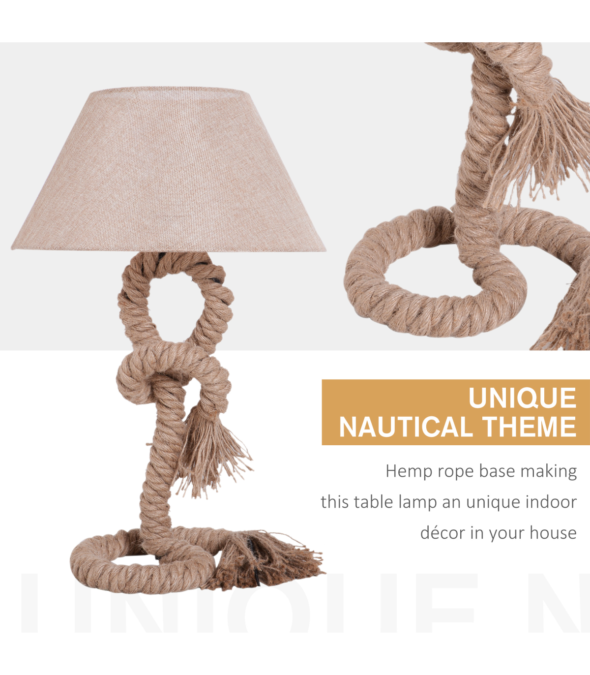 This HOMCOM desk lamp combines Nautical Pier Rope base with linen-style fabric shade. It achieves style, reliability and convenience by combining high-quality material with a modern design. It?s simple, yet classy aesthetic make it a great subtle addition, whatever the setting or style. It's an ideal choice for bedroom, living room, dining Room, college dorm, study, creating pleasant and harmonious atmosphere. Relight the dull corners in your room with this lamp.
