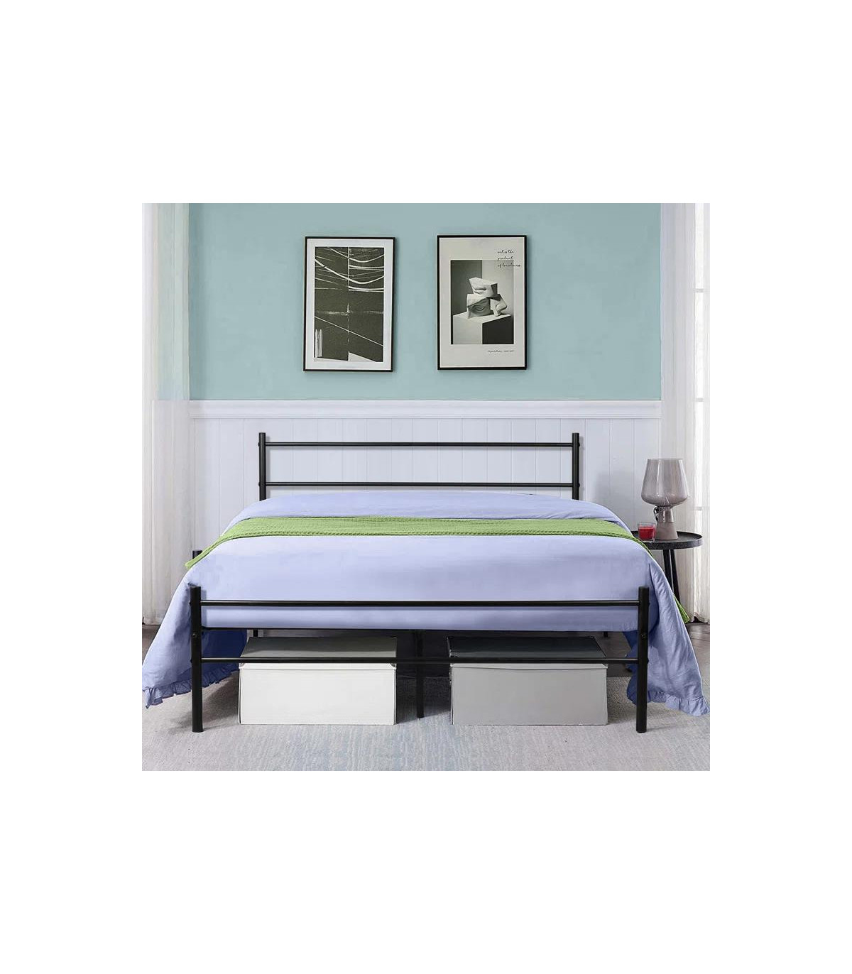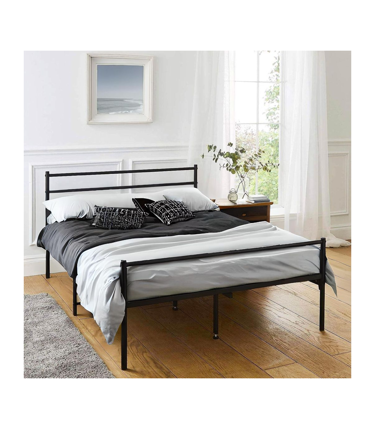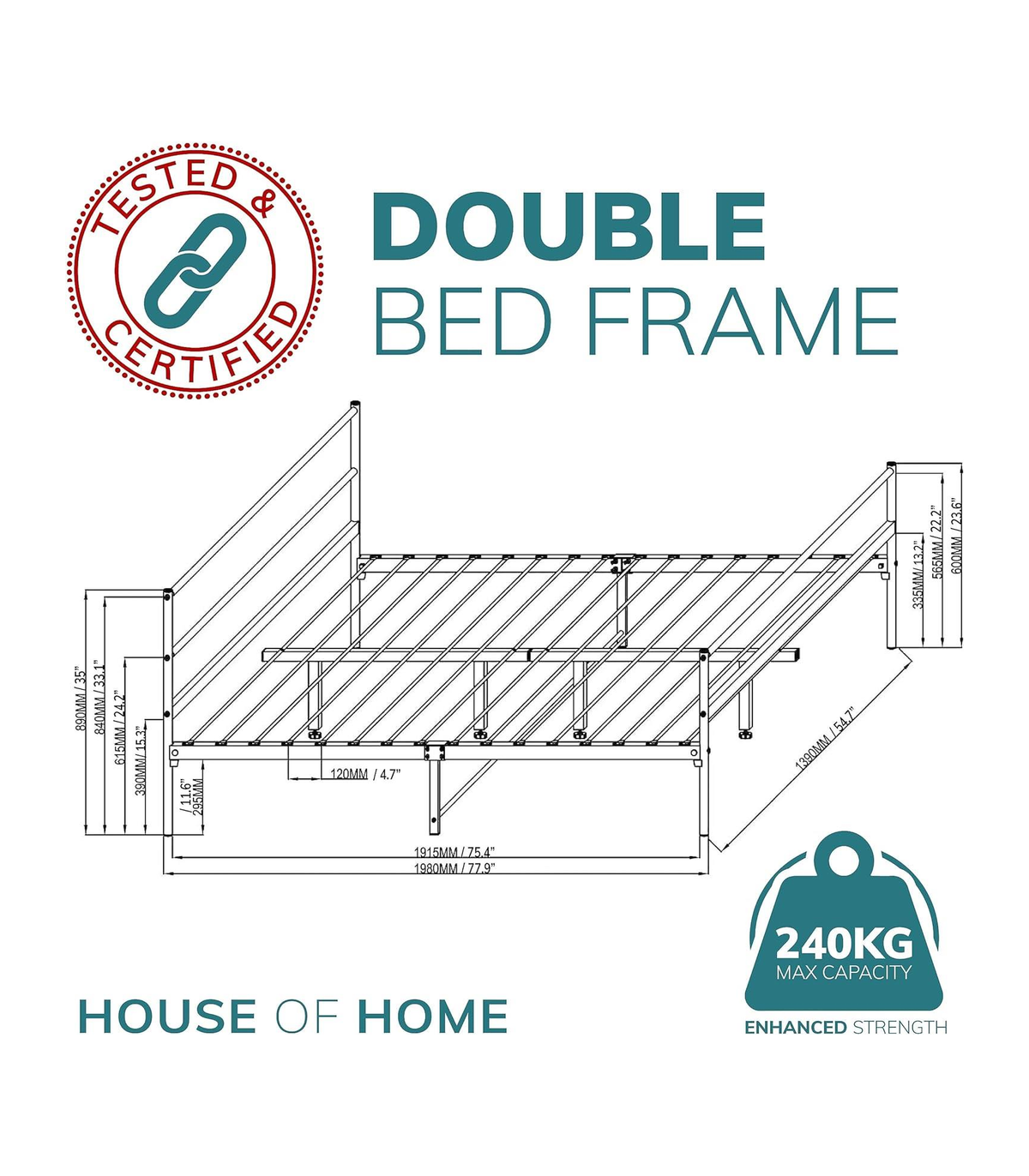Double metal bed frame in black painted finish. Sturdy and quality frame made from heavy gauge steel. Looks great in any bedroom and well worth the money. Buy direct from the manufacturer and make a fantastic saving. Comes flat packed - simple to build. Size erected - 198cm Long x 140cm W x 88cm H (6.5ft L x 4.6ft W) Inside Package Includes All relevant parts supplied. Instruction Sheet. Warning - Keep all small parts away from children