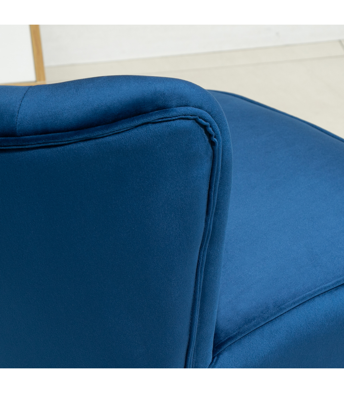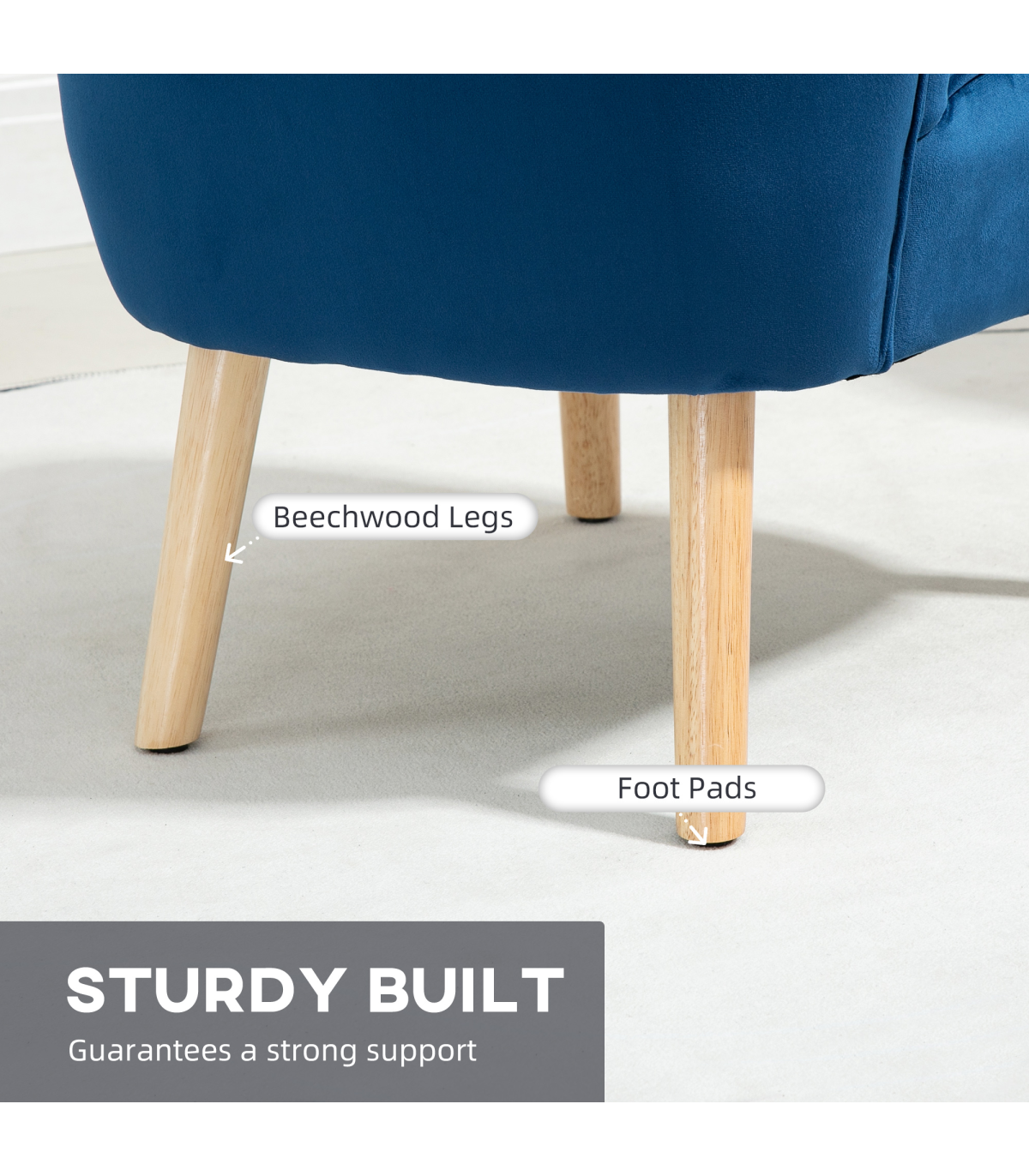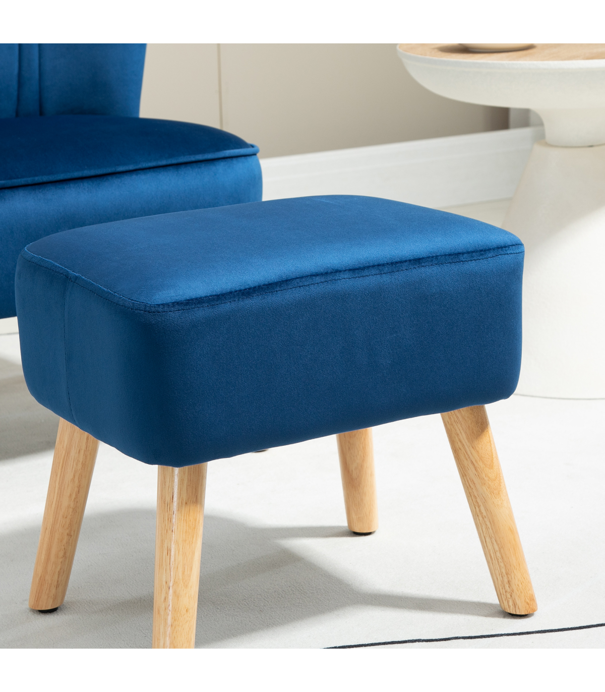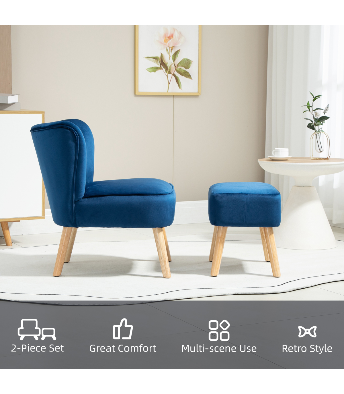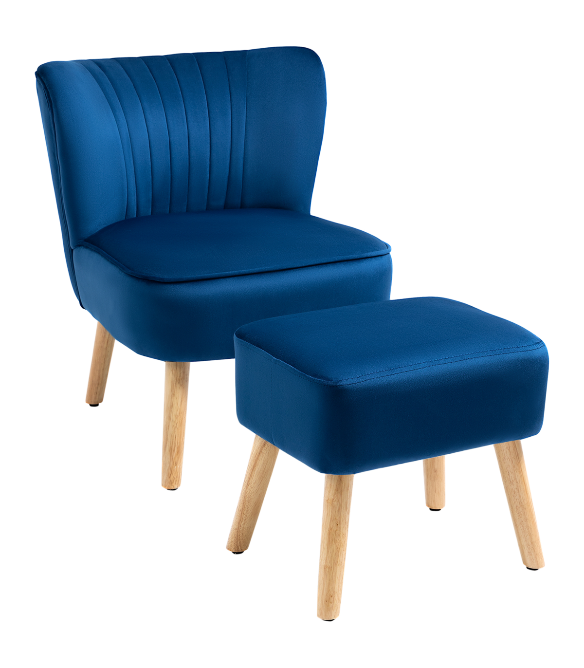 Velvet-Feel Accent Chair w/ Ottoman Tub Seat Padding Wood Legs Dark Blue