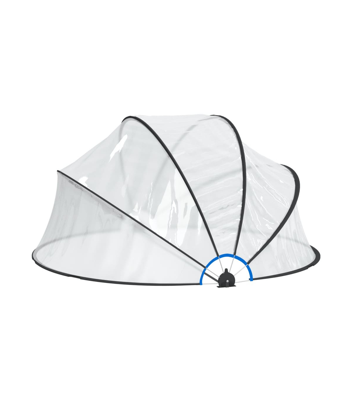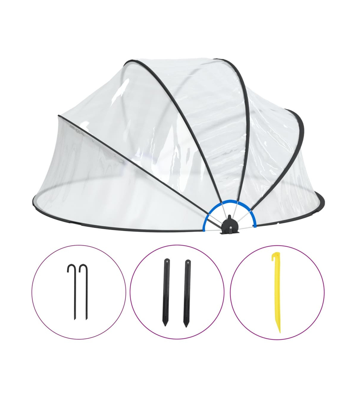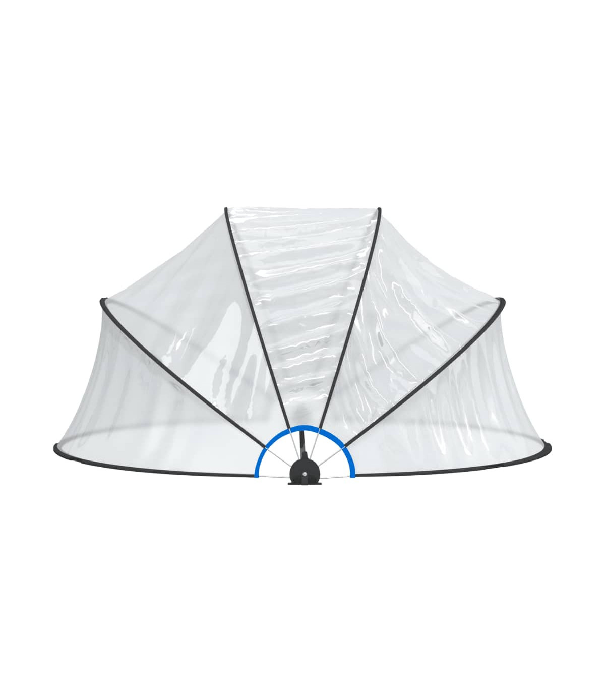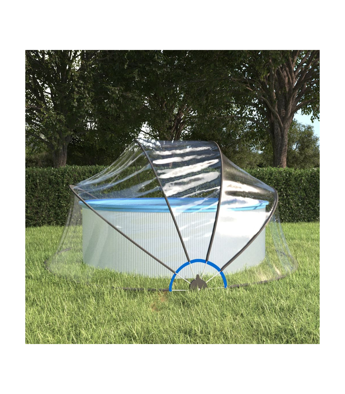 Enjoy the shelter offered by this pool dome while swimming and playing! This pool cover, made of UPF 30 PVC with a fibreglass construction, provides excellent protection against the sun and rain. It prevents external pollutions, such as leaves, insects and dust entering the pool. When necessary, it ensures quicker heating of the water and little heat loss during the night. The canopy is easy to open due to a unique hinge mechanism. With the transparent cover, you will not miss anything that happens outside the bath. To firmly anchor the dome to the ground, the delivery comes with ground spikes and hook ground nails. No need to worry that the pool dome will fly away with the wind. This pool tent is suitable for built-in swimming pools with a max diameter of 400 cm and for above ground swimming pools with max dimensions of 360 x 90 cm (Diameter x H).