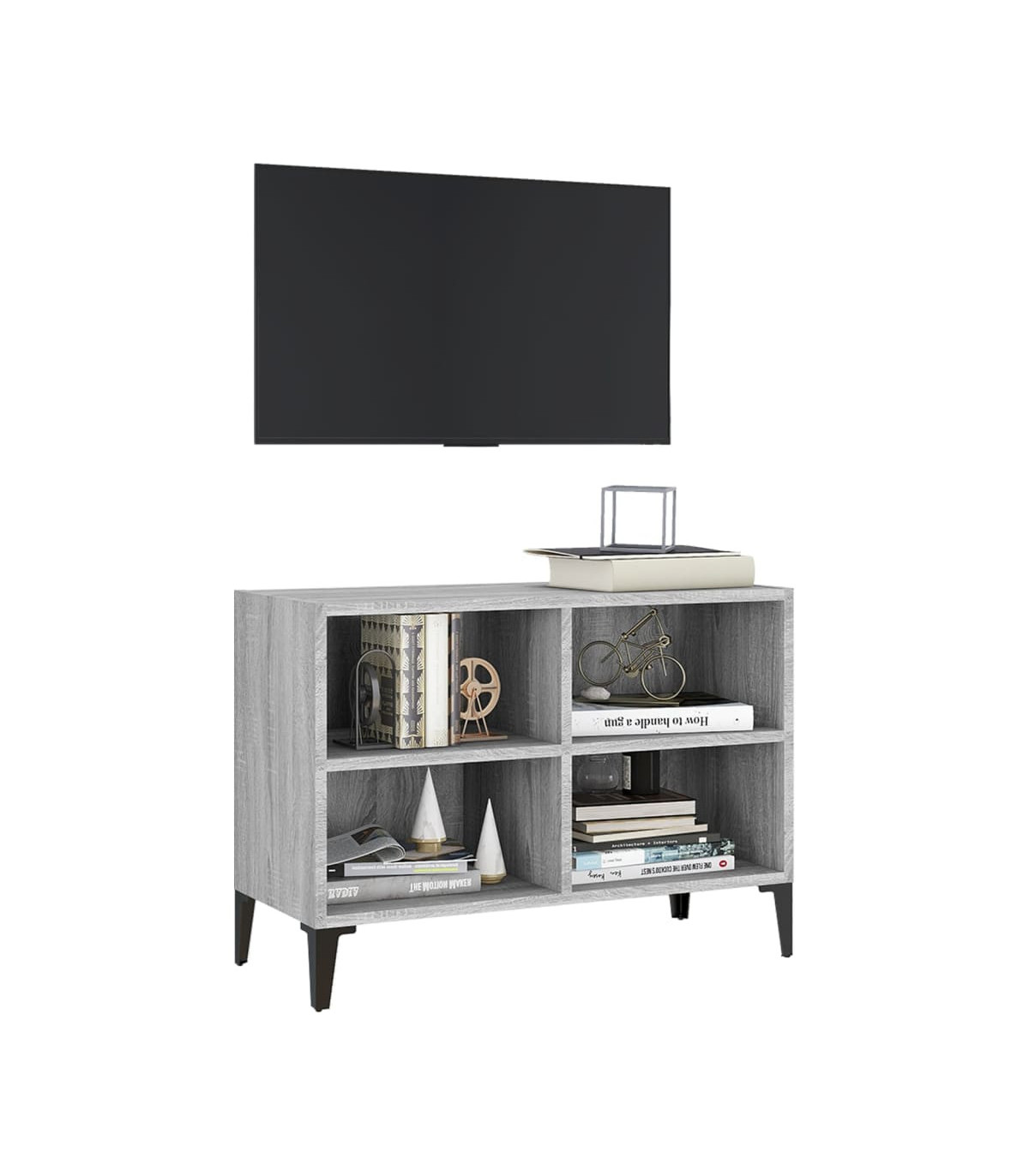 TV Cabinet with Metal Legs Grey Sonoma 69.5x30x50 cm