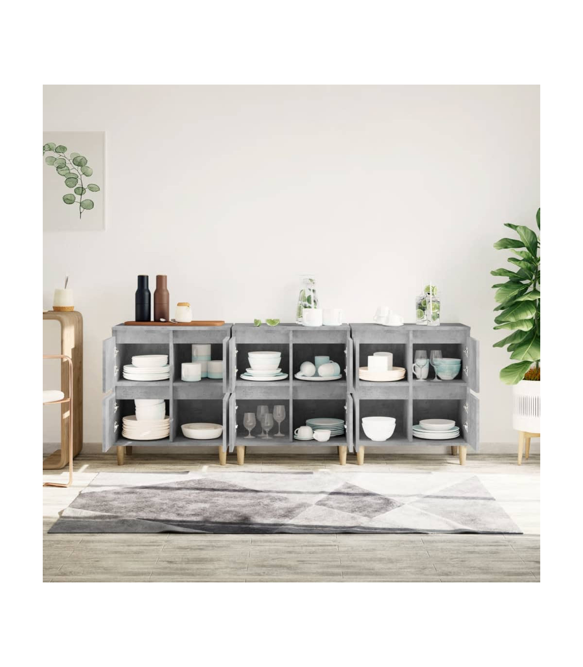 These classic sideboards, featuring a timeless look, are meant to be an excellent addition to your home. Durable material: The engineered wood is of exceptional quality with smooth surface and also features strength, stability and resistance to moisture. Made of engineered wood, the cabinet is easy to clean with a damp cloth.Ample storage space: Equipped with 4 compartments, the sideboard cabinet offers ample storage space for keeping your various daily essentials well organised and within easy reach.Displaying function: The top of the cupboard is great for displaying your decorative items, photo albums or small plants. Warning:To prevent it being overturned, this product must be used with the provided wall attachment device.
