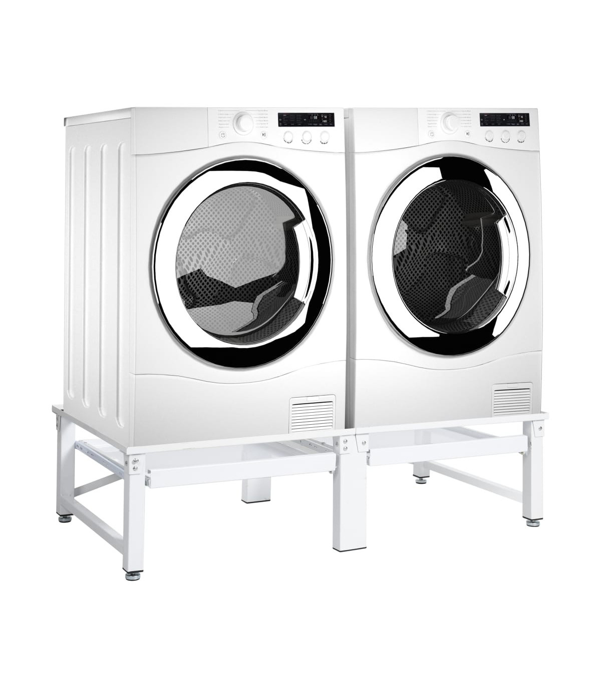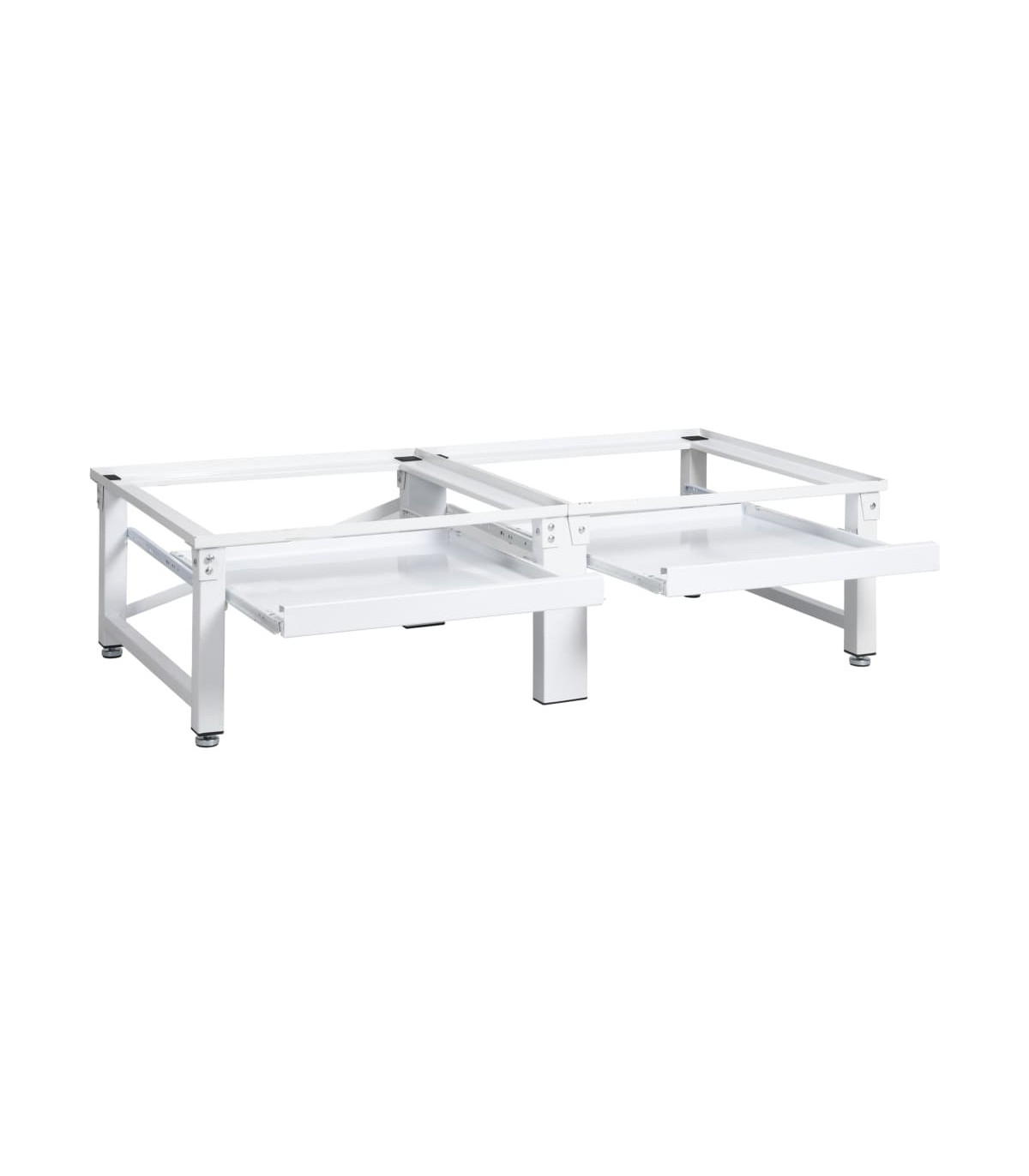 Our dual pedestal can be used to keep your washing and drying machine off the floor and raise it to a suitable working height, so you don’t need to bend too much to load or remove your laundry. The pedestal is made of strong steel, making it very sturdy and each can hold a weight of washing machine or drying machine up to 100 kg. Thanks to non-slip pads, the washing and drying machine stand stably. As the feet are height adjustable, the pedestal can be adjusted to compensate for uneven floors. The pedestal also has two convenient pull-out shelves for extra storage space.