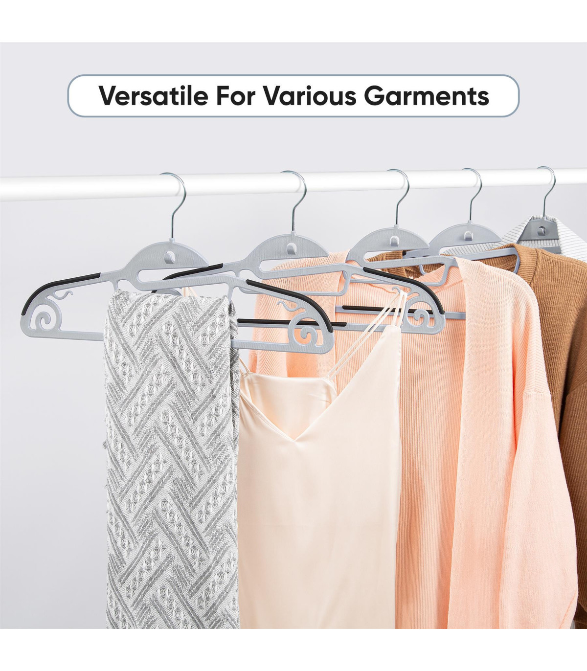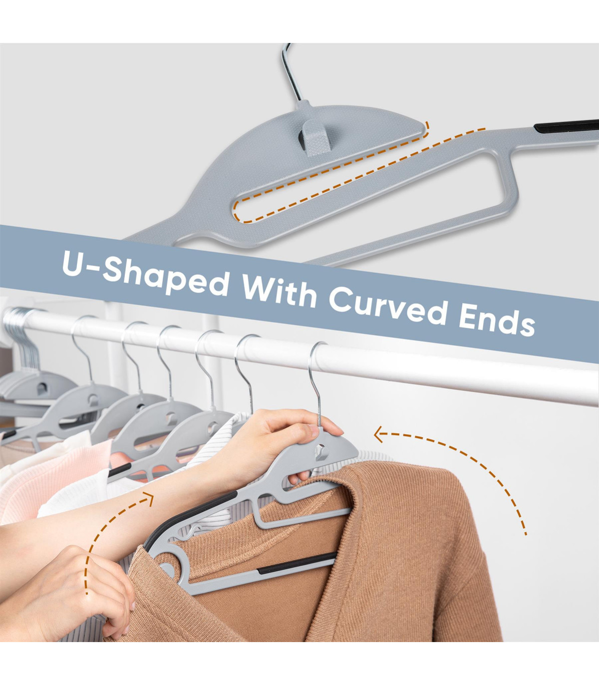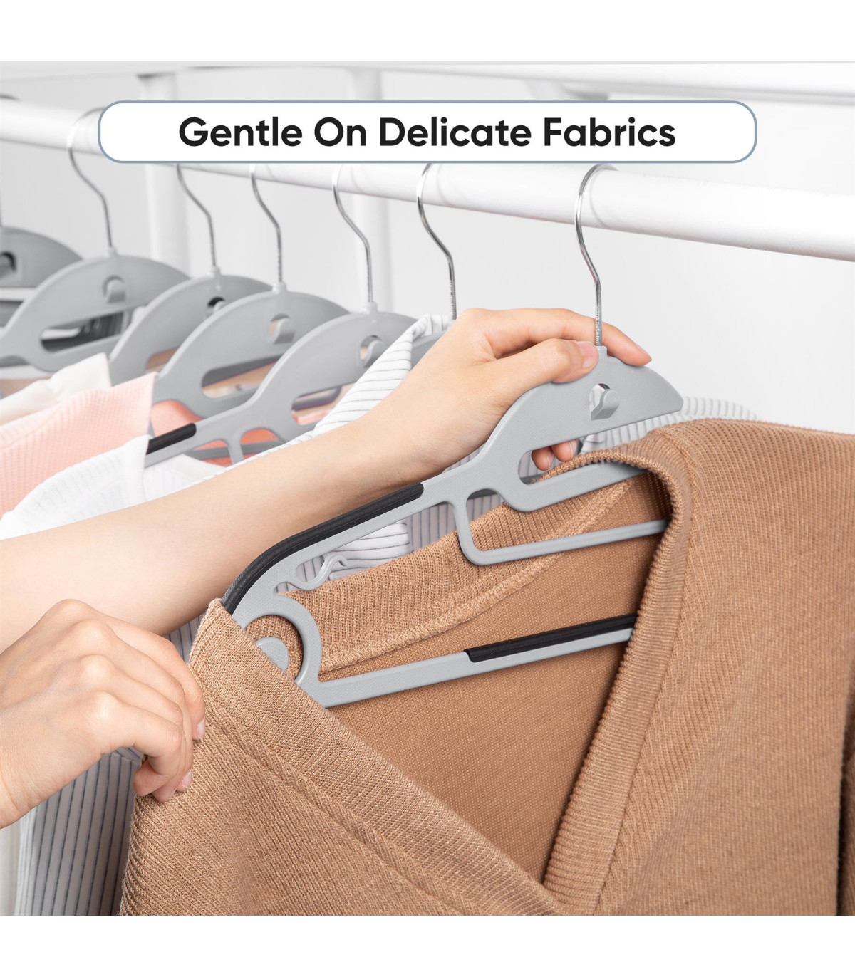 The slim line design of these non-slip hangers, saves a large amount of space compared to most standard hangers, meaning you'll have much more room in your wardrobes. The sturdy construction of the nonslip hangers means they'll last practically forever, resisting the bumps, drops and bangs of daily use.