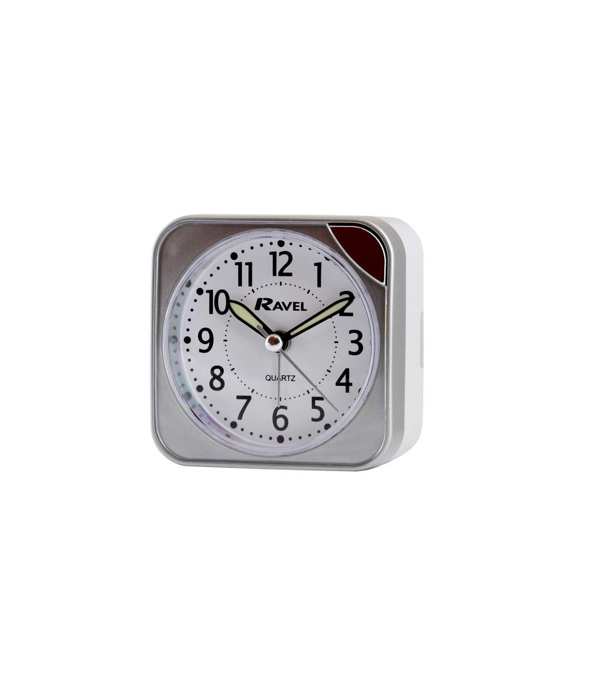 Ravel Small Square Quartz Travel Alarm Clock - Silver RC001.2