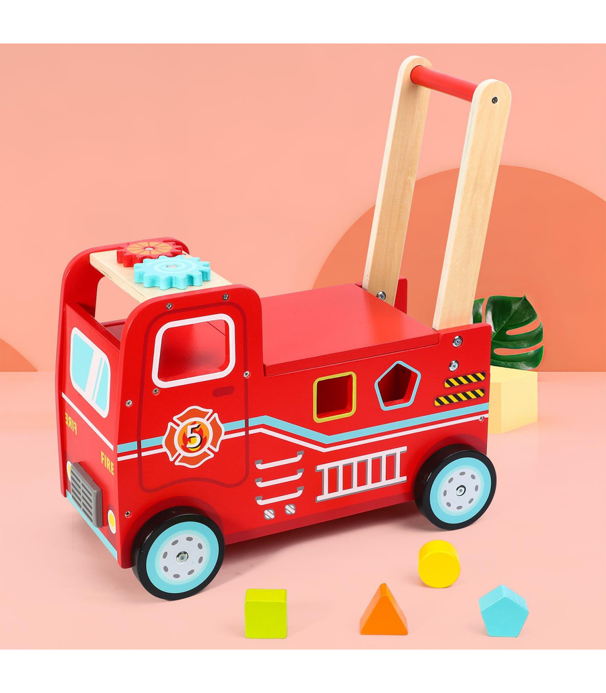 FIRE TRUCK DESIGN – Spark your kid’s imaginative and active play with this fairly detailed fire engine truck ride and push toy. This baby walker's representation of a fire truck, the overall red tone, and the realistic paint will definitely attract your b