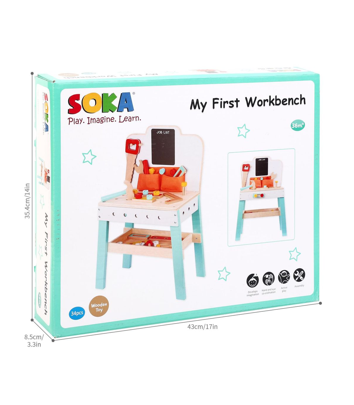 GET FIXING TODAY!: This toy is for little builders who want to use DIY tools just like daddy. Each item is made from wood in chunky sizes and bright colours, especially for small hands. SOKA My First Workbench will give children hours of pretend play fixi