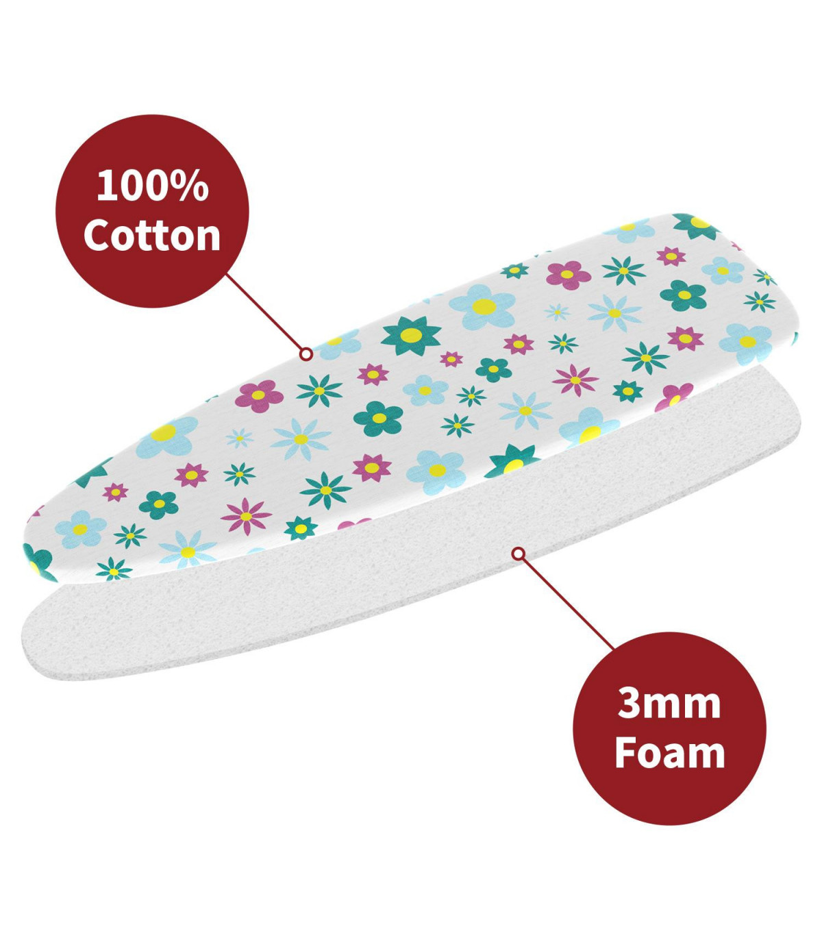 NON-SLIP COTTON: 100% cotton cover with 3mm thick foam underlay for a super smooth ironing surface. The integrated thick underlay means no separate felt underlay lining is required.