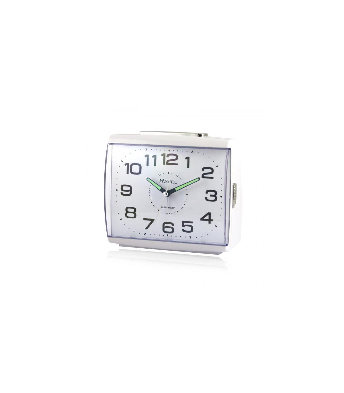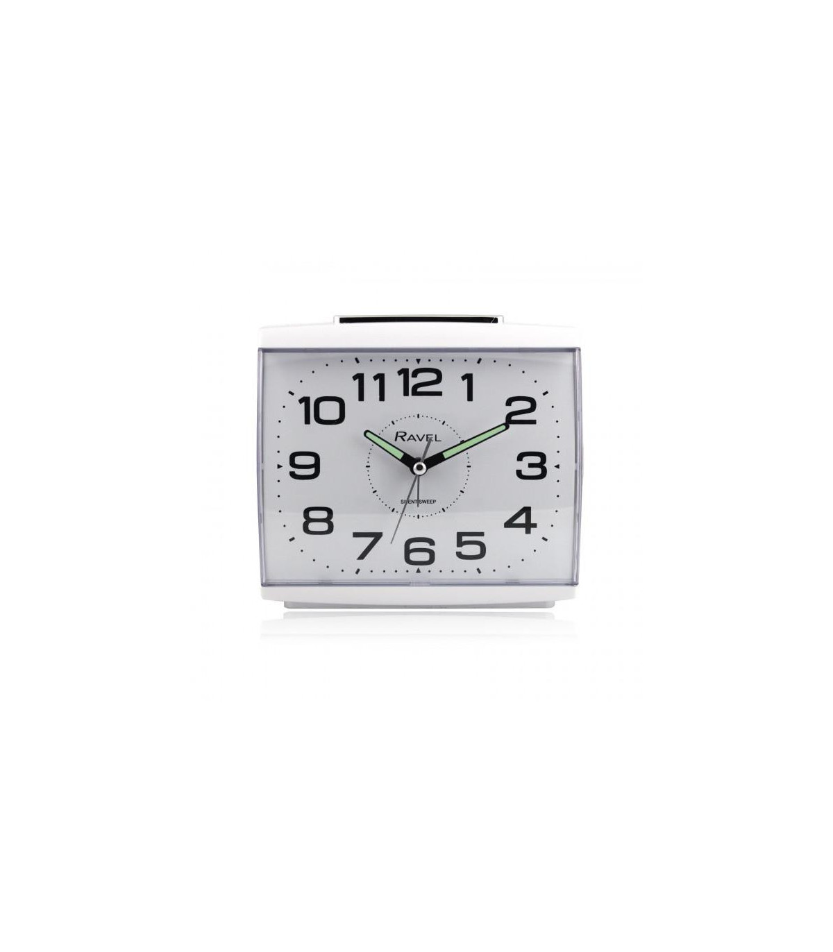 Ravel's large, bold and contemporary square bedside / mantel alarm clock for the home. Featuring a clear white dial with super-bold black numbers that offers the complete easy-read option. The high-visibility, luminous-tipped hands and hour markers glow in the darkest of rooms. Featuring a beep alarm with crescendo function. Available in black or white. With snooze, silent sweep and light functions. Ideal for bedside table's, mantel pieces, desk's and office spaces.