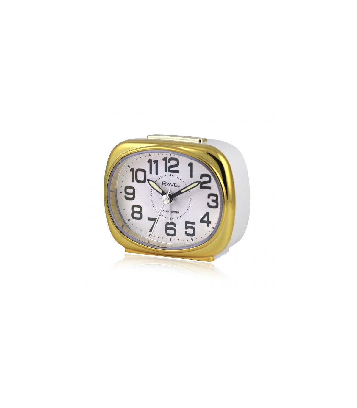 Ravel Small sized pillow shaped Bedside Quartz Alarm Clock - White / Gold RC040.42