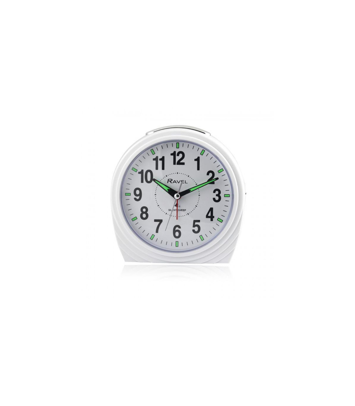 Ravel's large, bold and ultra functional bedside / mantel bell alarm clock for the home. Featuring a clear white dial with super-bold black numbers that offers the complete easy-read option. The high-visibility, luminous-tipped hands and hour markers glow in the darkest of rooms. Available in white or black with a bell alarm. With silent sweep, snooze and light functions. Ideal for bedside table's, mantel pieces, desk's and office spaces.