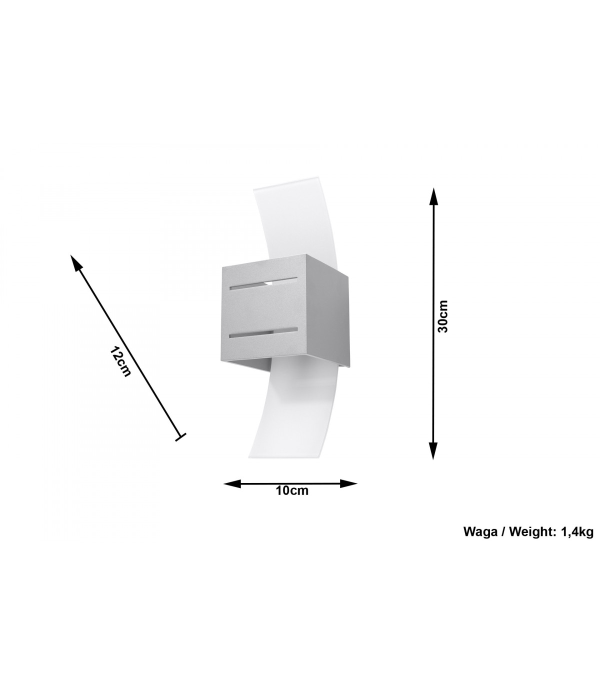Light bulb: G9, 1x40W, 50Hz, 220V, IP20 Light bulb not included. Dimensions: 10 x 30 x 12 cm Material: aluminium, glass Color: grey