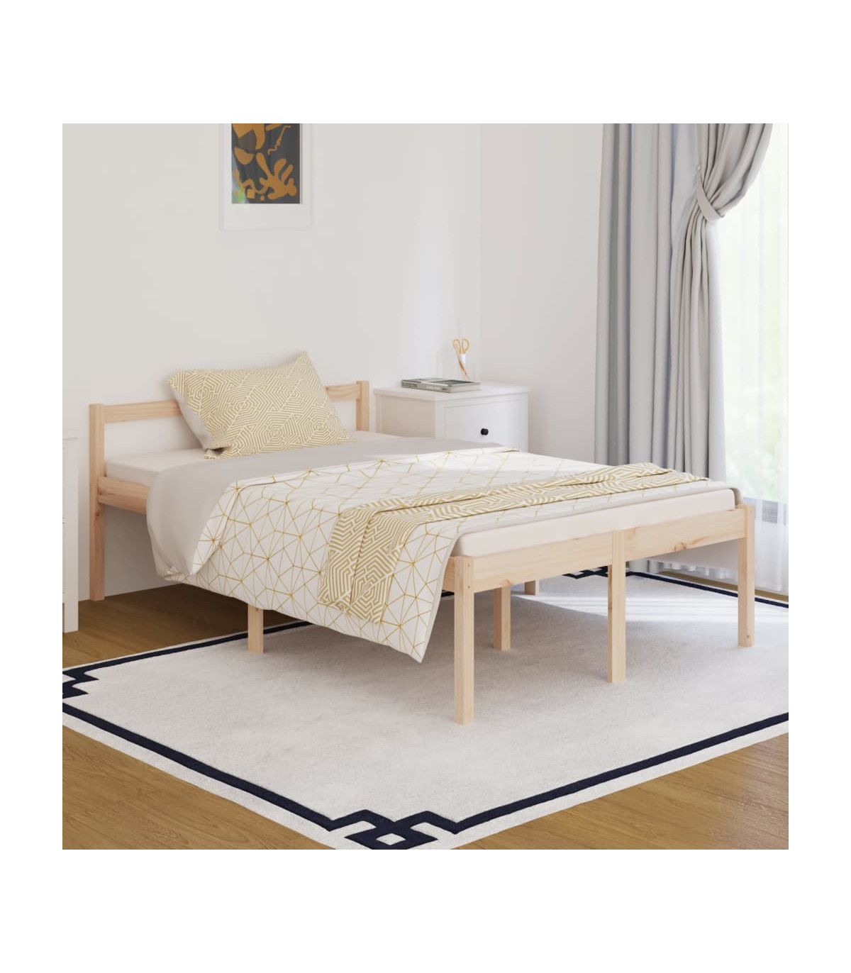 Take the modern route to your bedroom with this wooden senior bed! It makes a practical and decorative addition to your interior. Solid pine wood: Solid pine wood is a beautiful natural material. Treat the surface with oil, wax, lacquer, or a glazing finish for a stronger surface and easy cleaning. Pine wood has a straight grain, and the knots give the material its signature, rustic look.Suitable for the elderly: The bed frame is easy for seniors to get in and out of due to its 45 cm seat height.Extra storage space: The high bed has extra space underneath to store boxes for organising your clothes, toys, or quilts.Sturdy slats: The plywood slats provide good weight distribution, ensuring that the mattress stays in place with every twist and turn of your body during sleep.Comfortable headboard: The classic headboard let you rest comfortably while reading or watching a movie. Note:The delivery includes a bed frame only. The mattress is not included. You can check our shop for the matching mattresses.This bed frame is suitable for a mattress measuring 75 x 190 cm (2FT6 Small Single).