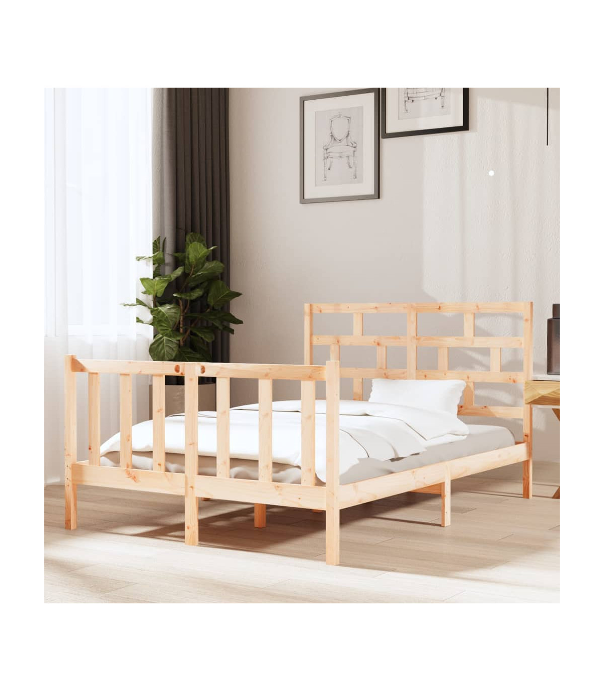 vidaXL Bed Frame Solid Wood Pine 135x190 cm Double