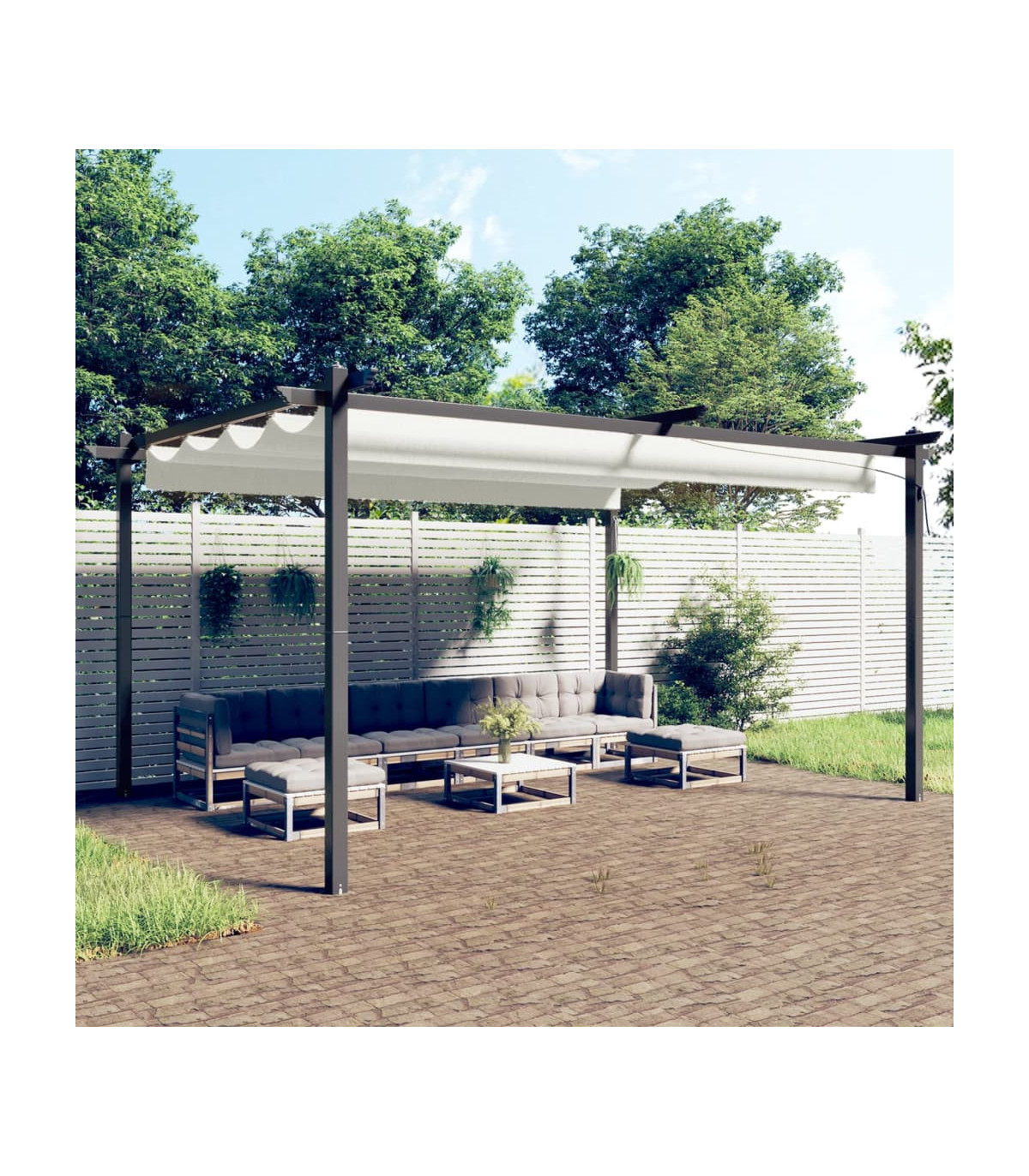 Add shade and privacy to make your outdoor living space more enjoyable with this garden gazebo! This outdoor gazebo is manufactured with a powder-coated steel frame, making it sturdy and stable. This gazebo is equipped with a retractable PA-coated roof, which is UV- and water resistance. You can easily rotate and adjust the roof to the ideal position by simply shaking the hand pole. Open it when you want to enjoy the sun and close for shade or shelter. This gazebo is a perfect choice for your outdoor activities. NOTE: This product should NEVER be used under bad weather, such as strong wind, heavy rain, snow, storm, etc.